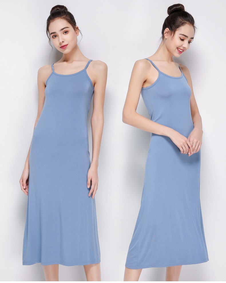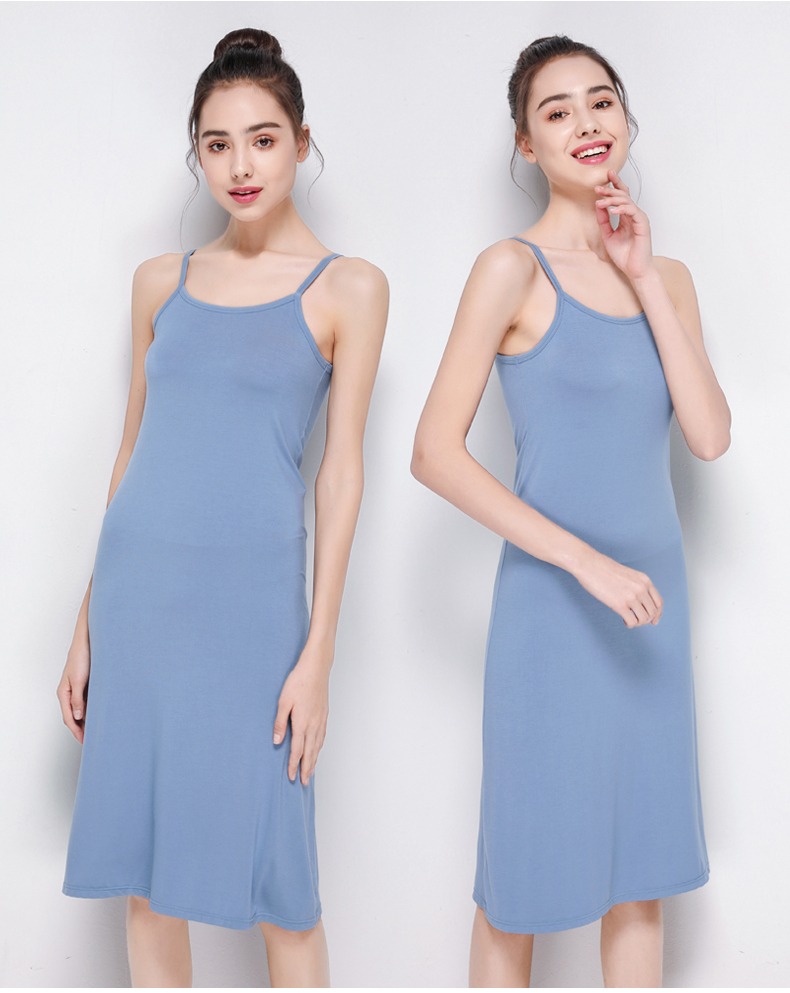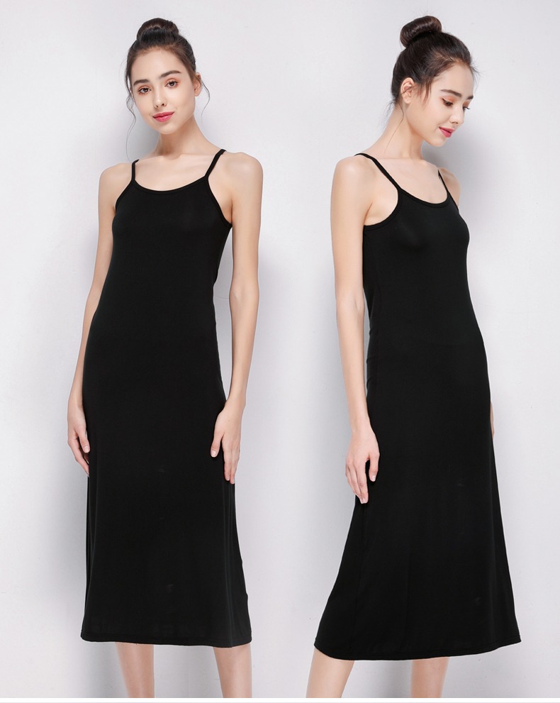 冰絲吊帶連衣裙女士夏季穿搭防走光襯裙內搭大碼中長款打底背心裙