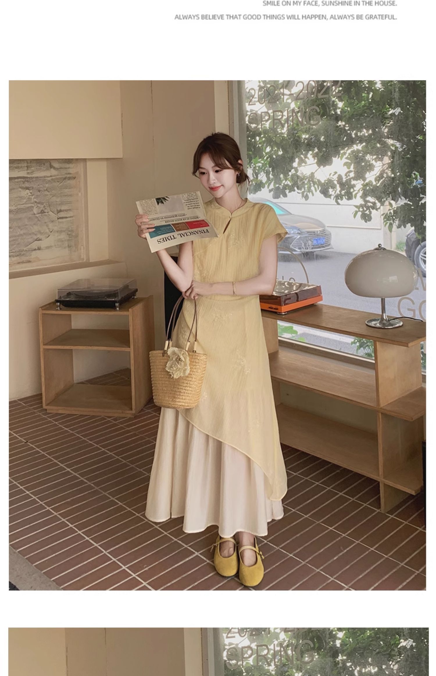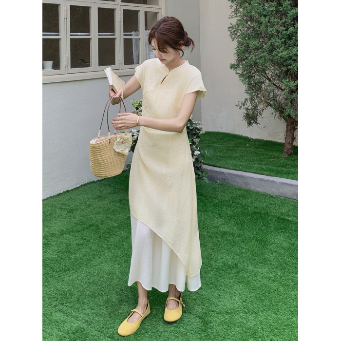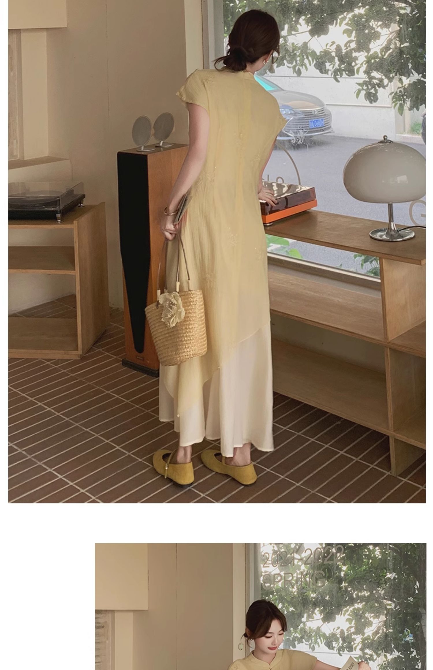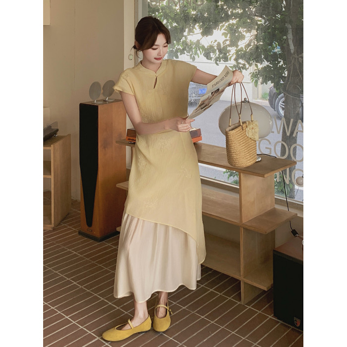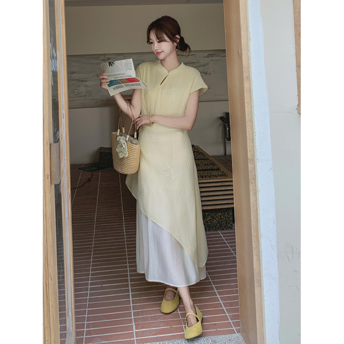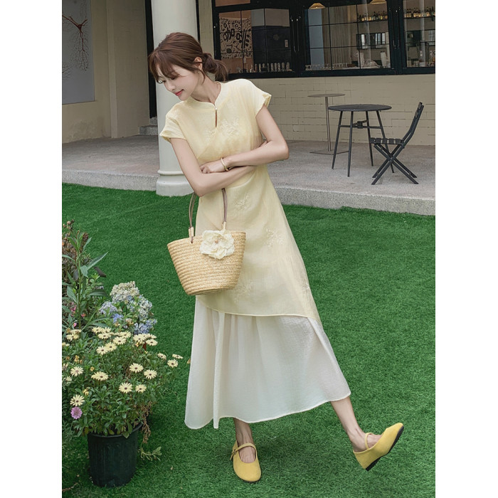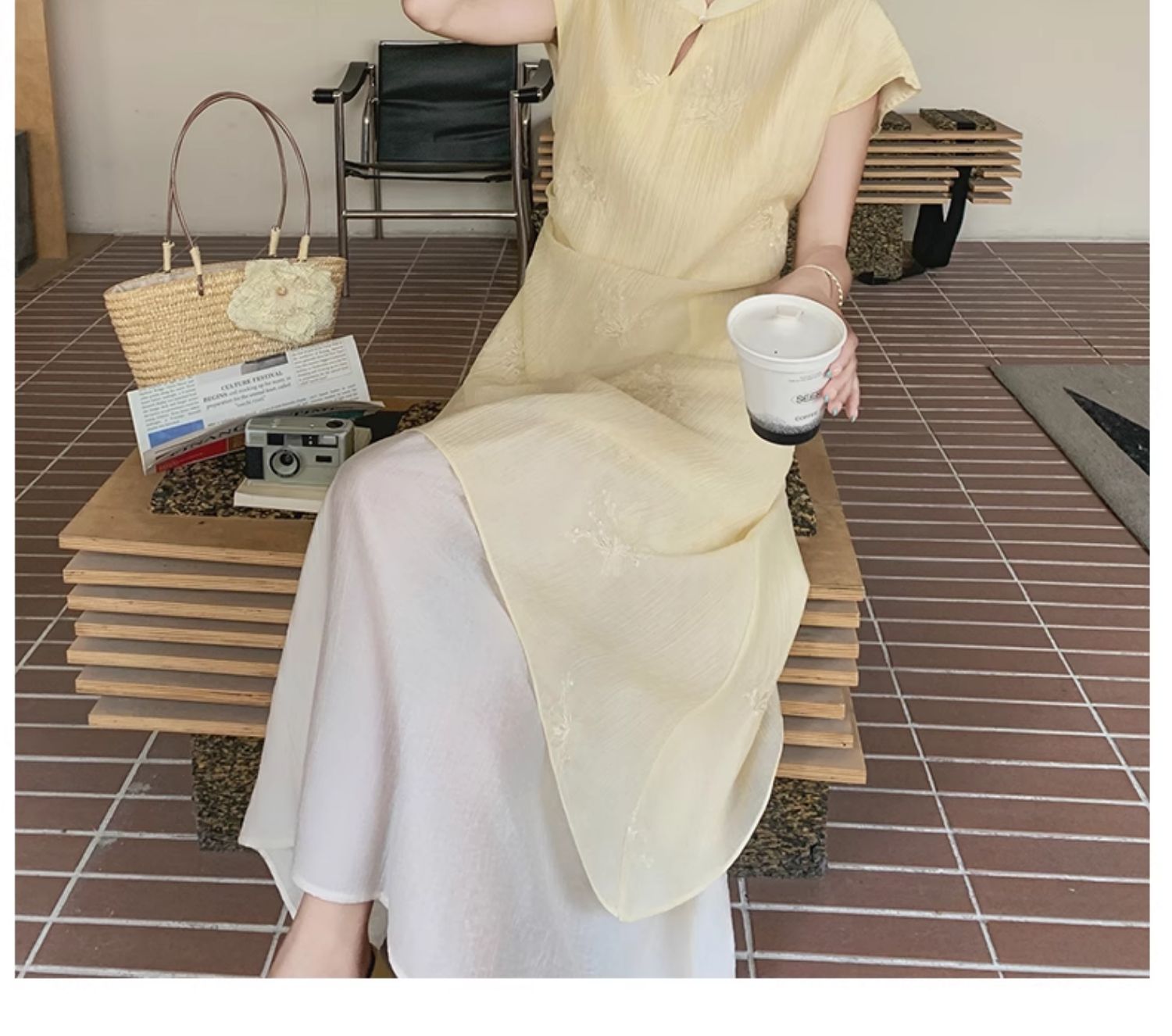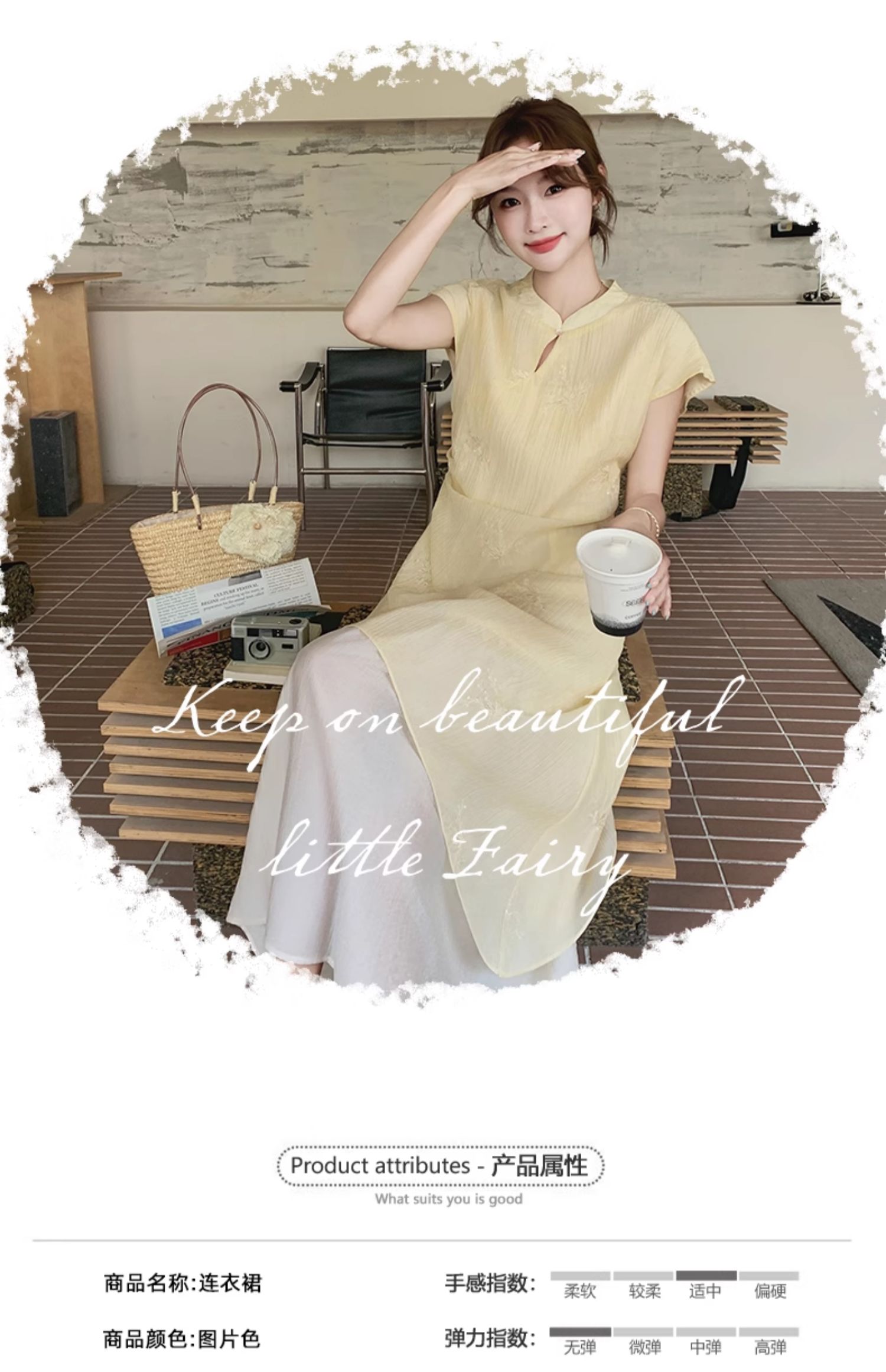 新中式復古國風改良旗袍連衣裙女2025夏季氣質優雅清冷感刺綉長裙