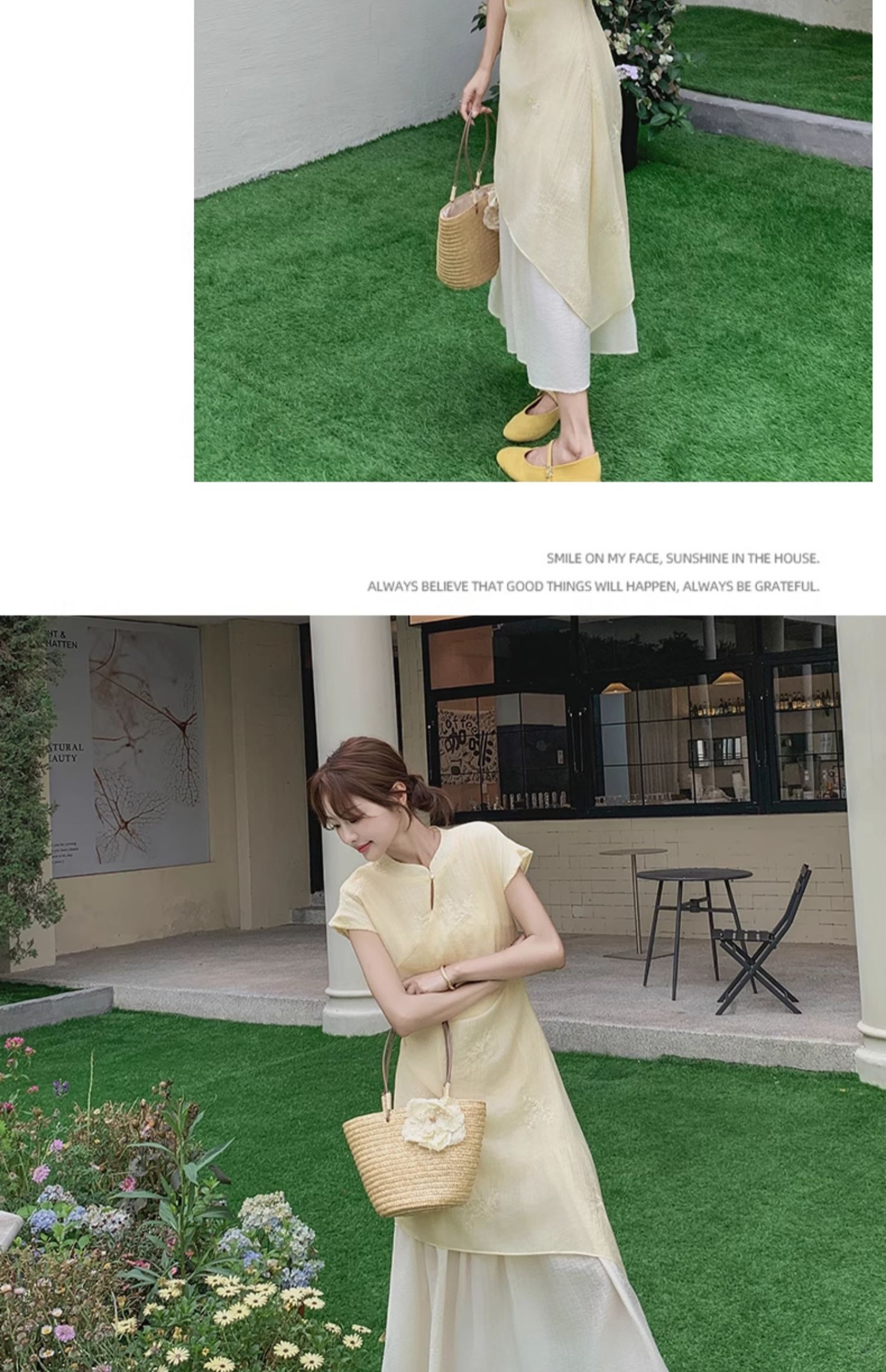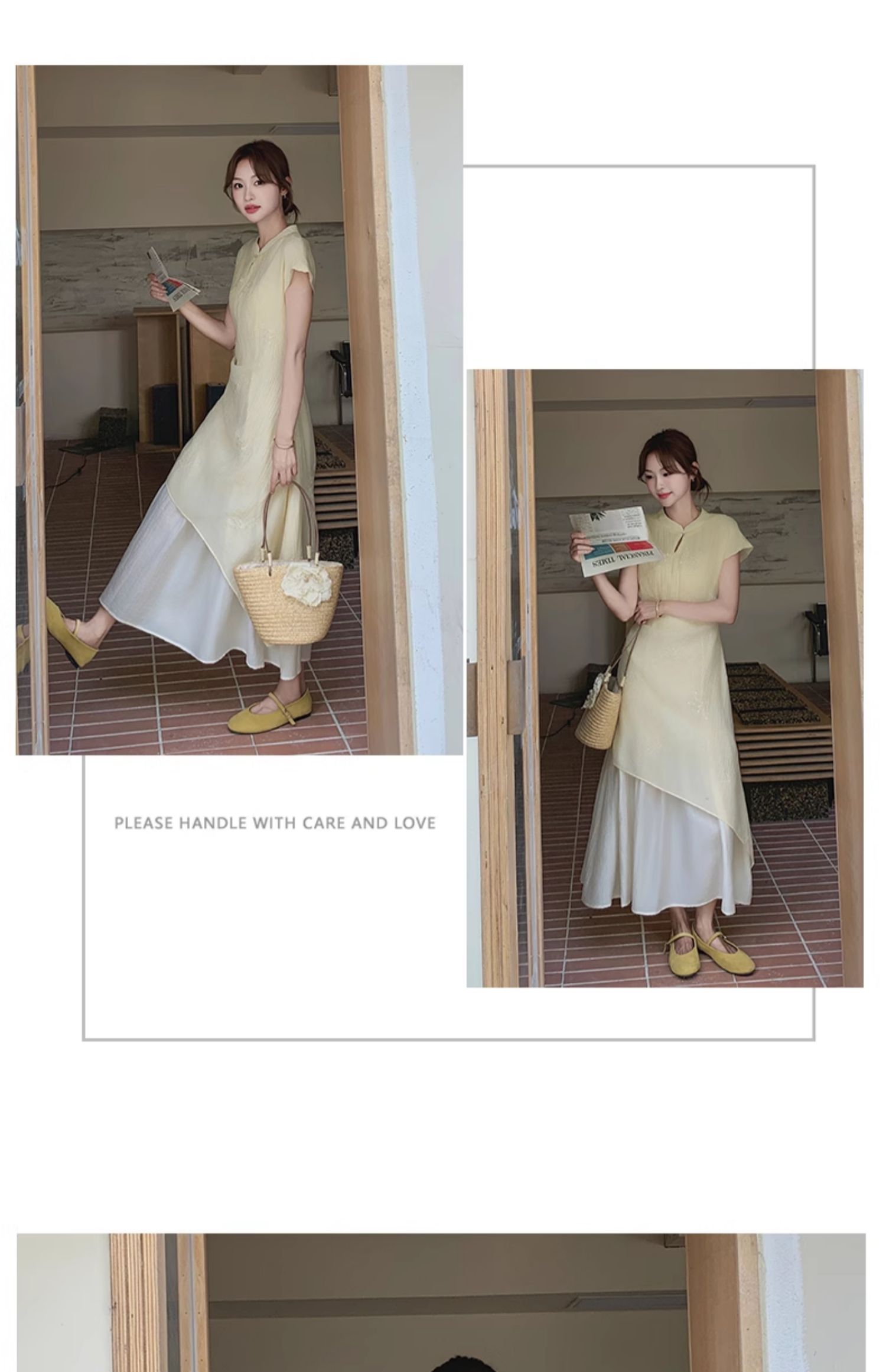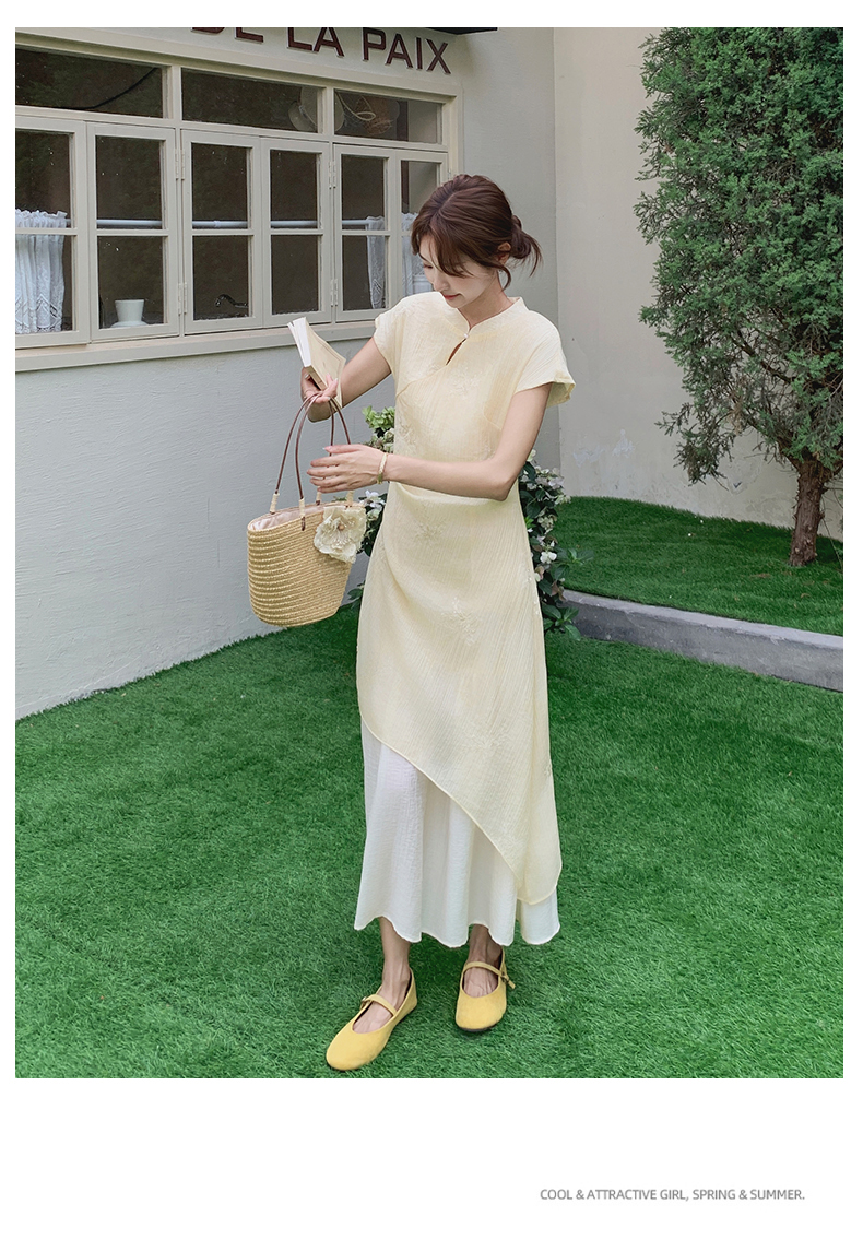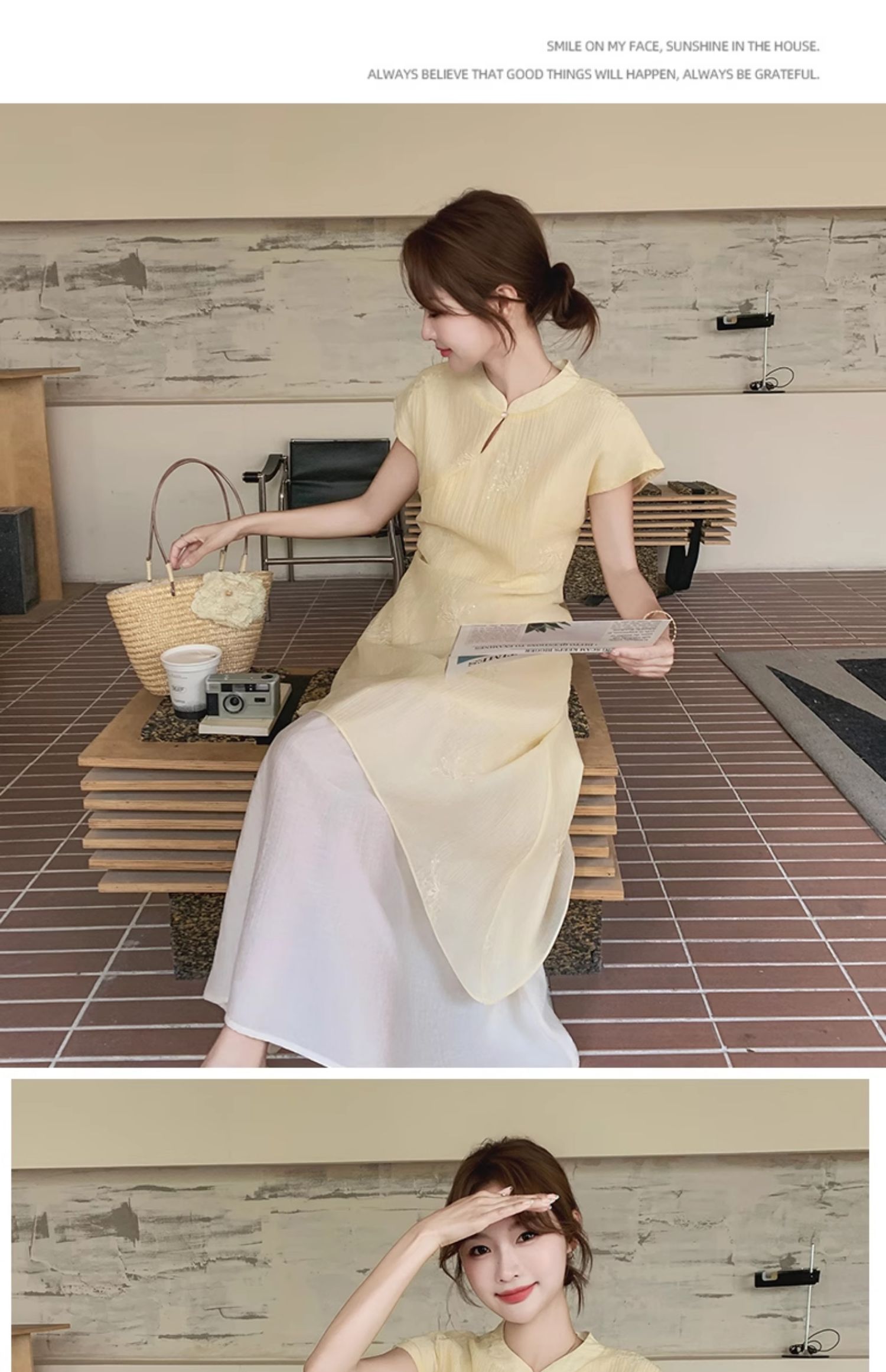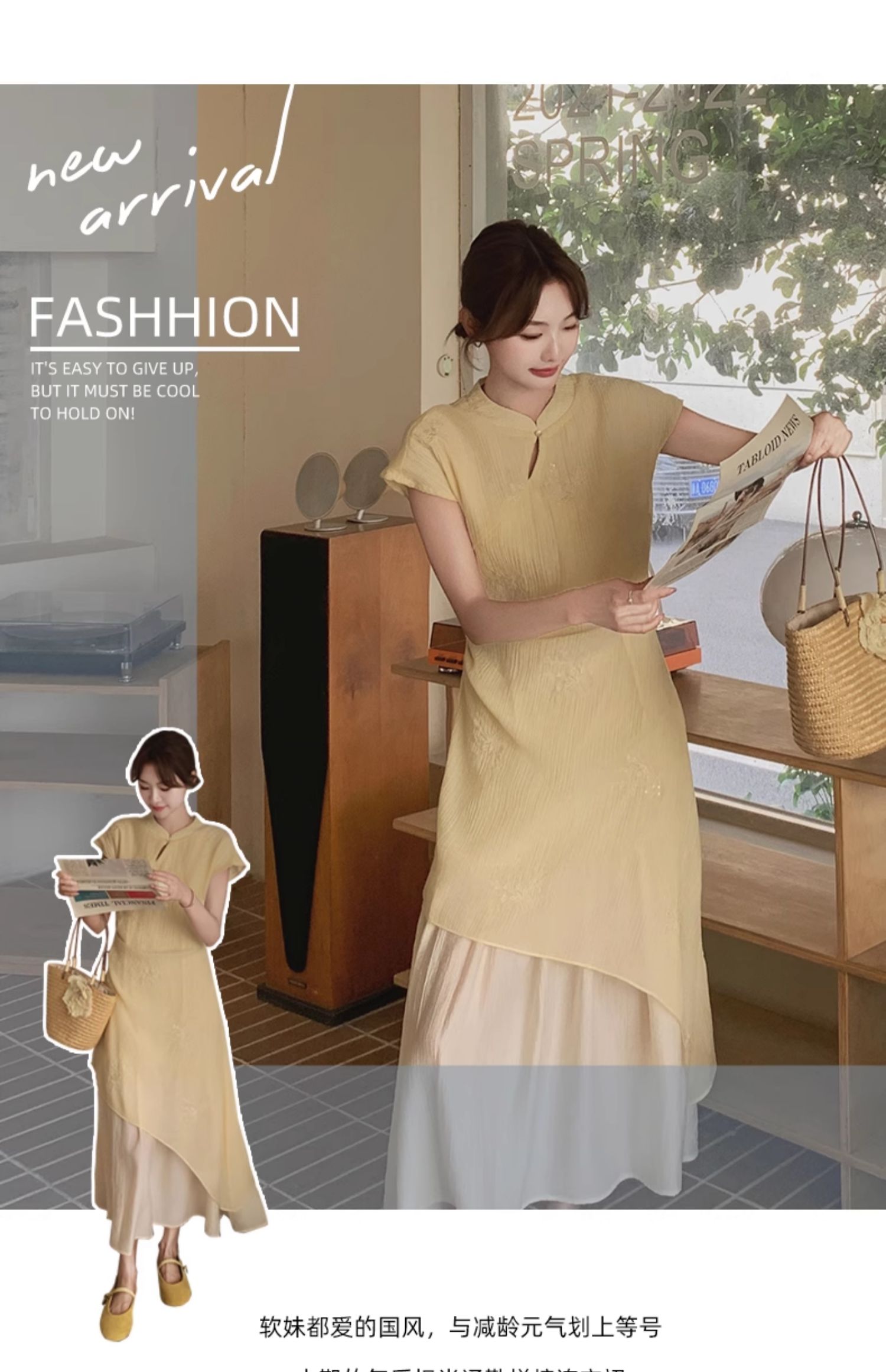 新中式復古國風改良旗袍連衣裙女2025夏季氣質優雅清冷感刺綉長裙