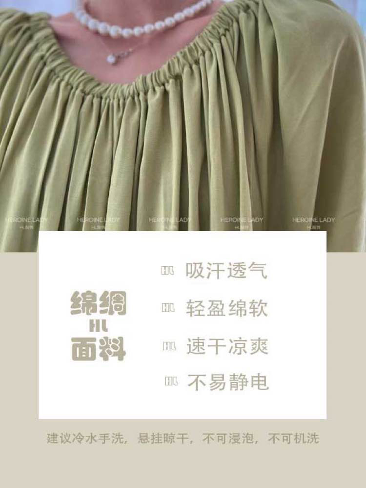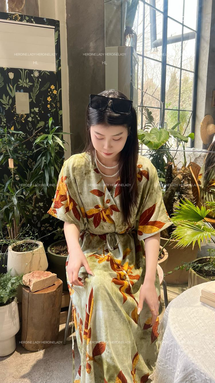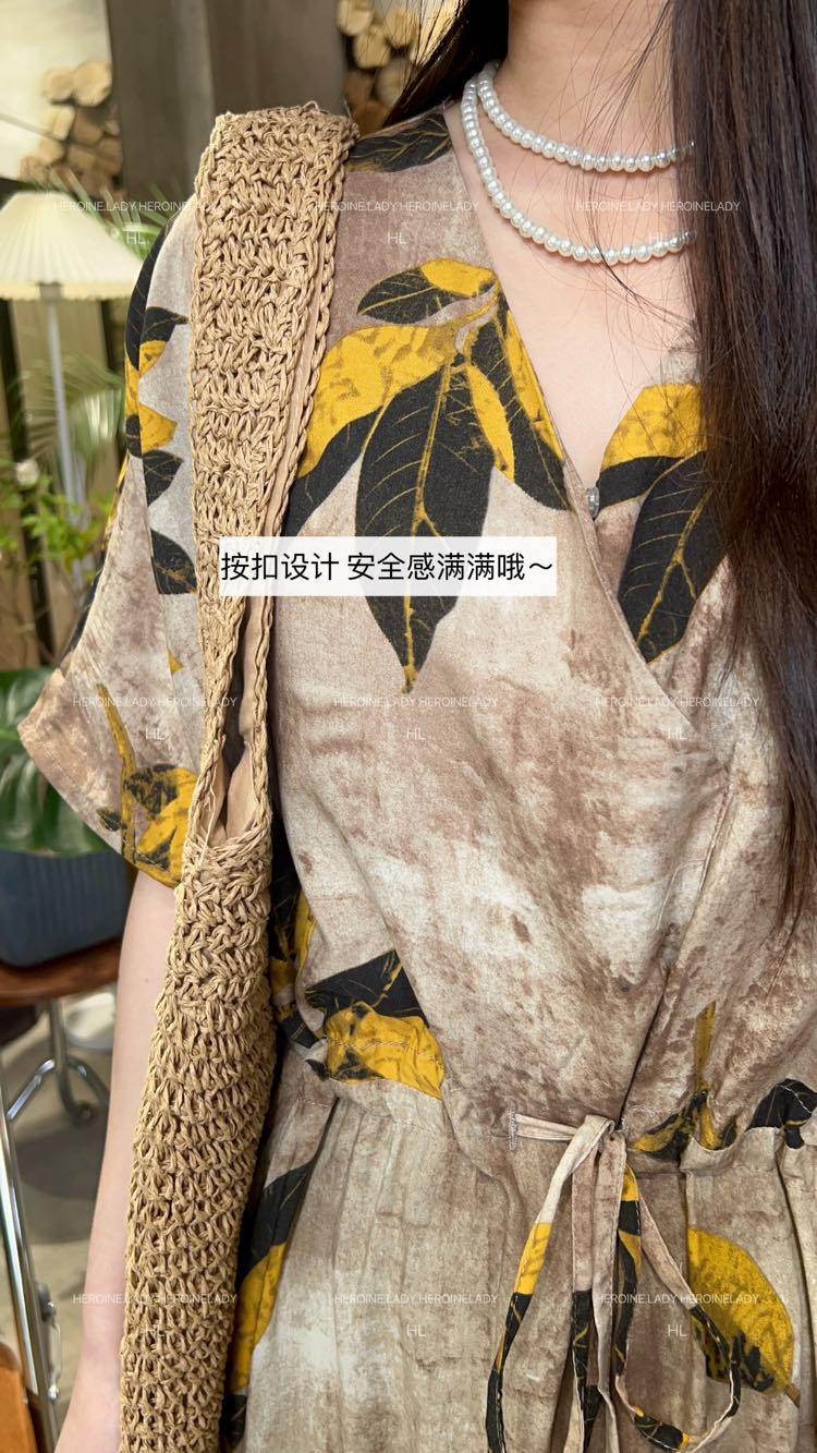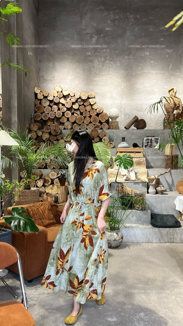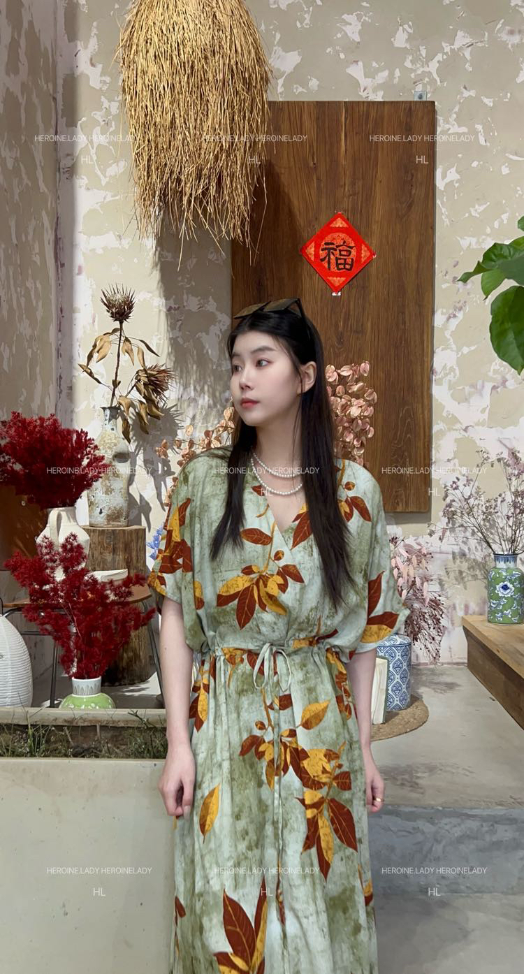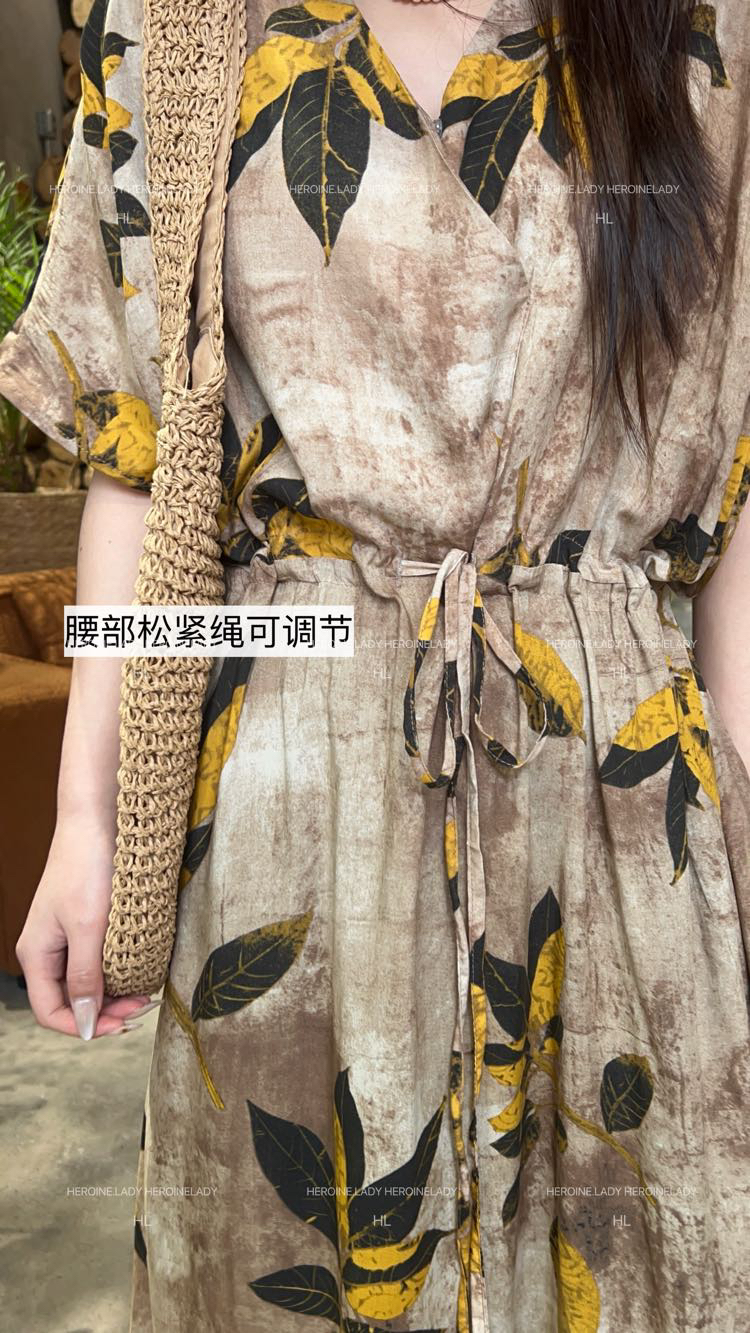 【楓葉蜜語】HL棉綢夏季國風休閒氣質顯瘦百搭法式高級長款連衣裙