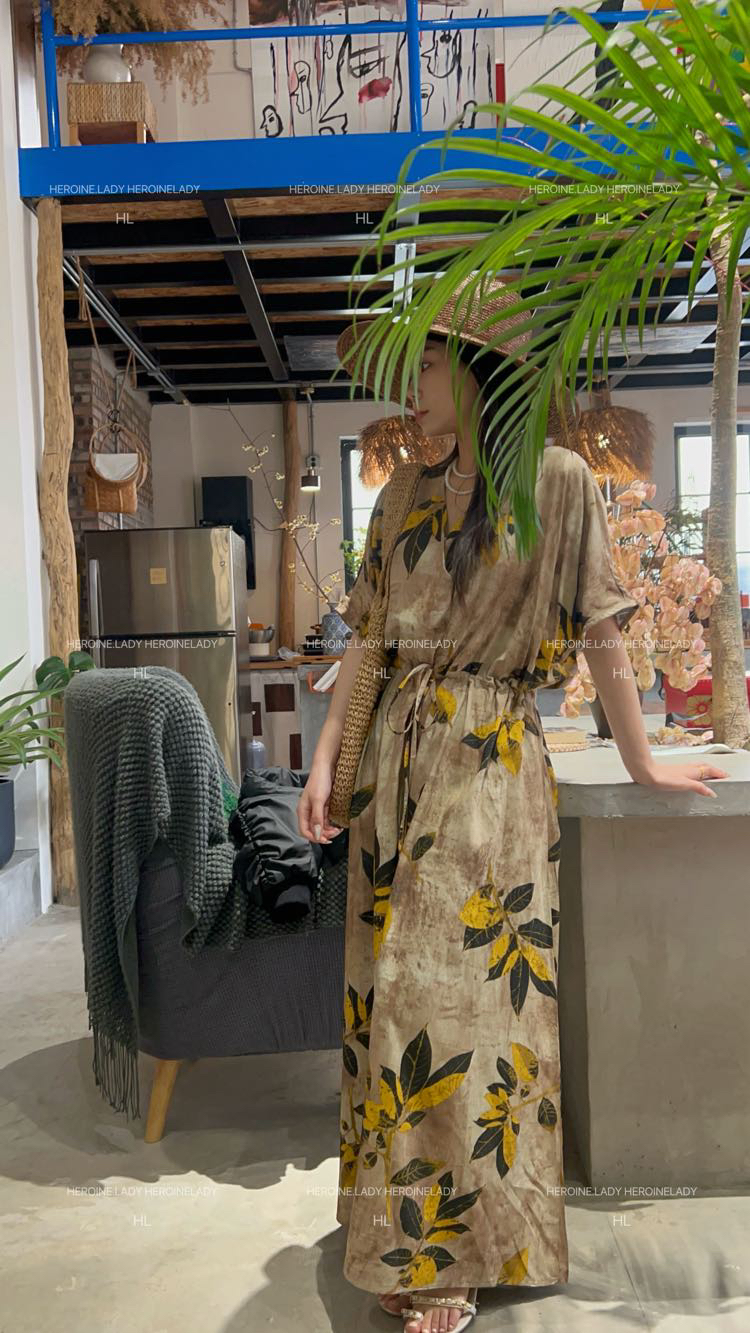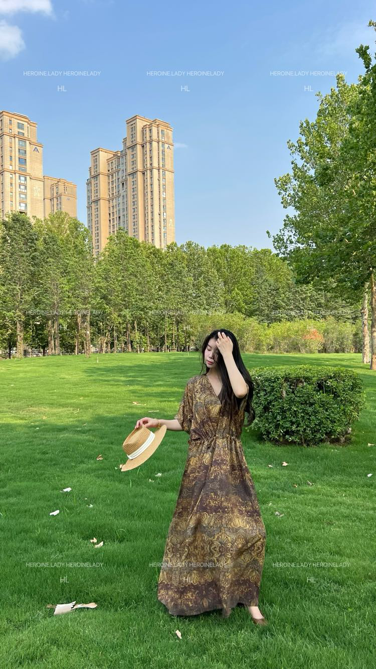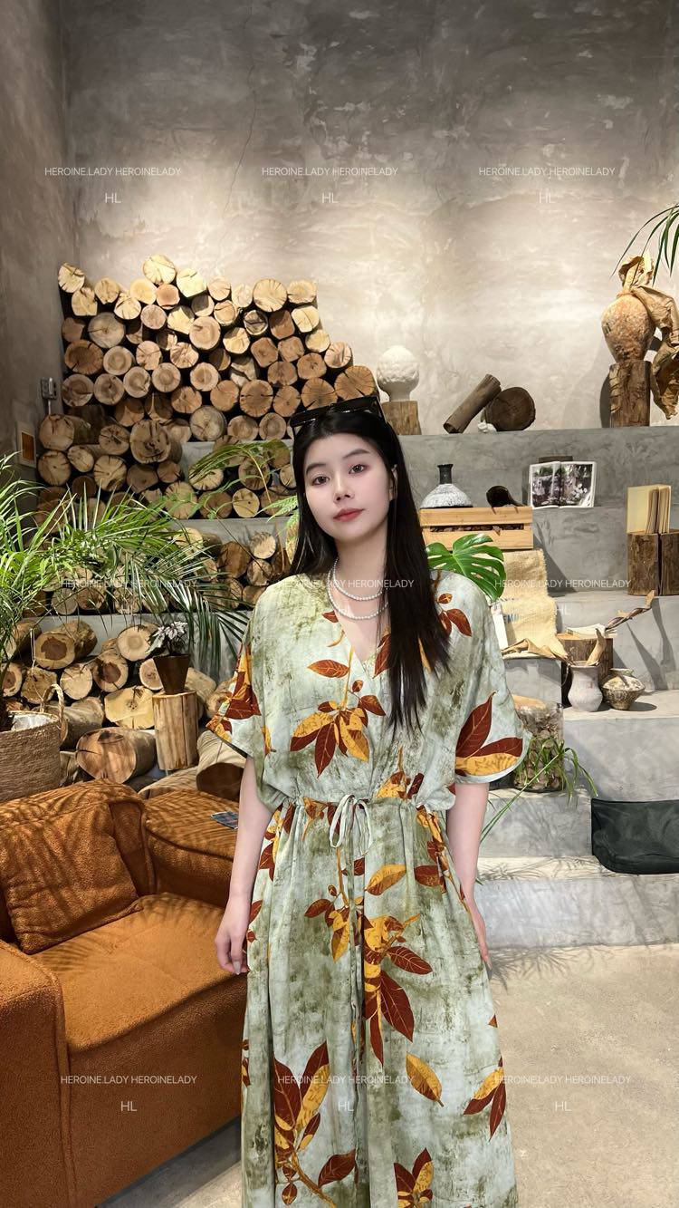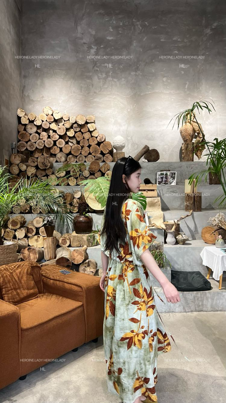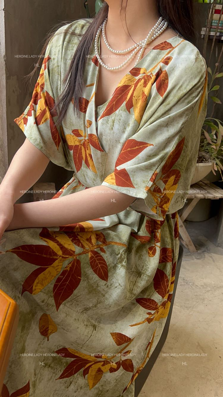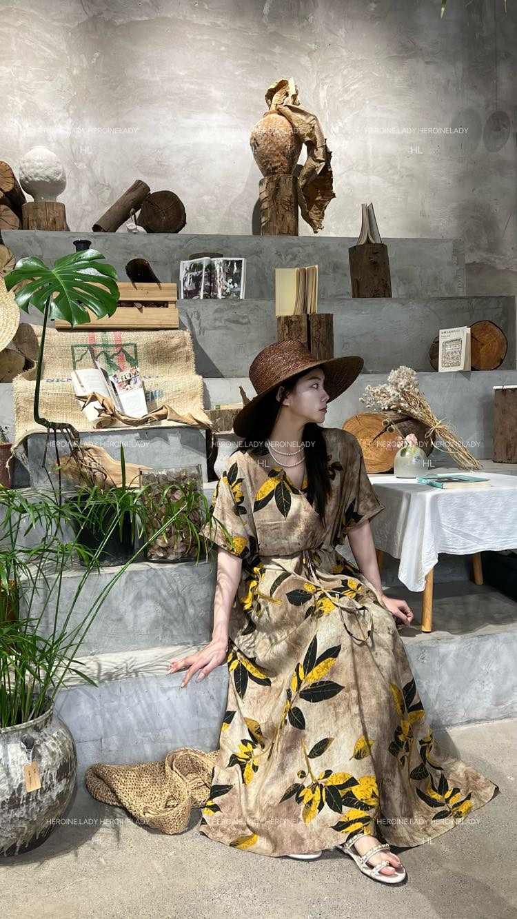 【楓葉蜜語】HL棉綢夏季國風休閒氣質顯瘦百搭法式高級長款連衣裙