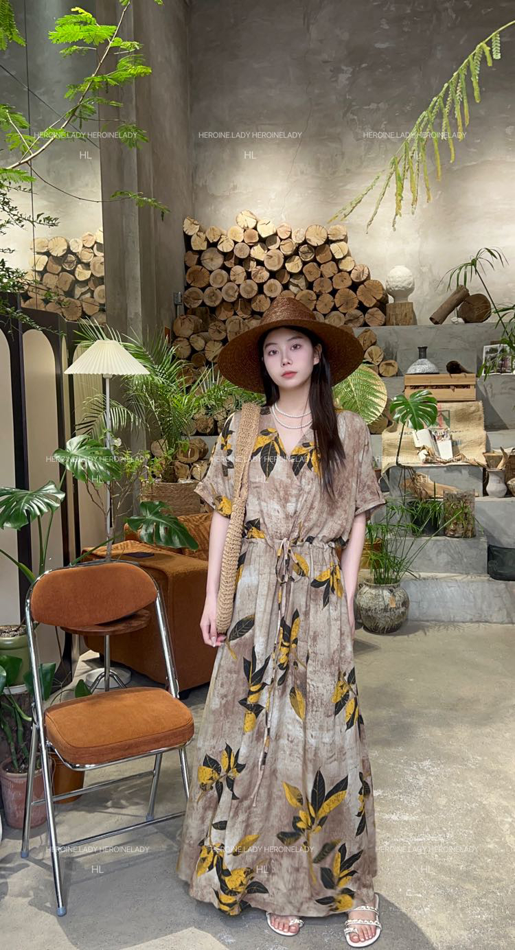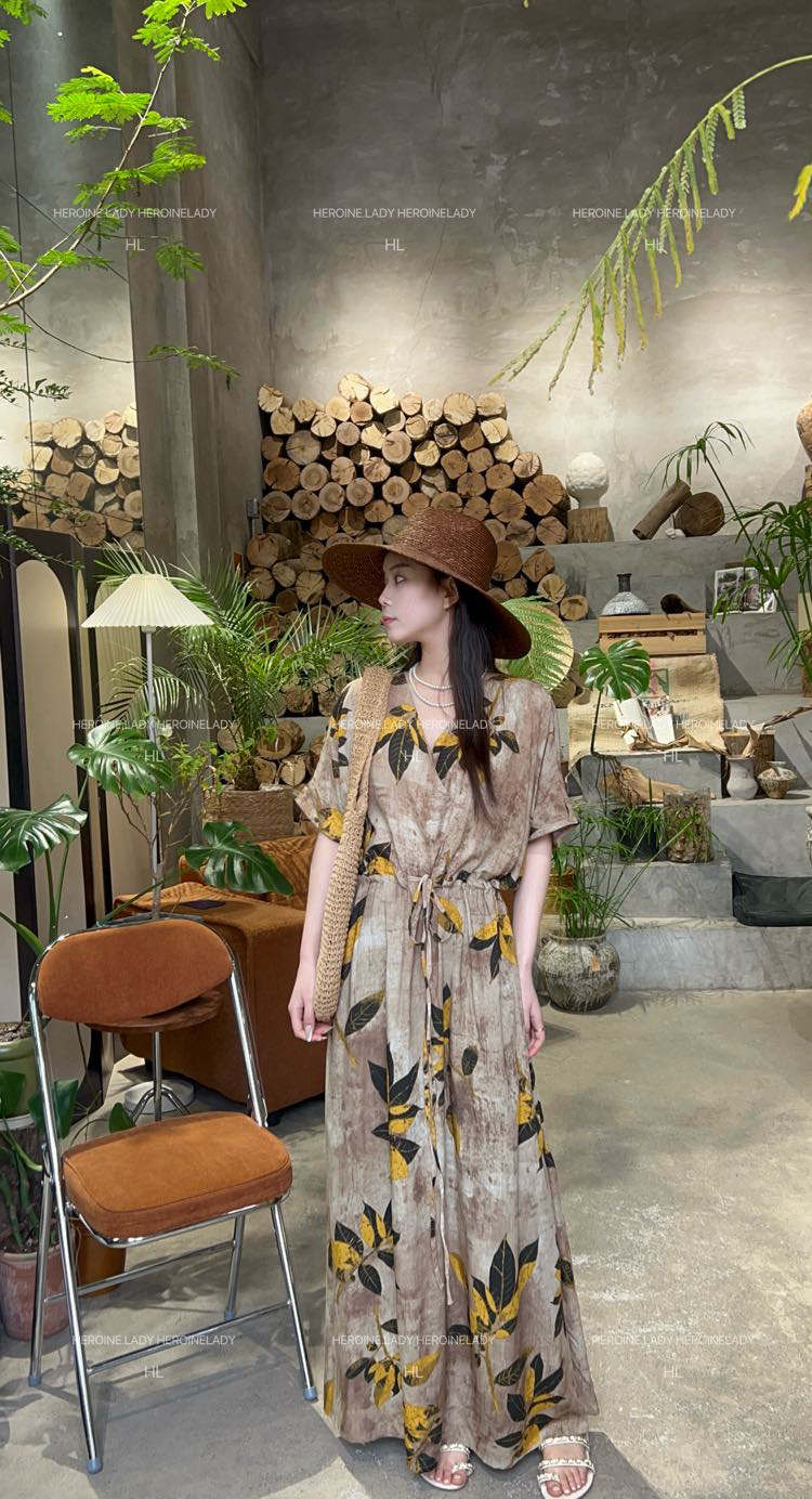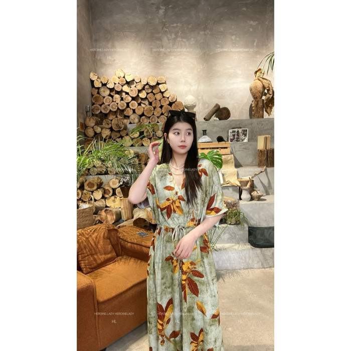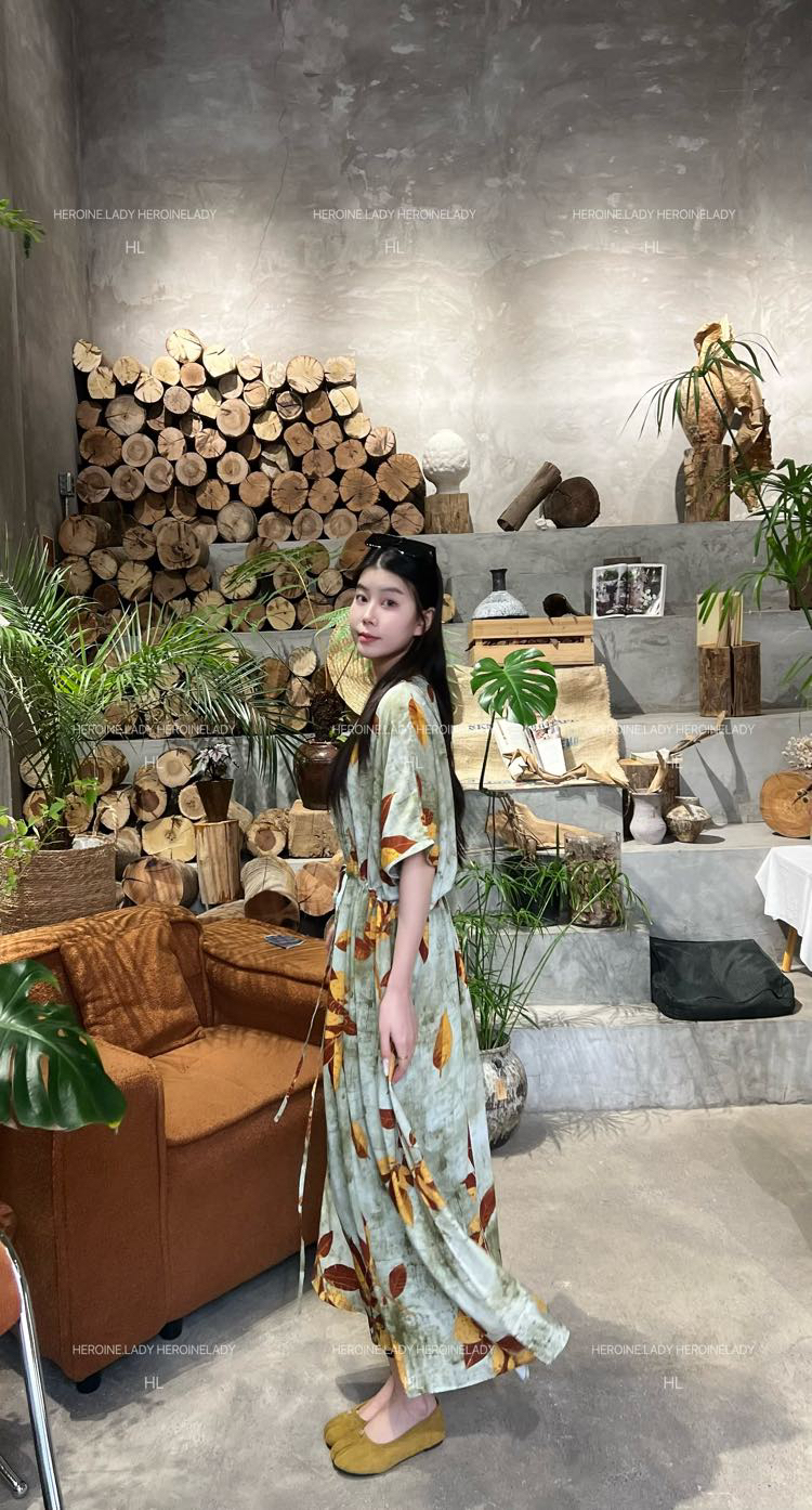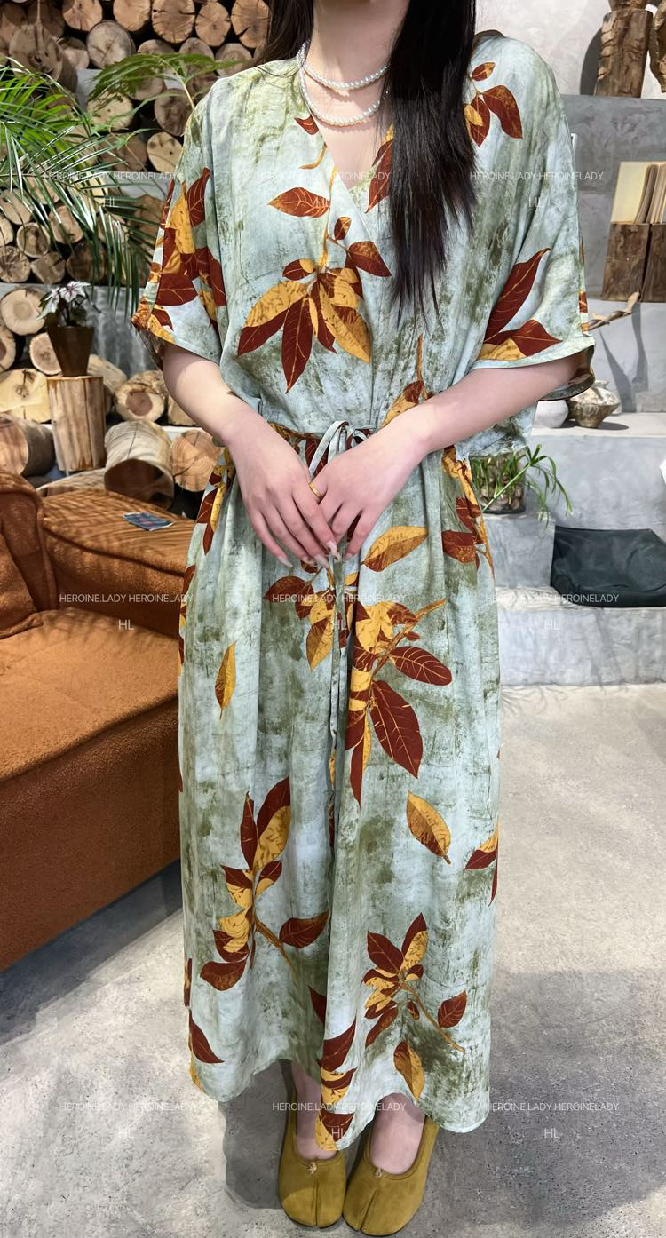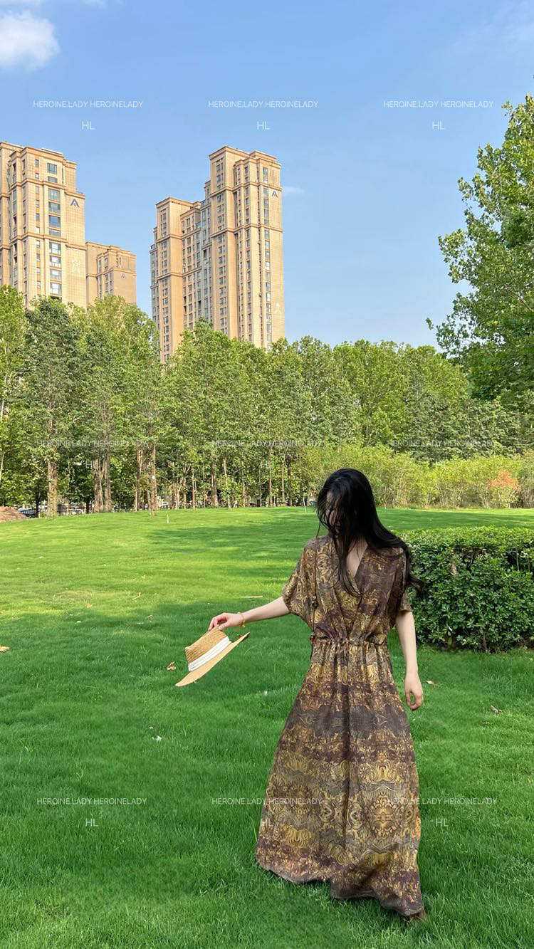 【楓葉蜜語】HL棉綢夏季國風休閒氣質顯瘦百搭法式高級長款連衣裙