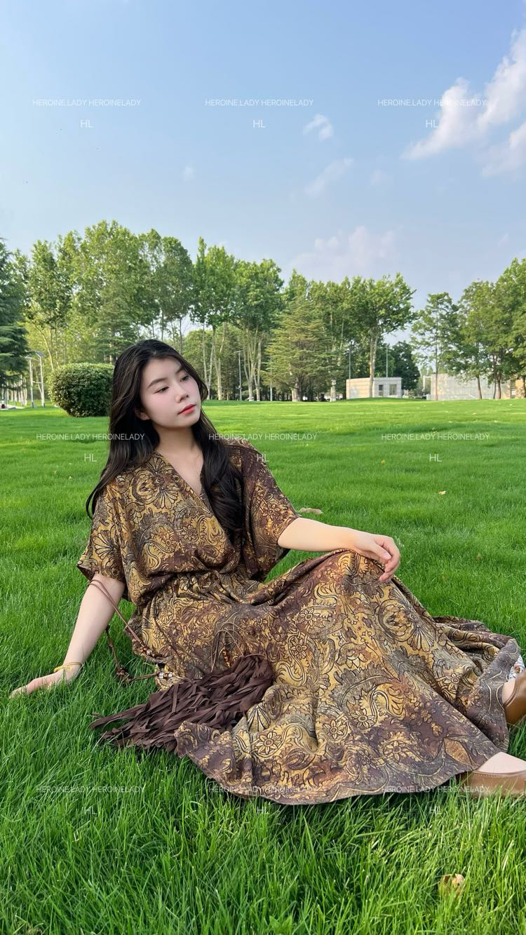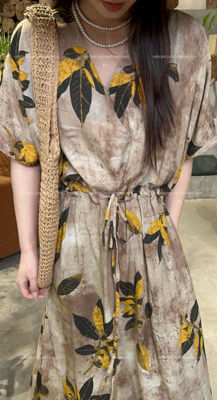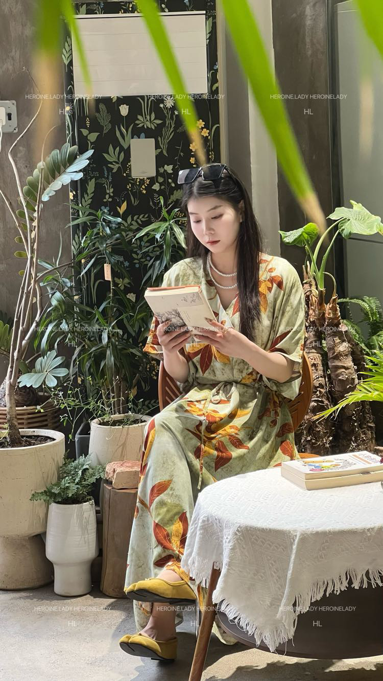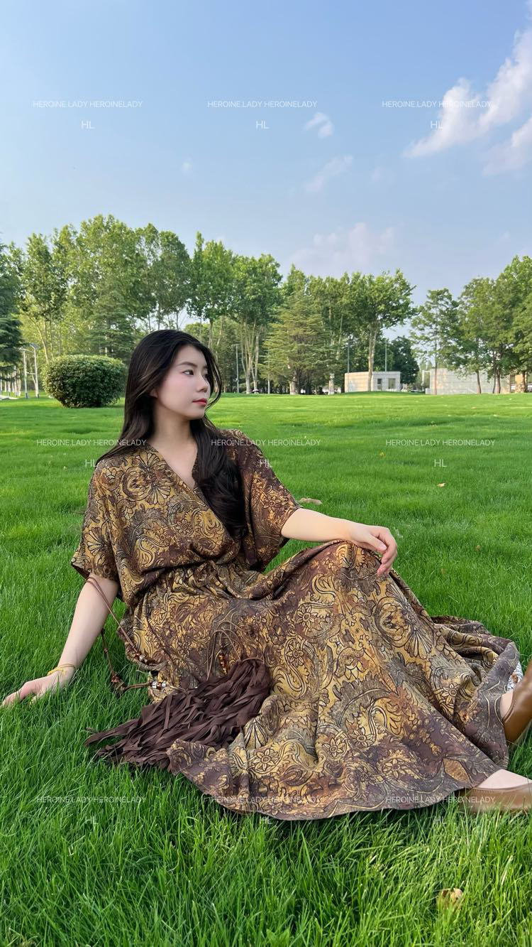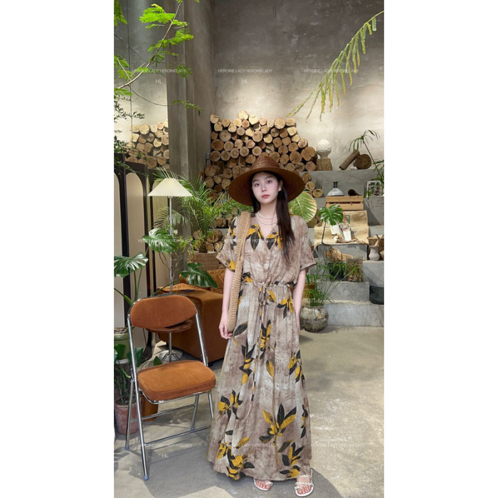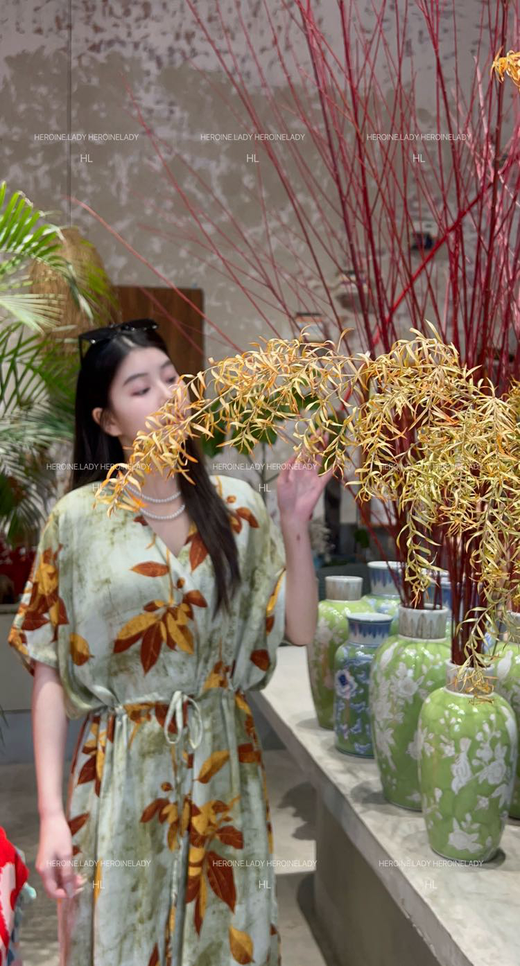 【楓葉蜜語】HL棉綢夏季國風休閒氣質顯瘦百搭法式高級長款連衣裙