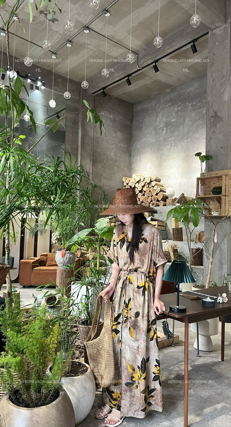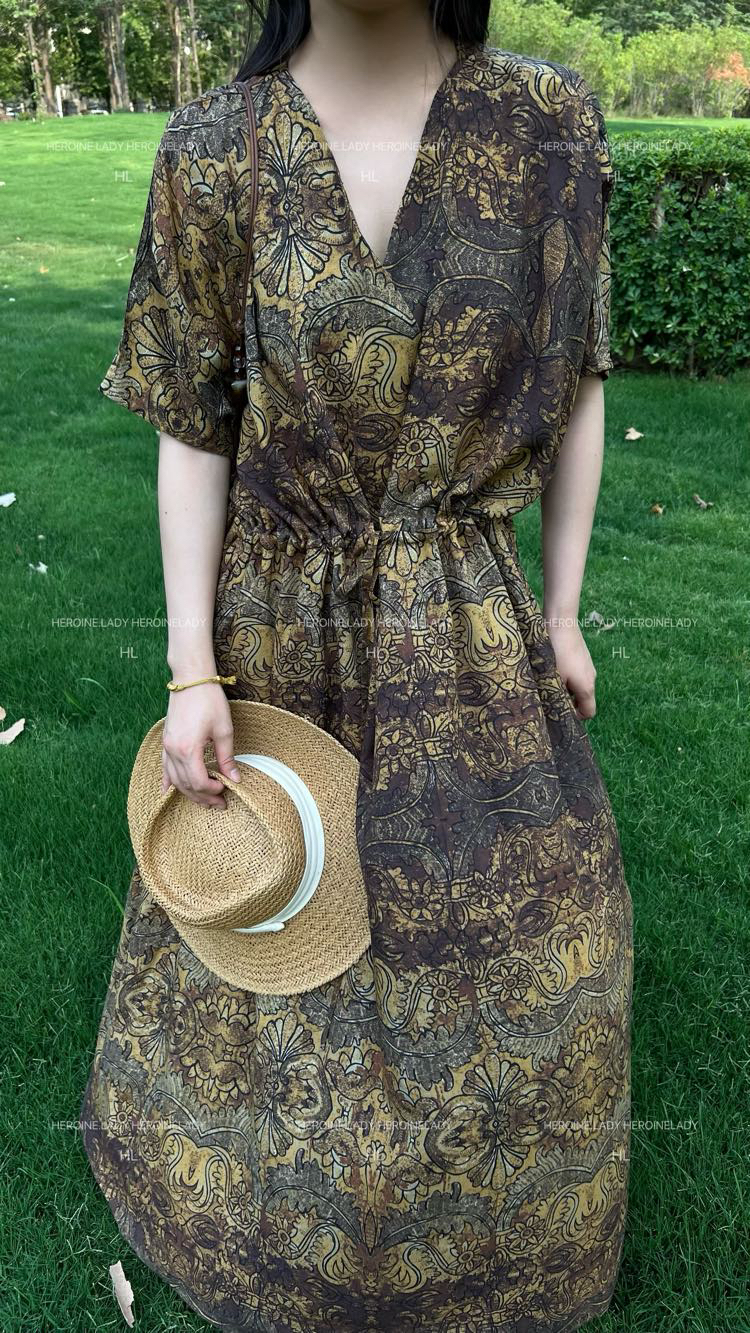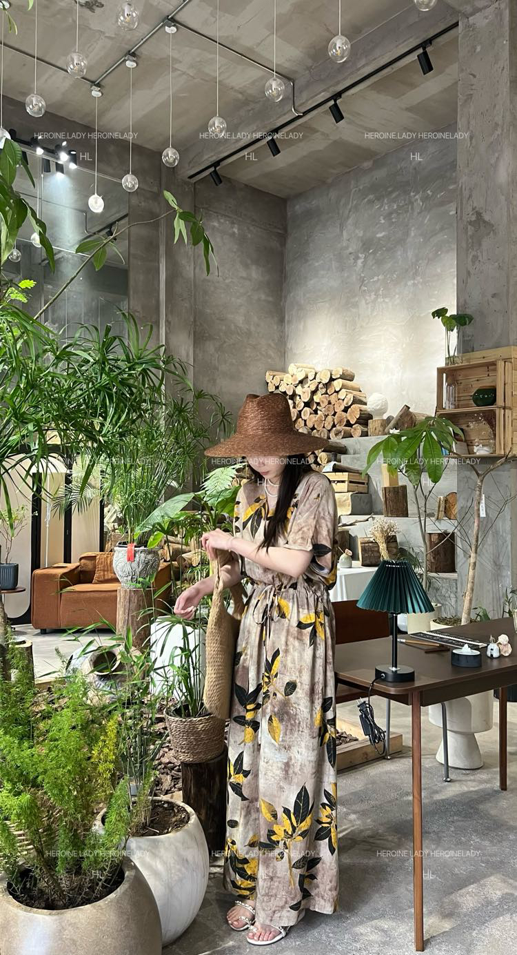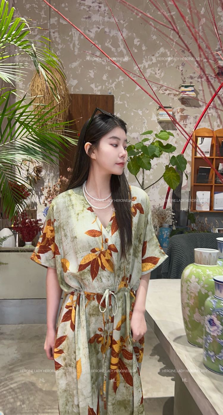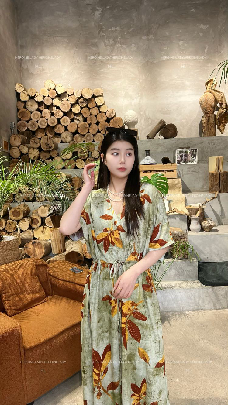 【楓葉蜜語】HL棉綢夏季國風休閒氣質顯瘦百搭法式高級長款連衣裙