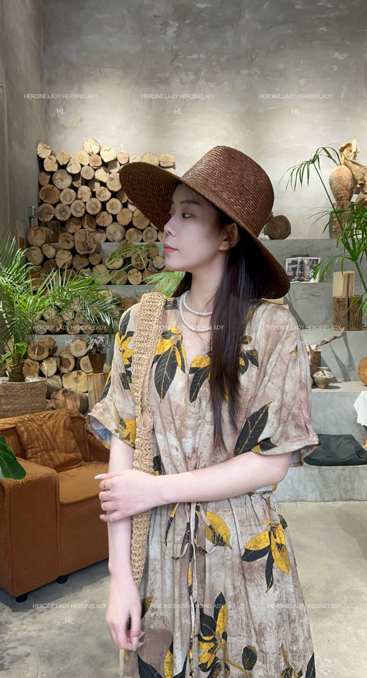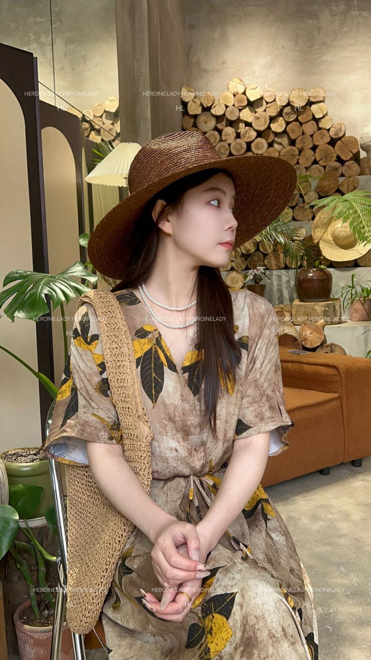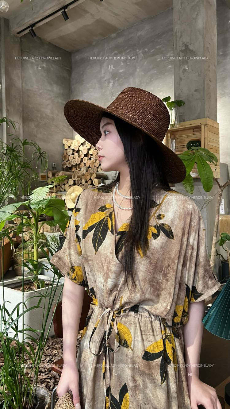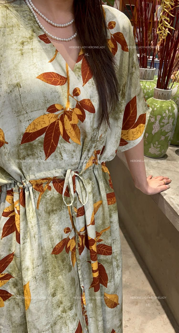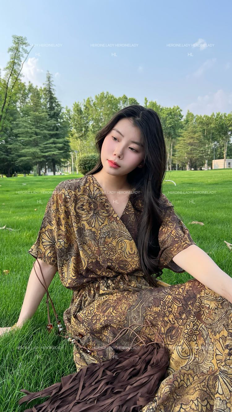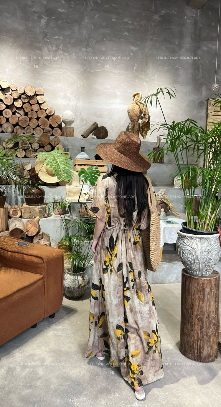 【楓葉蜜語】HL棉綢夏季國風休閒氣質顯瘦百搭法式高級長款連衣裙