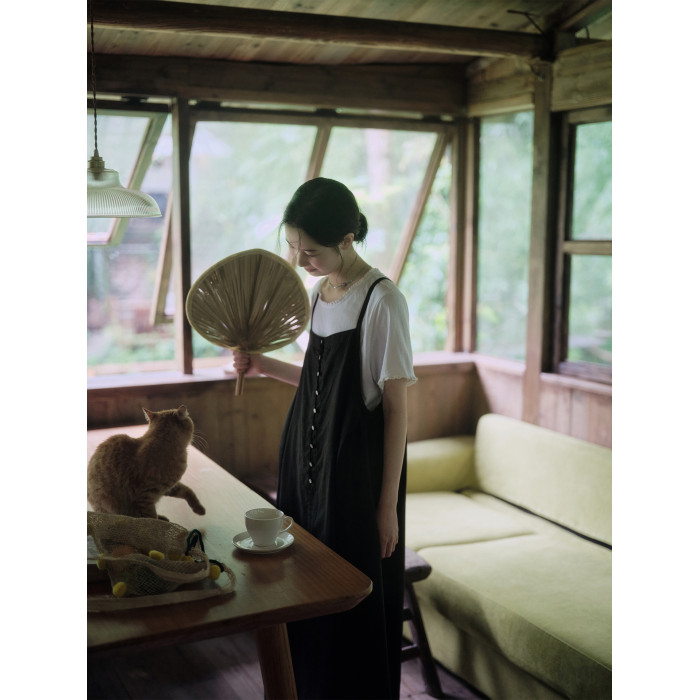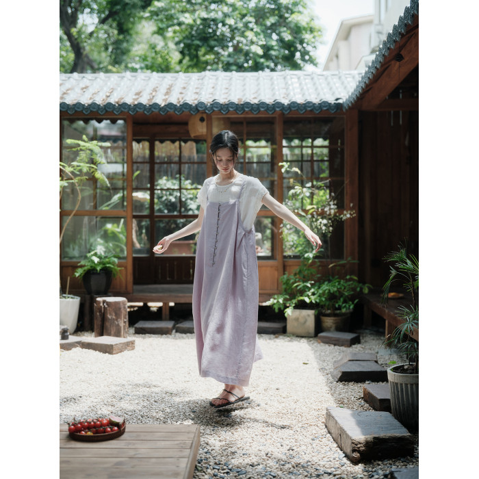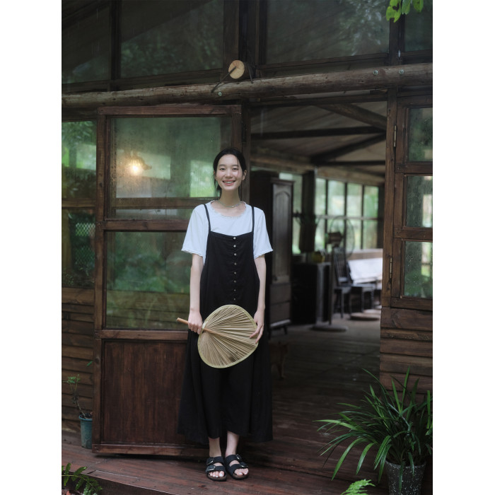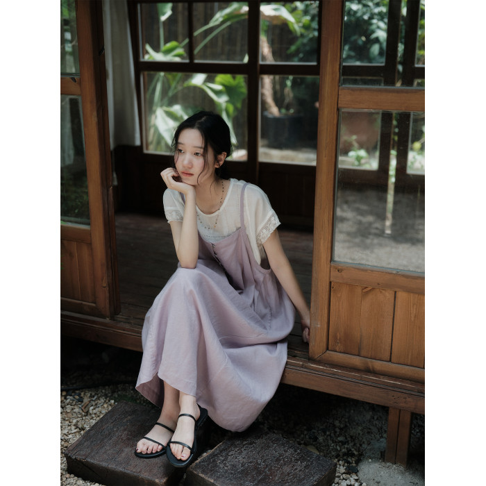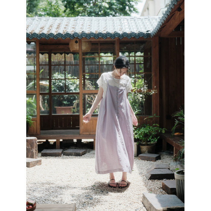 說與山聽「花蝴蝶」100亞麻吊帶背心裙連衣裙日系女夏 9342