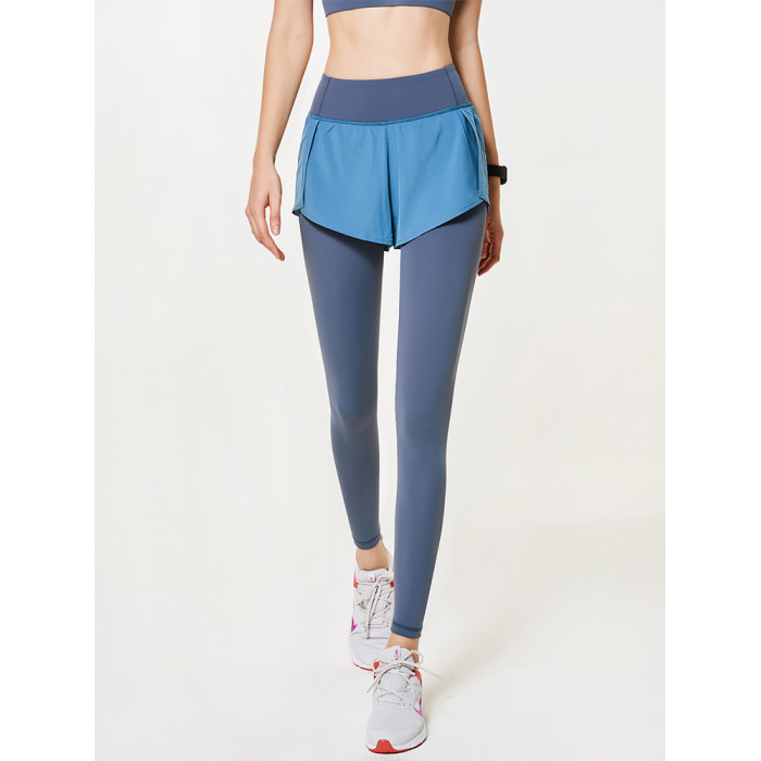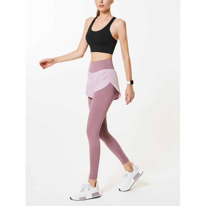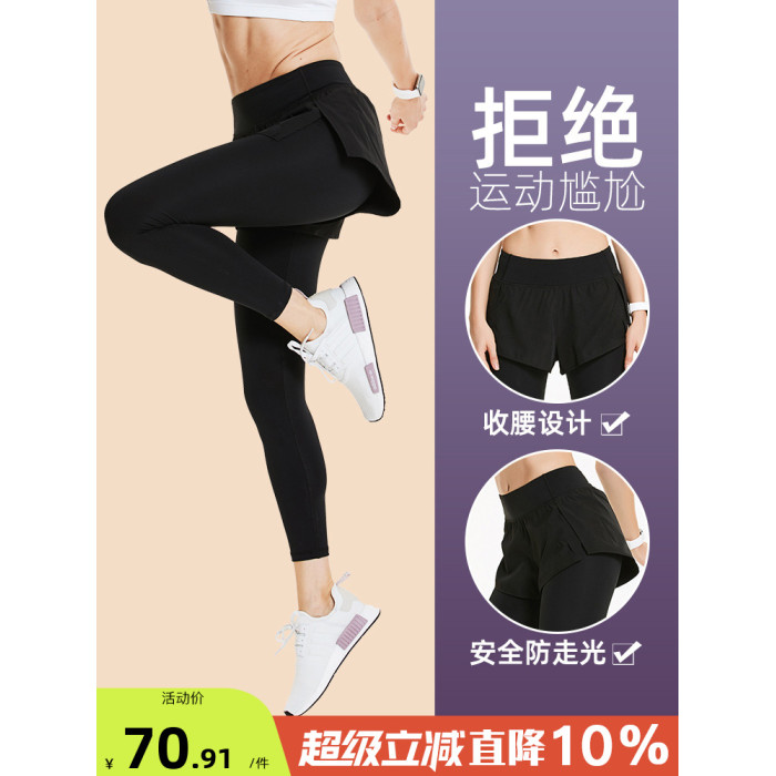 假兩件瑜伽褲大碼健身褲女夏季薄款緊身高腰提臀外穿跑步褲運動褲