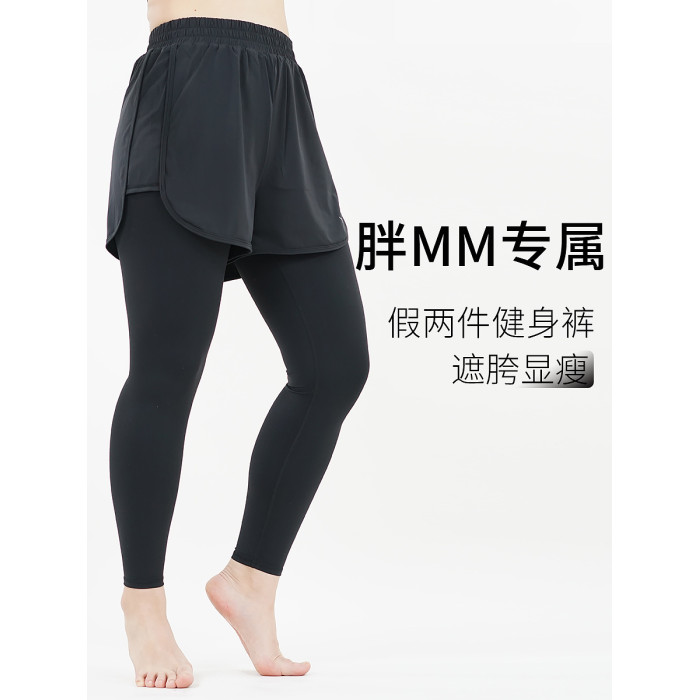 大碼瑜伽服瑜伽褲女胖mm健身服高彈運動訓練褲緊身彈力長褲健身褲