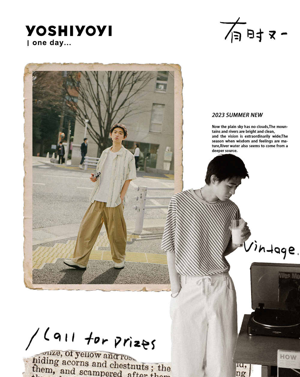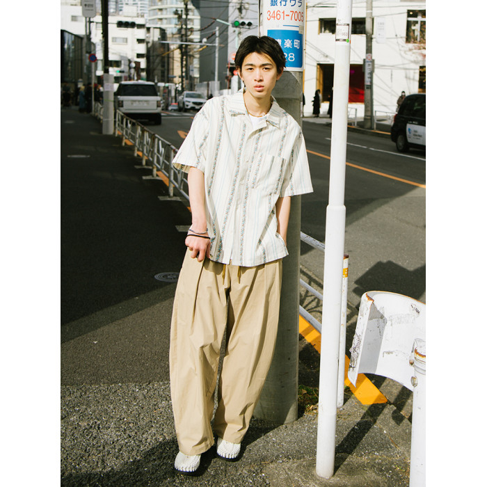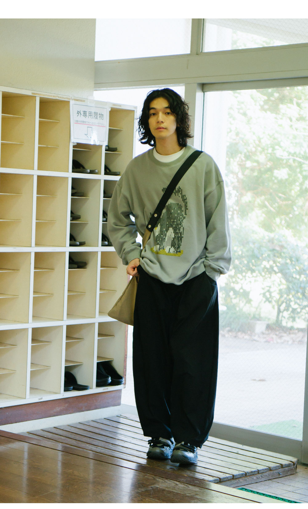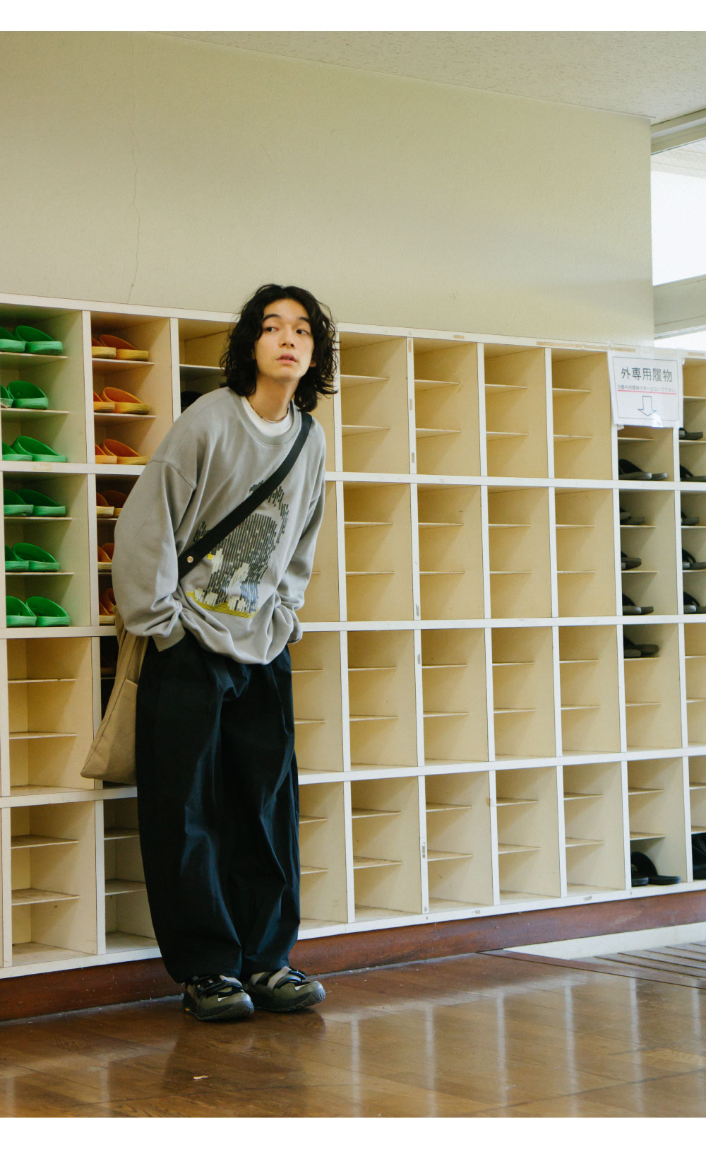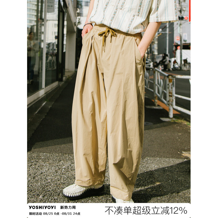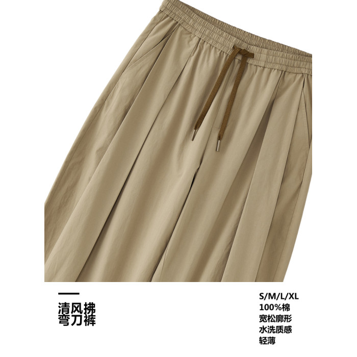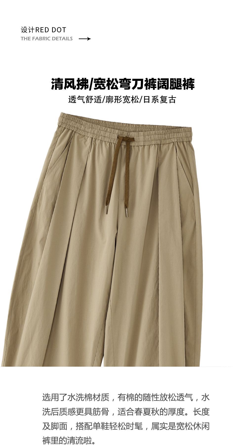 有時又一/清風拂 日系寬松弧形解搆彎刀褲濶腿褲男復古百搭休閒褲