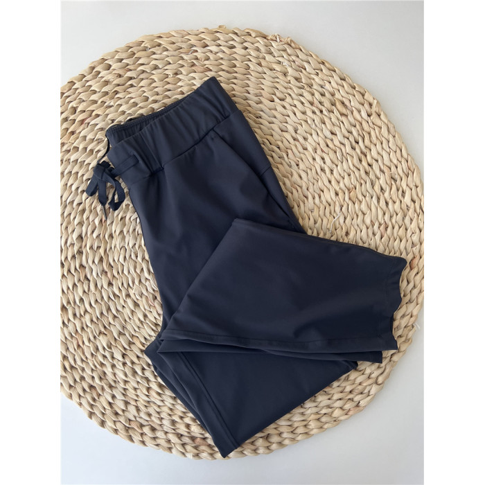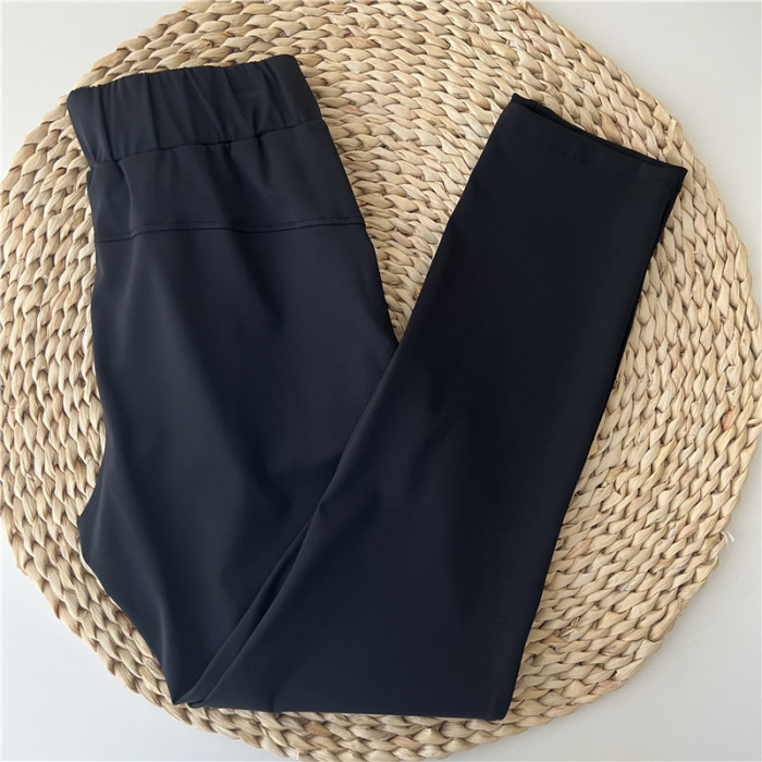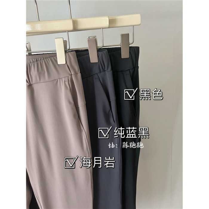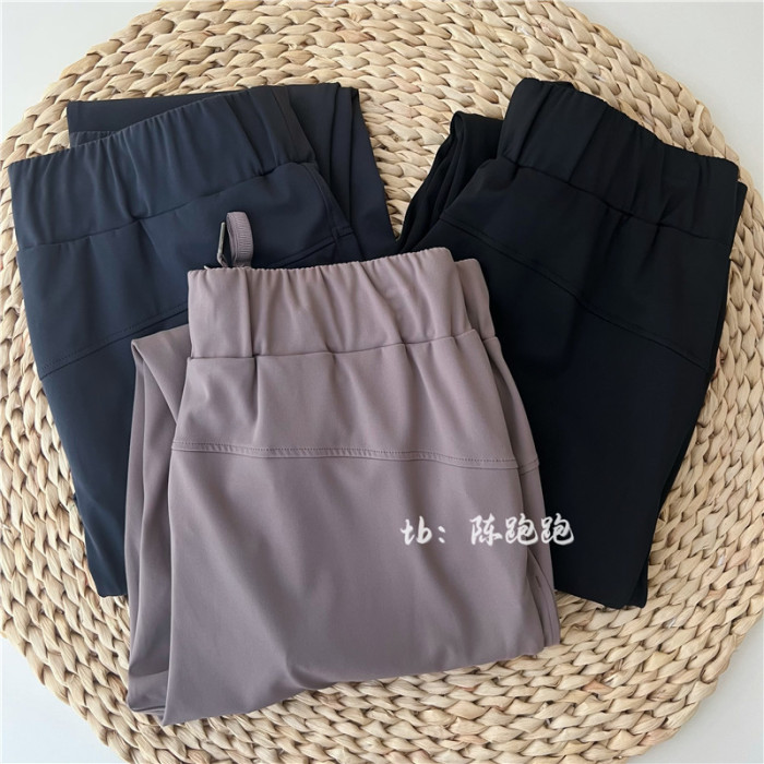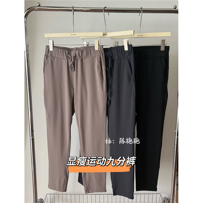 陳跑跑寬松女士高腰中長裸感高彈健身顯瘦抽繩休閒7/8分運動褲