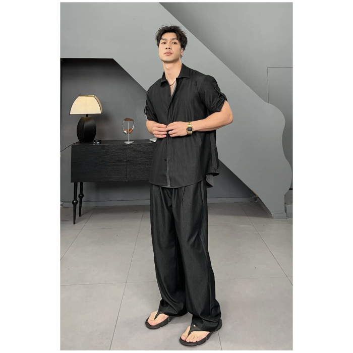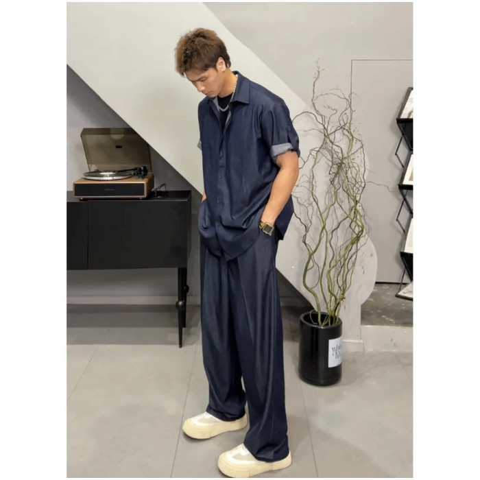 JK夏季新品牛仔褲男中腰垂感薄款寬松顯瘦冰絲直筒拖地濶腿褲子男
