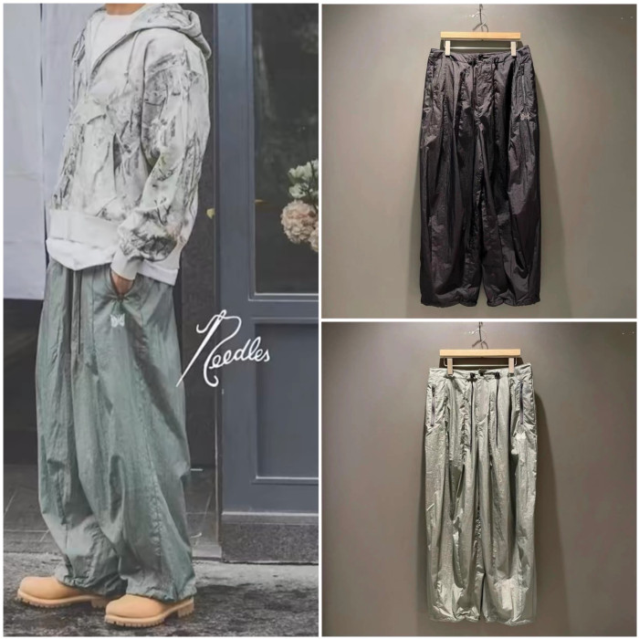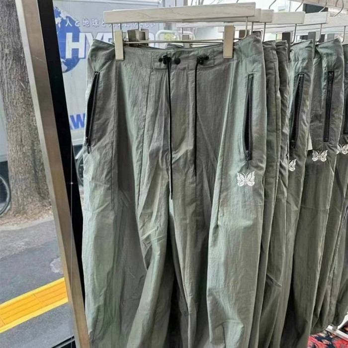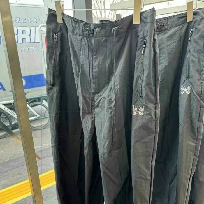 超輕薄!自主NEEDLES聯名BEAMS尼龍防水工裝休閒濶腿褲男蝴蝶束腳