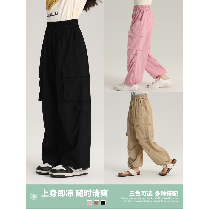 布丁哈魯童裝夏裝女童防蚊褲工裝褲薄2025夏季新款兒童休閒褲子