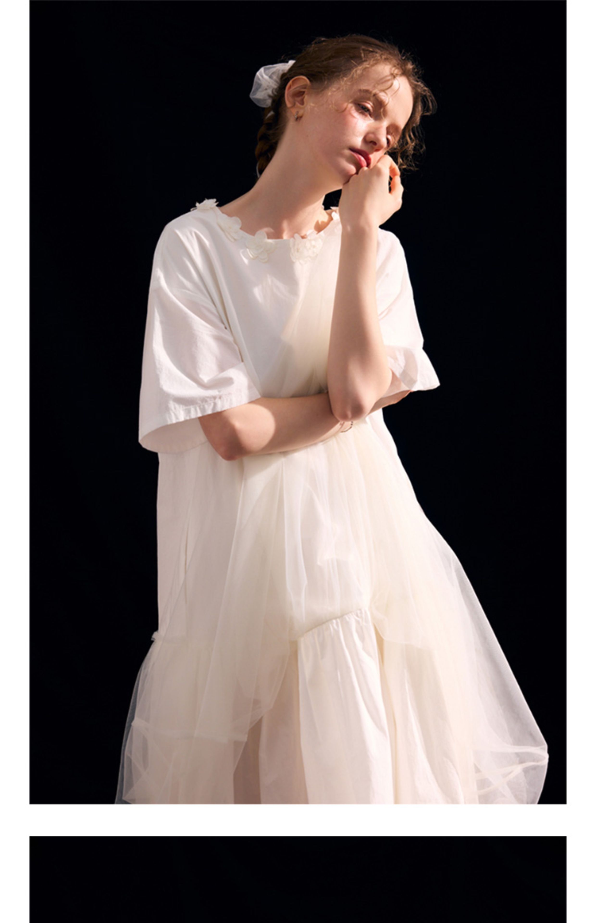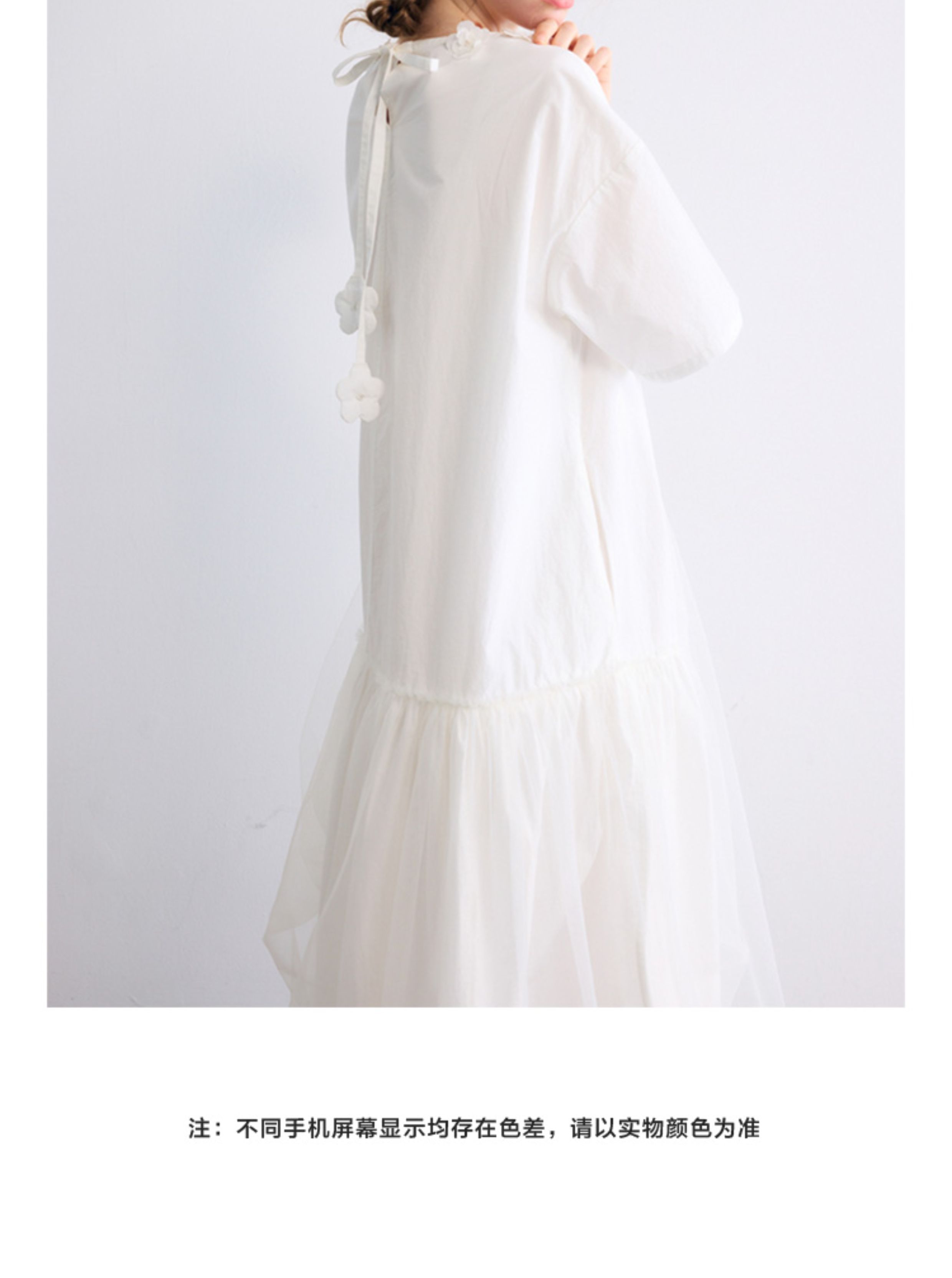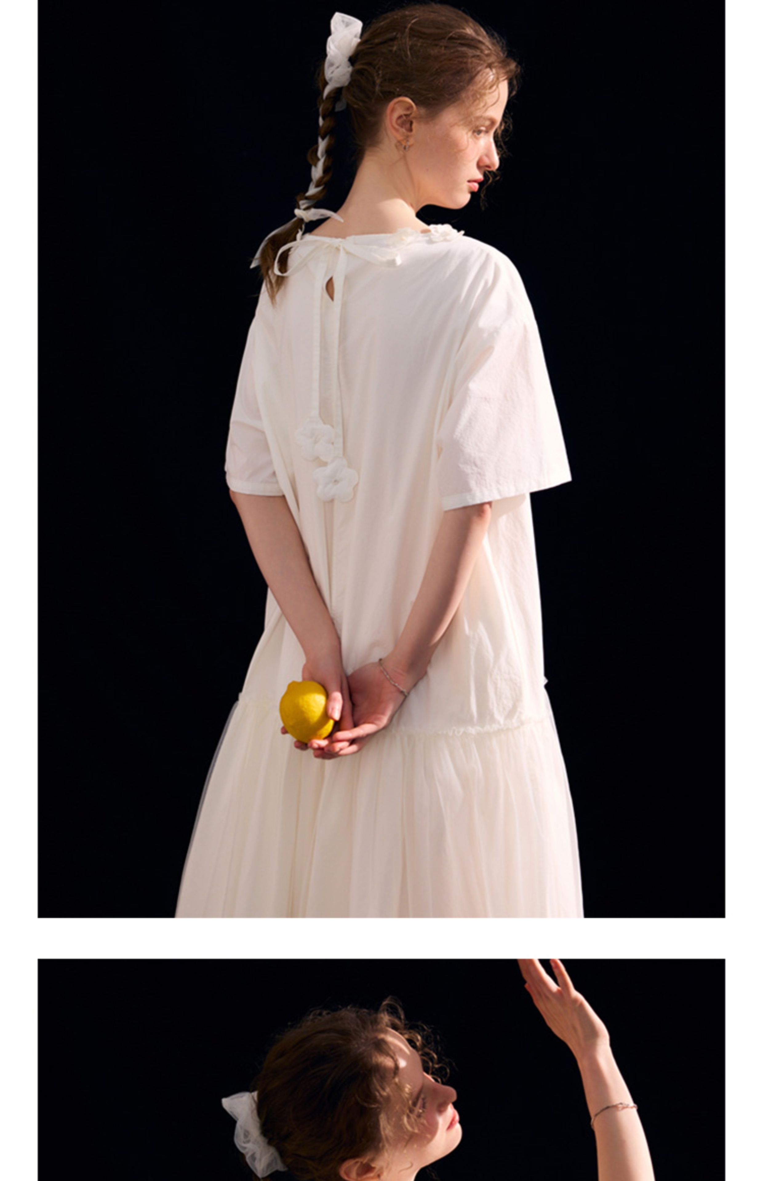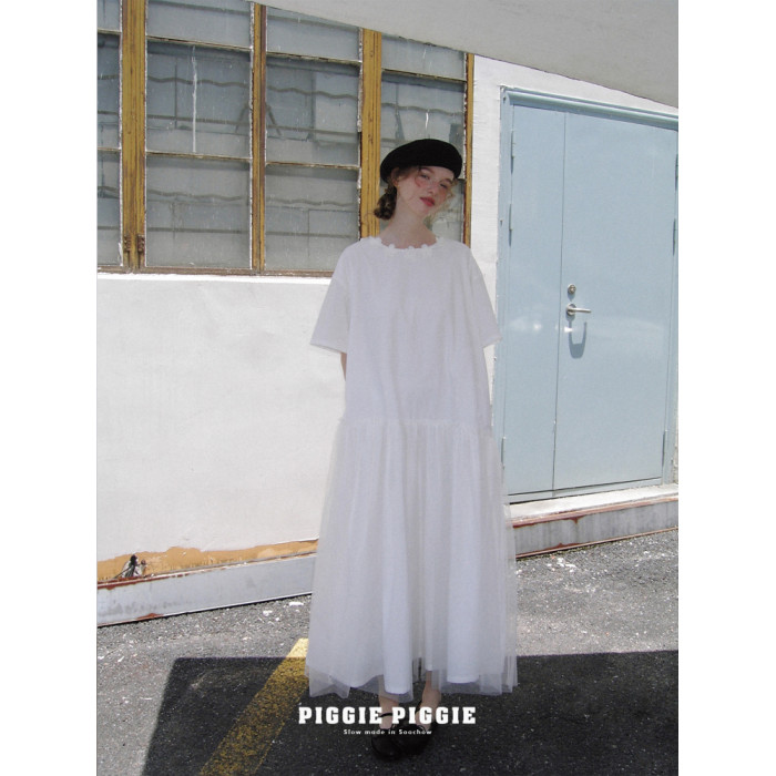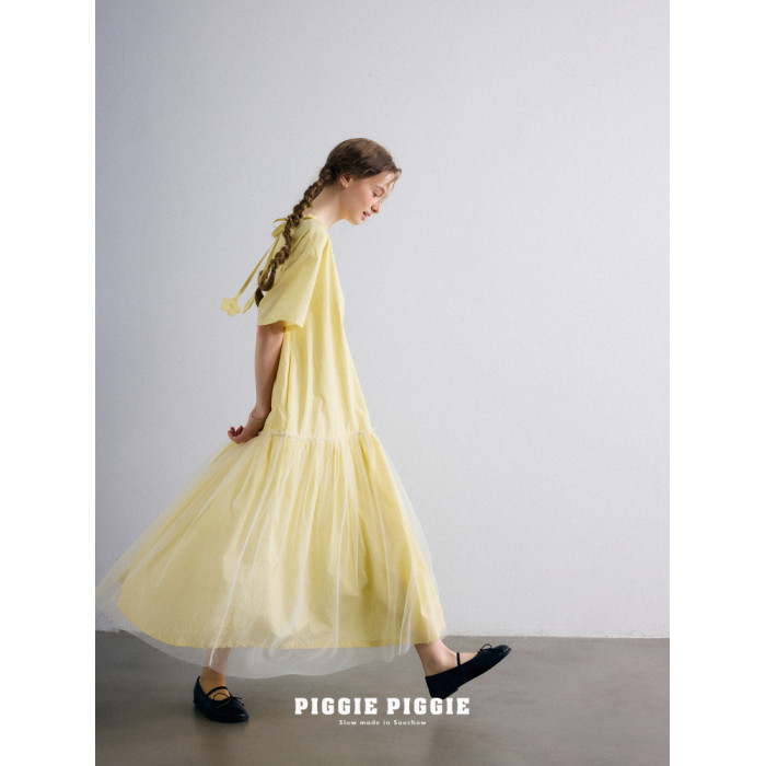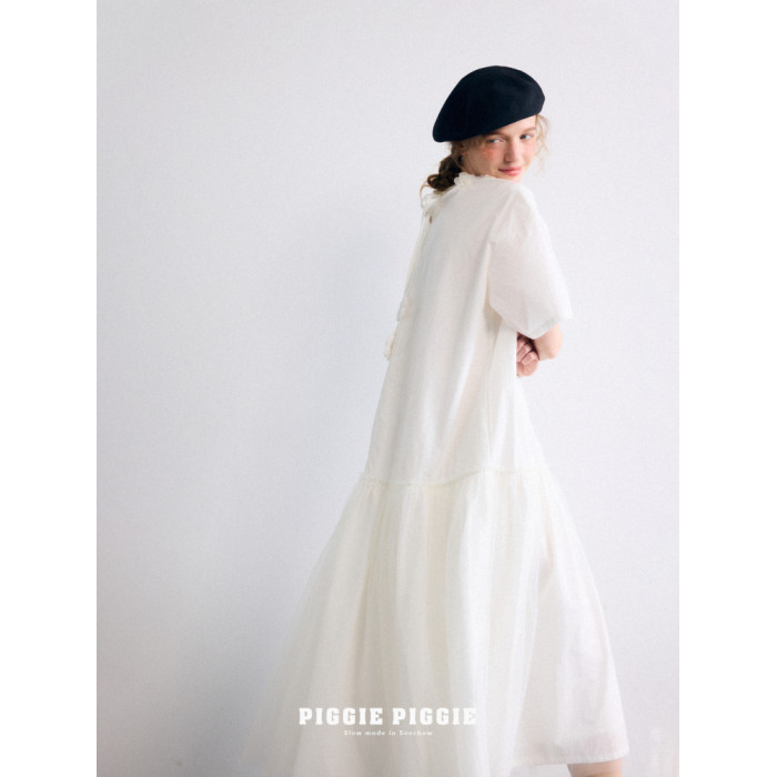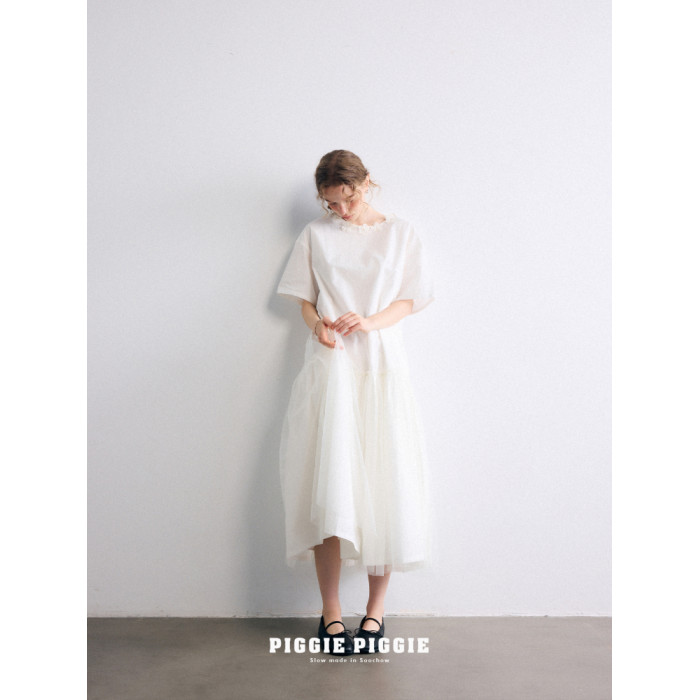 PIGGIE PIGGIE 100長絨棉曬布手工貼花拼接網紗連衣裙 PQ0105