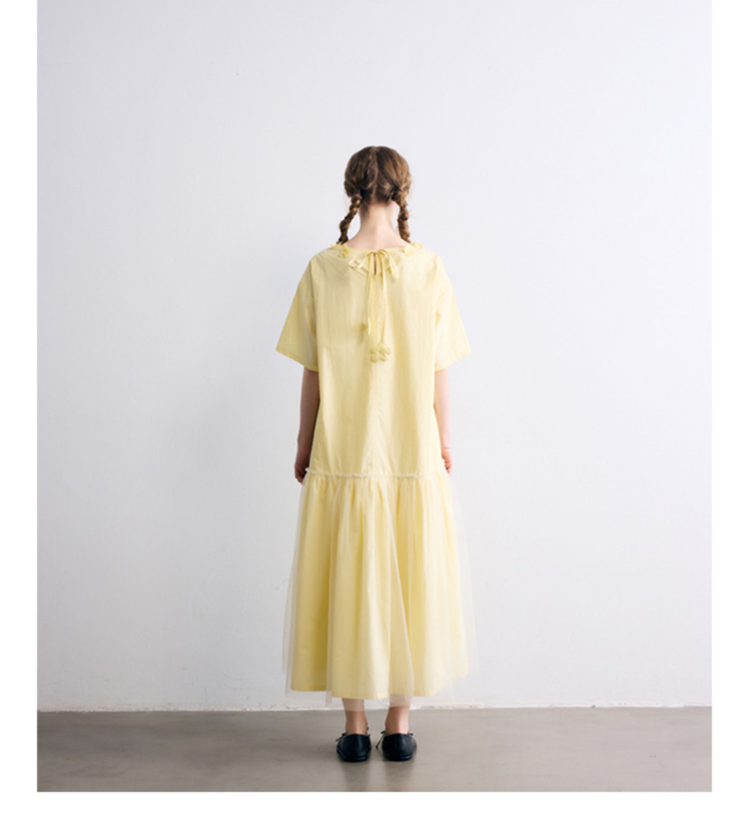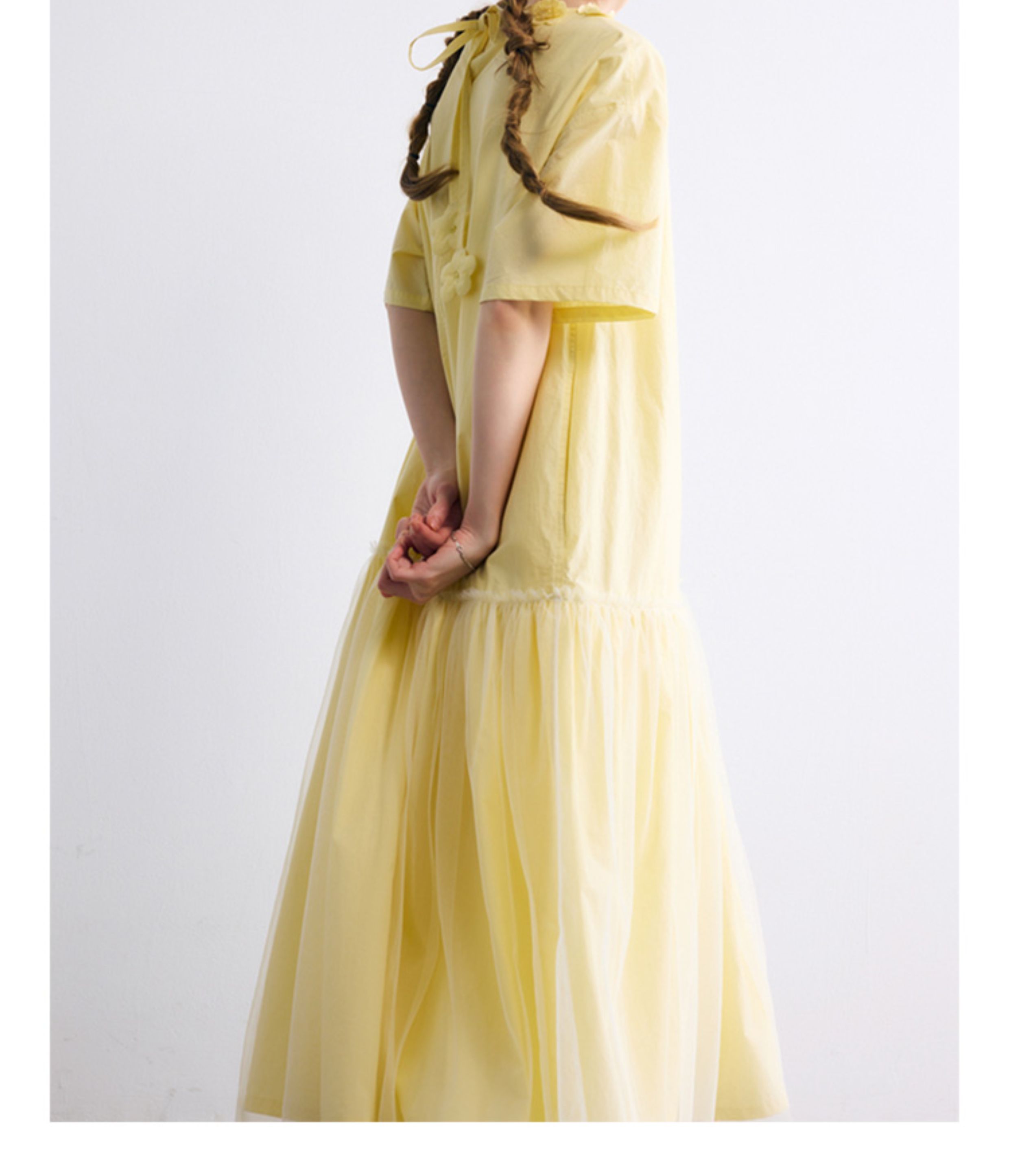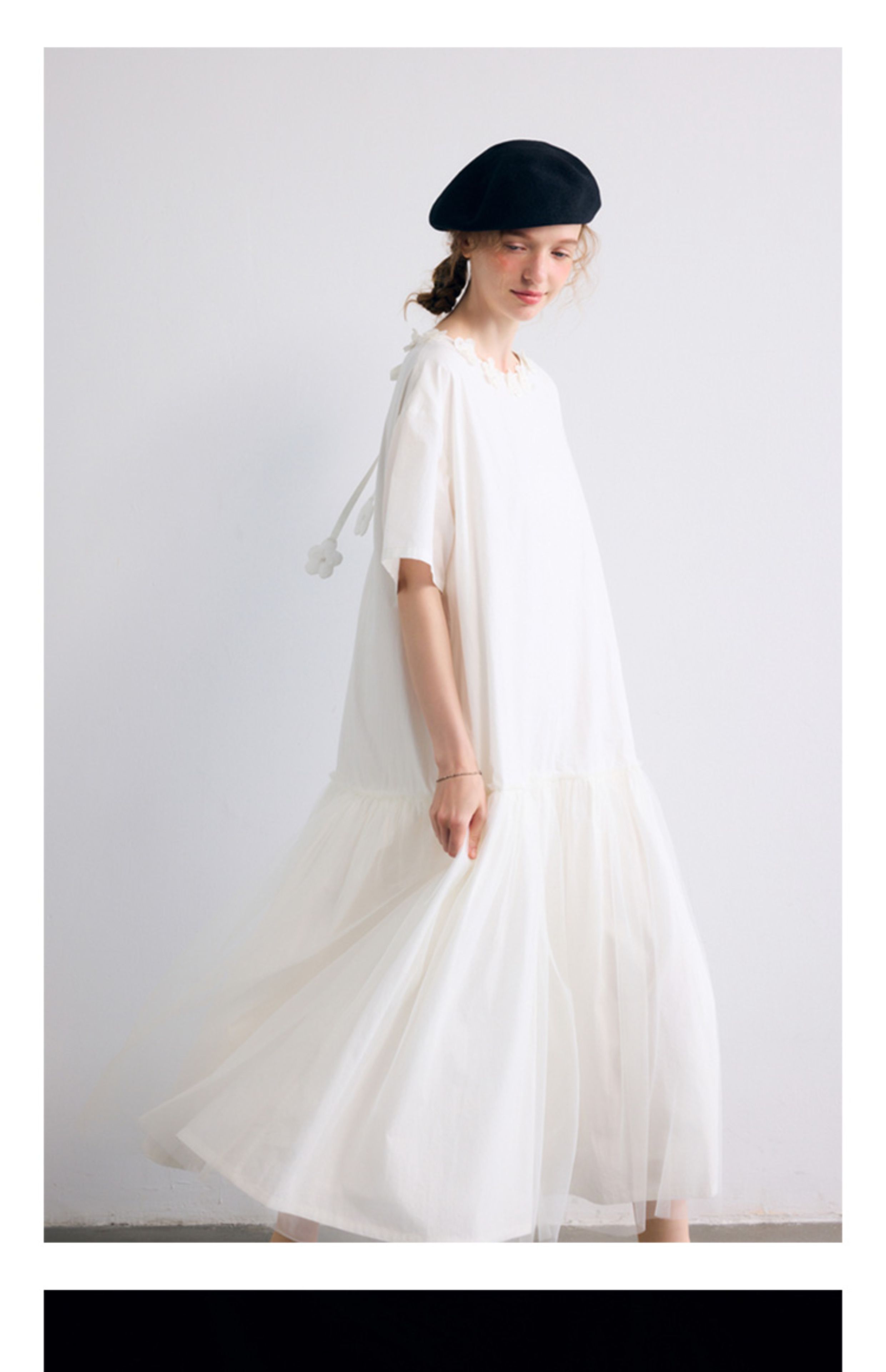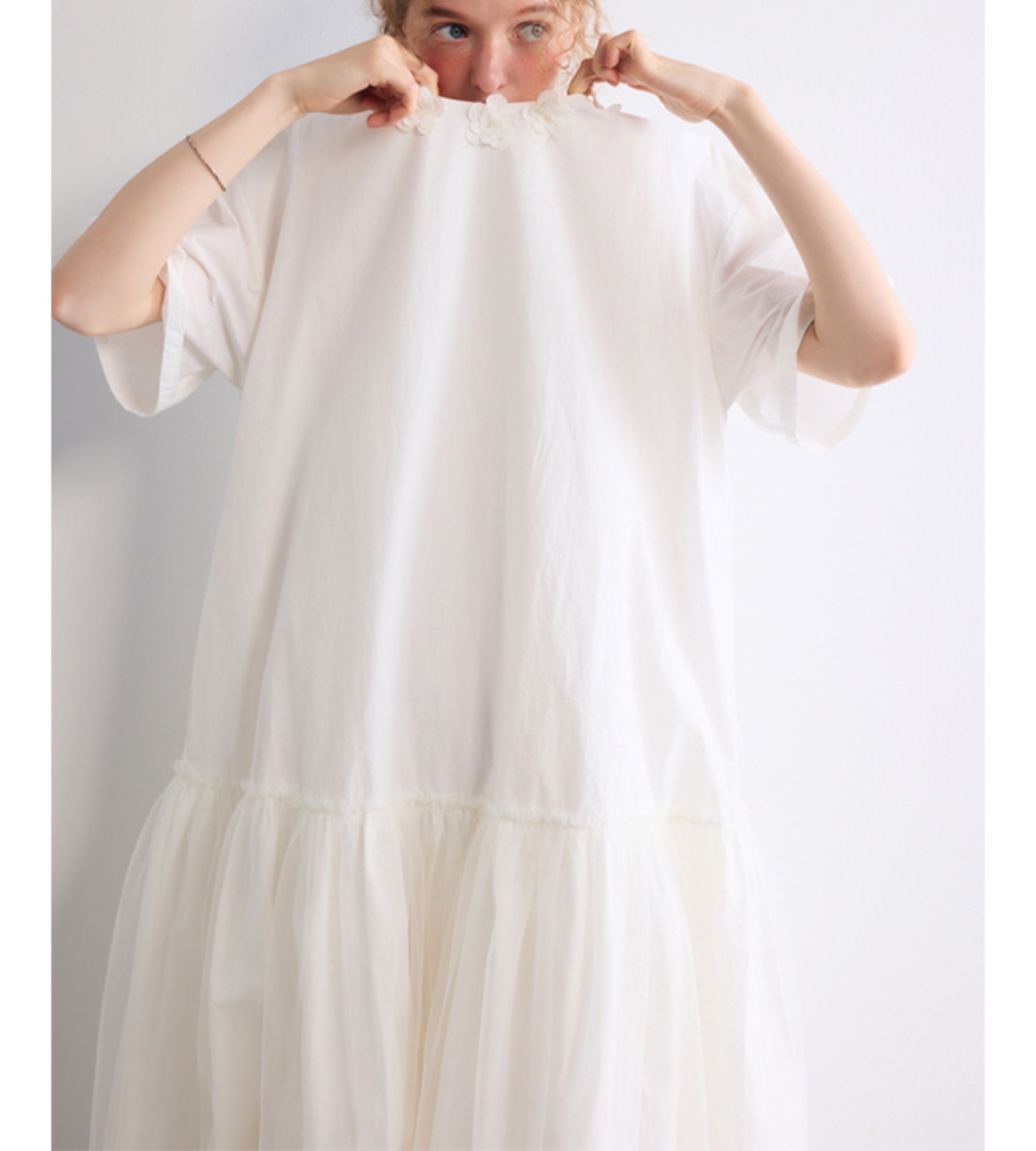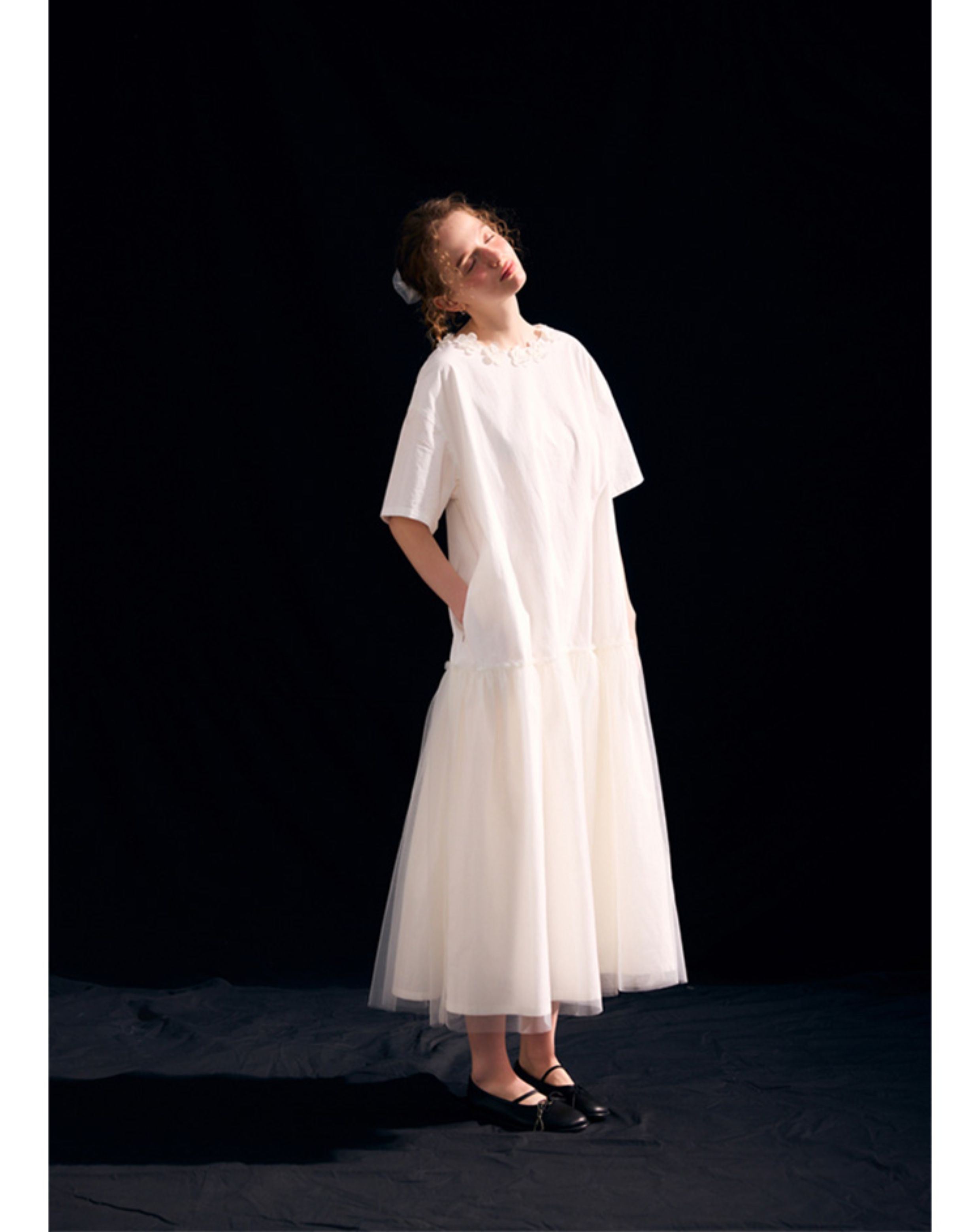PIGGIE PIGGIE 100長絨棉曬布手工貼花拼接網紗連衣裙 PQ0105