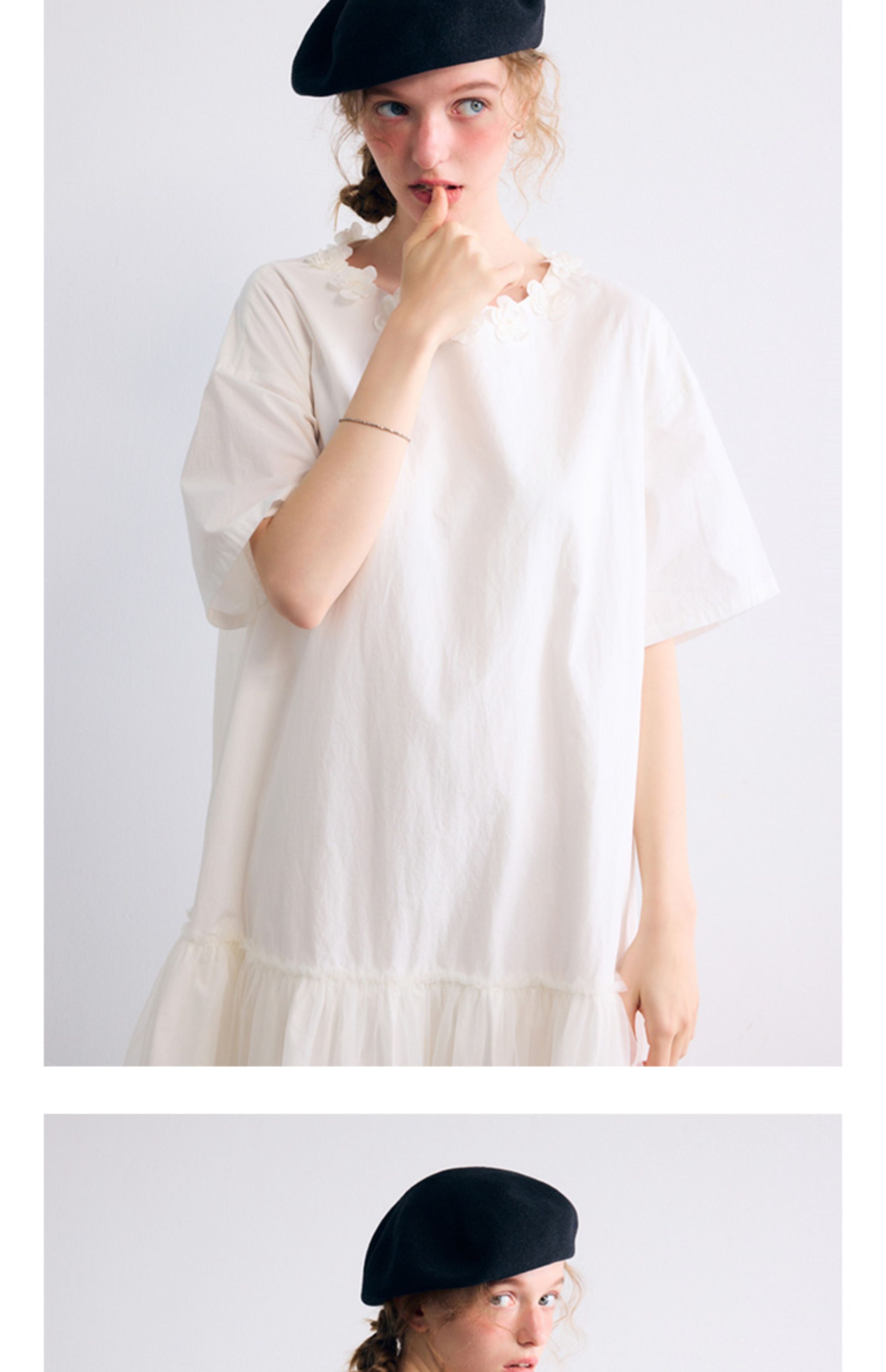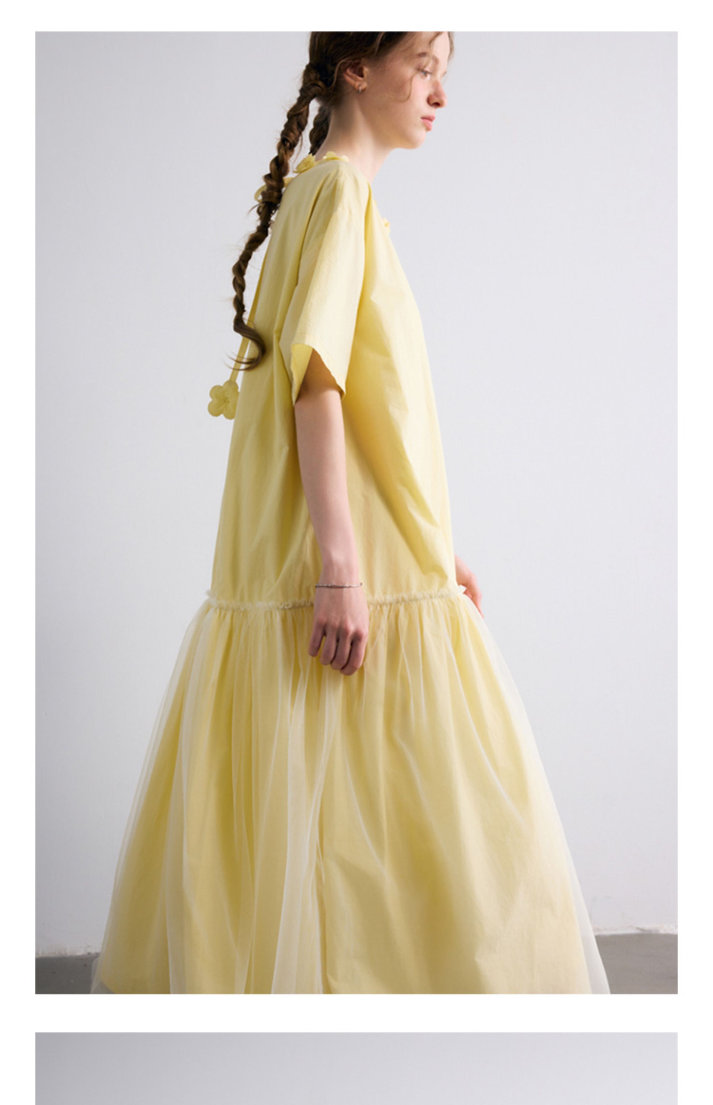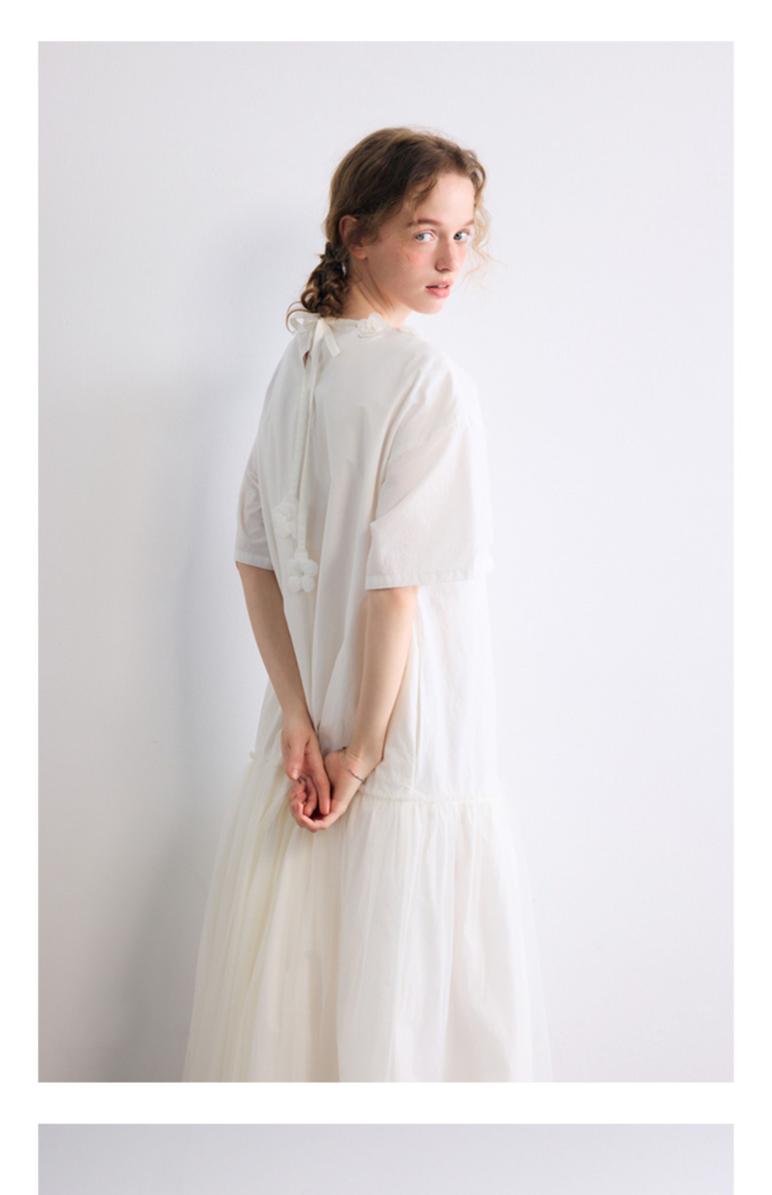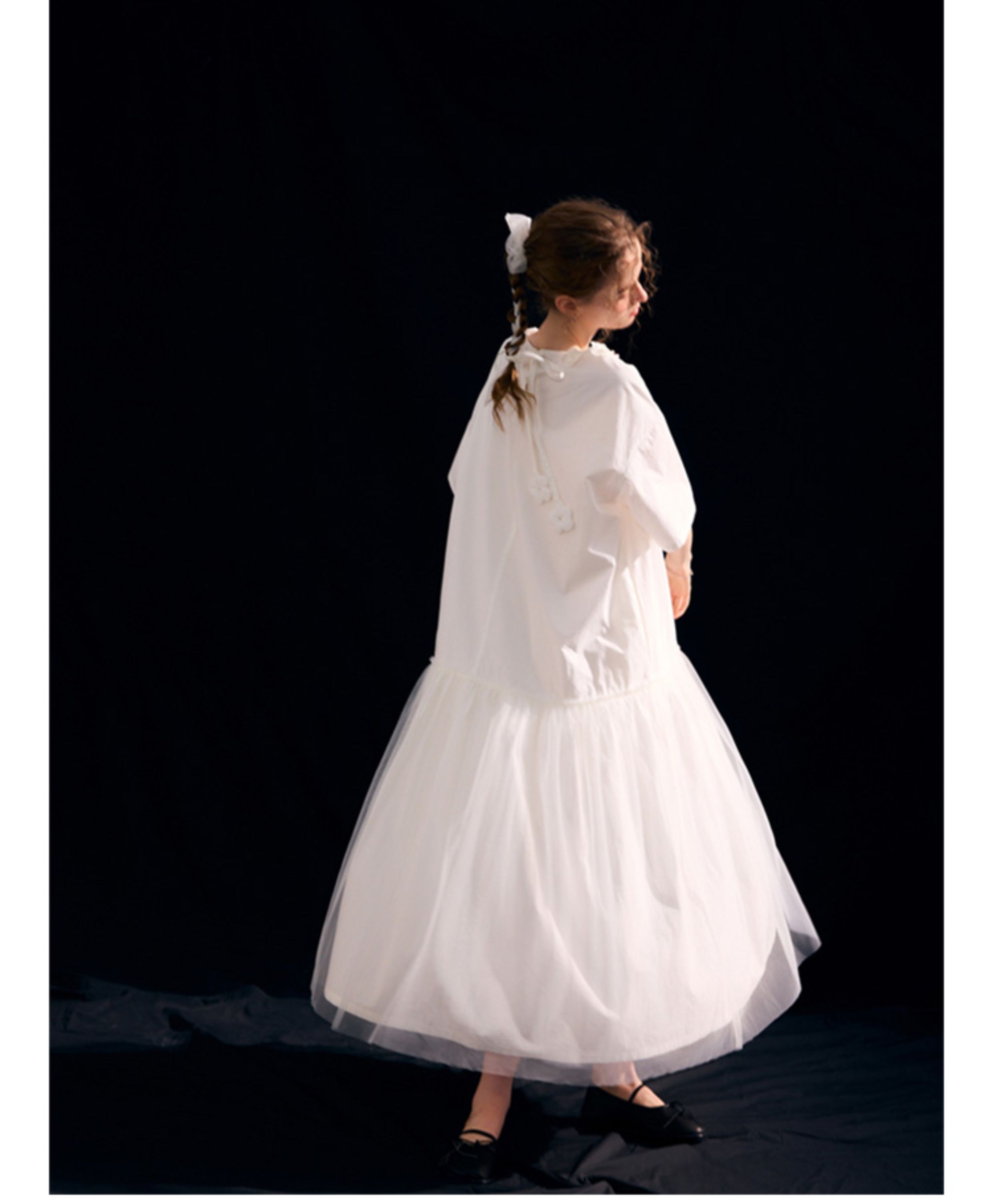 PIGGIE PIGGIE 100長絨棉曬布手工貼花拼接網紗連衣裙 PQ0105