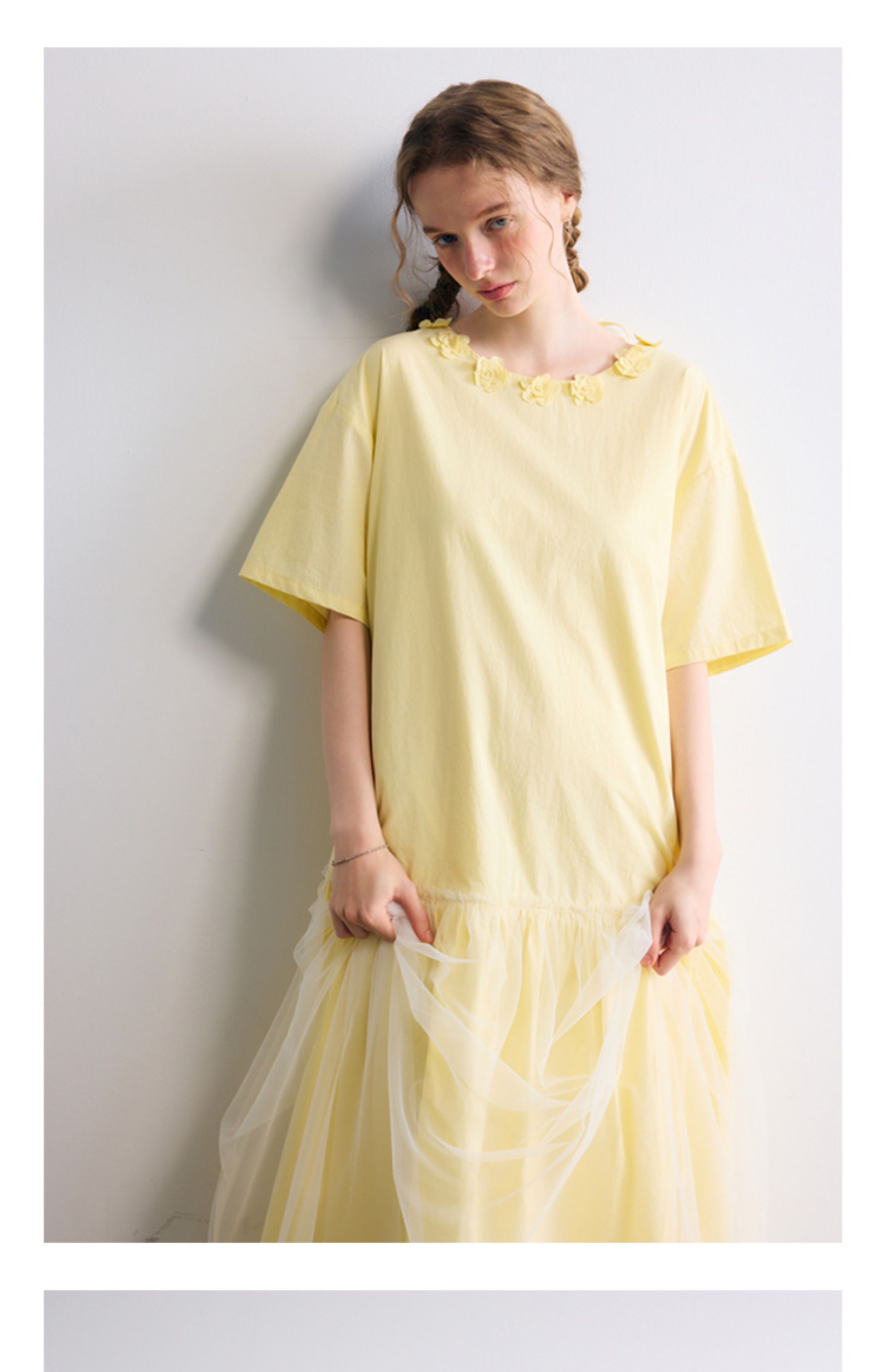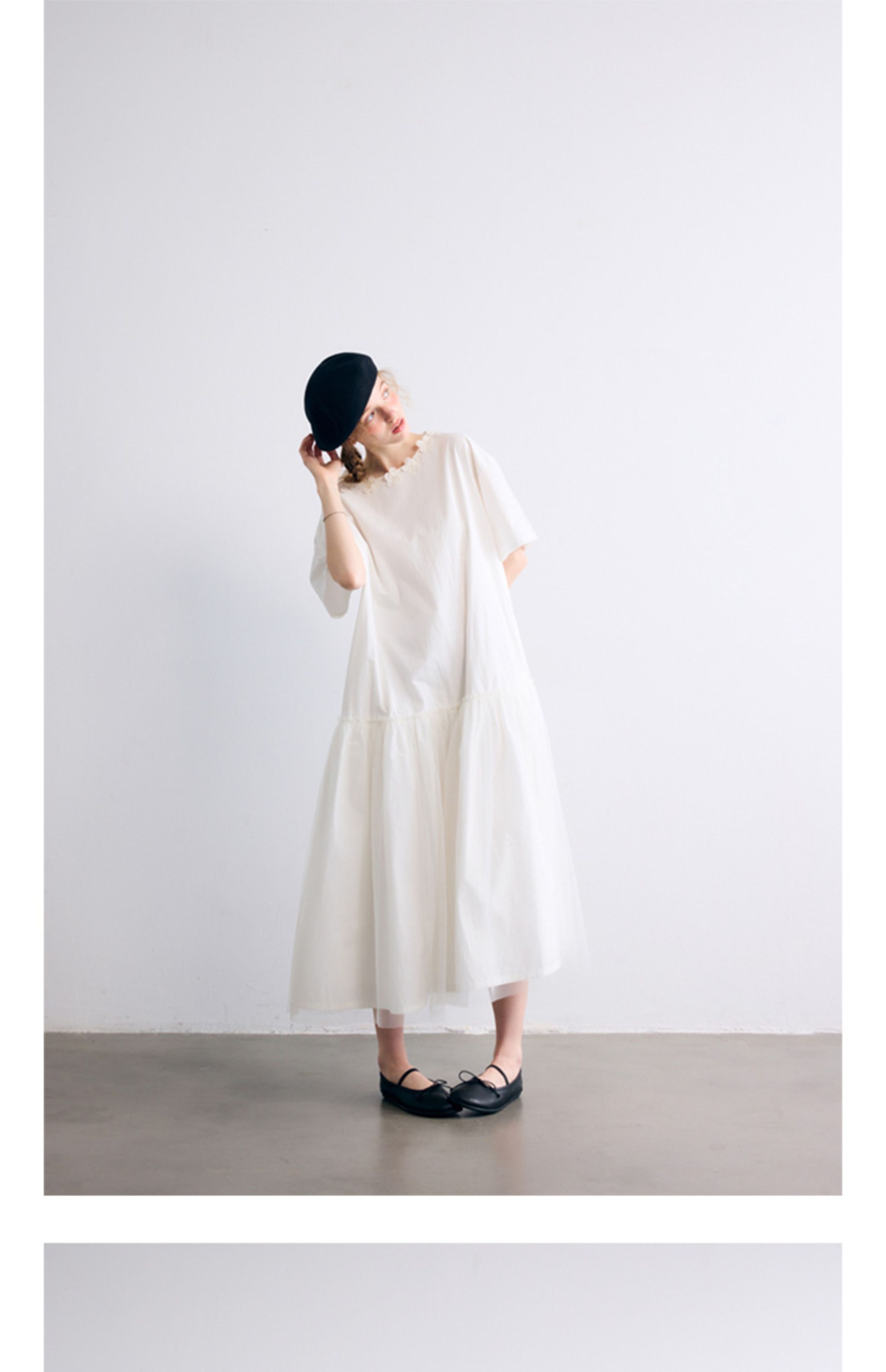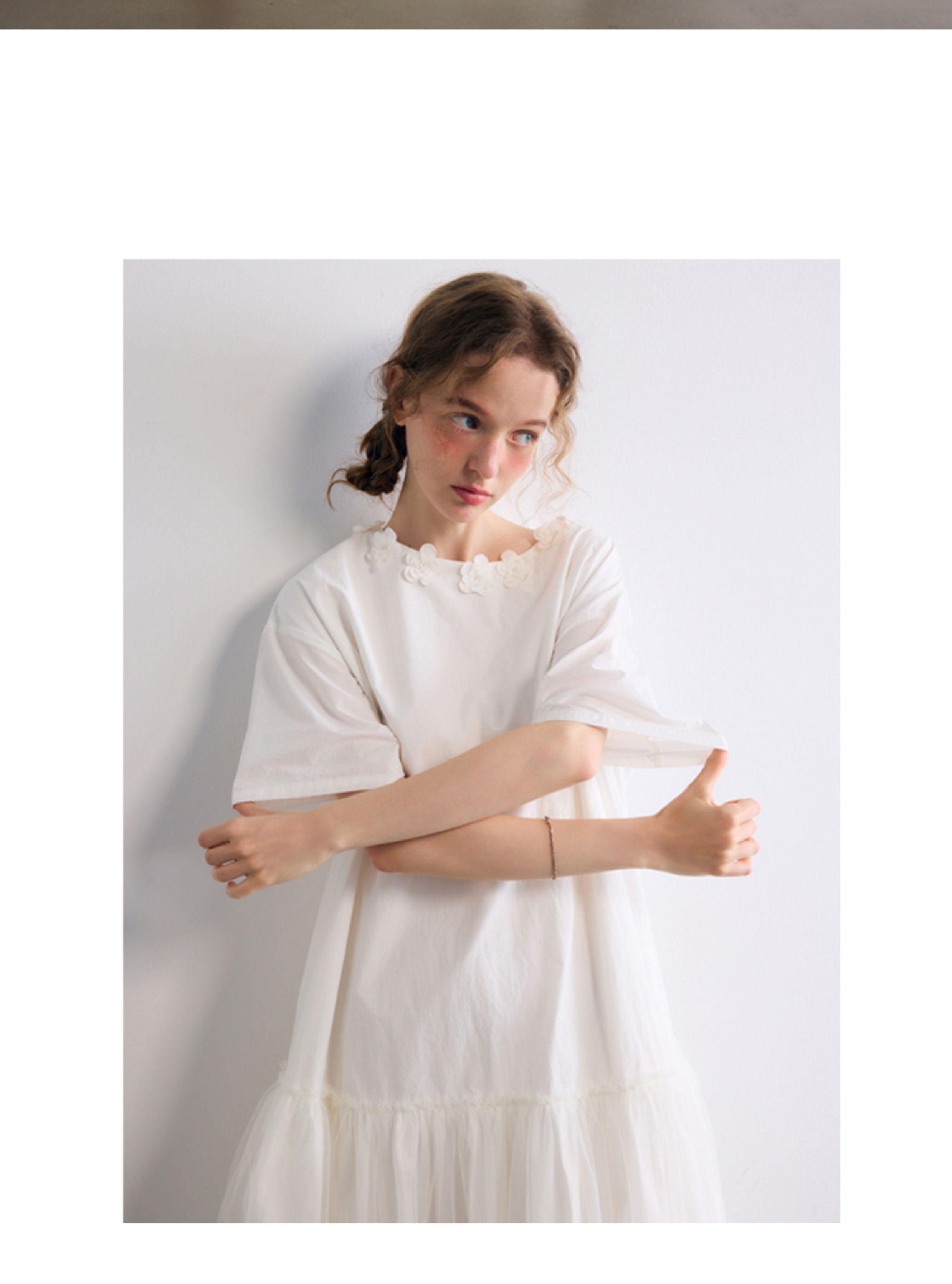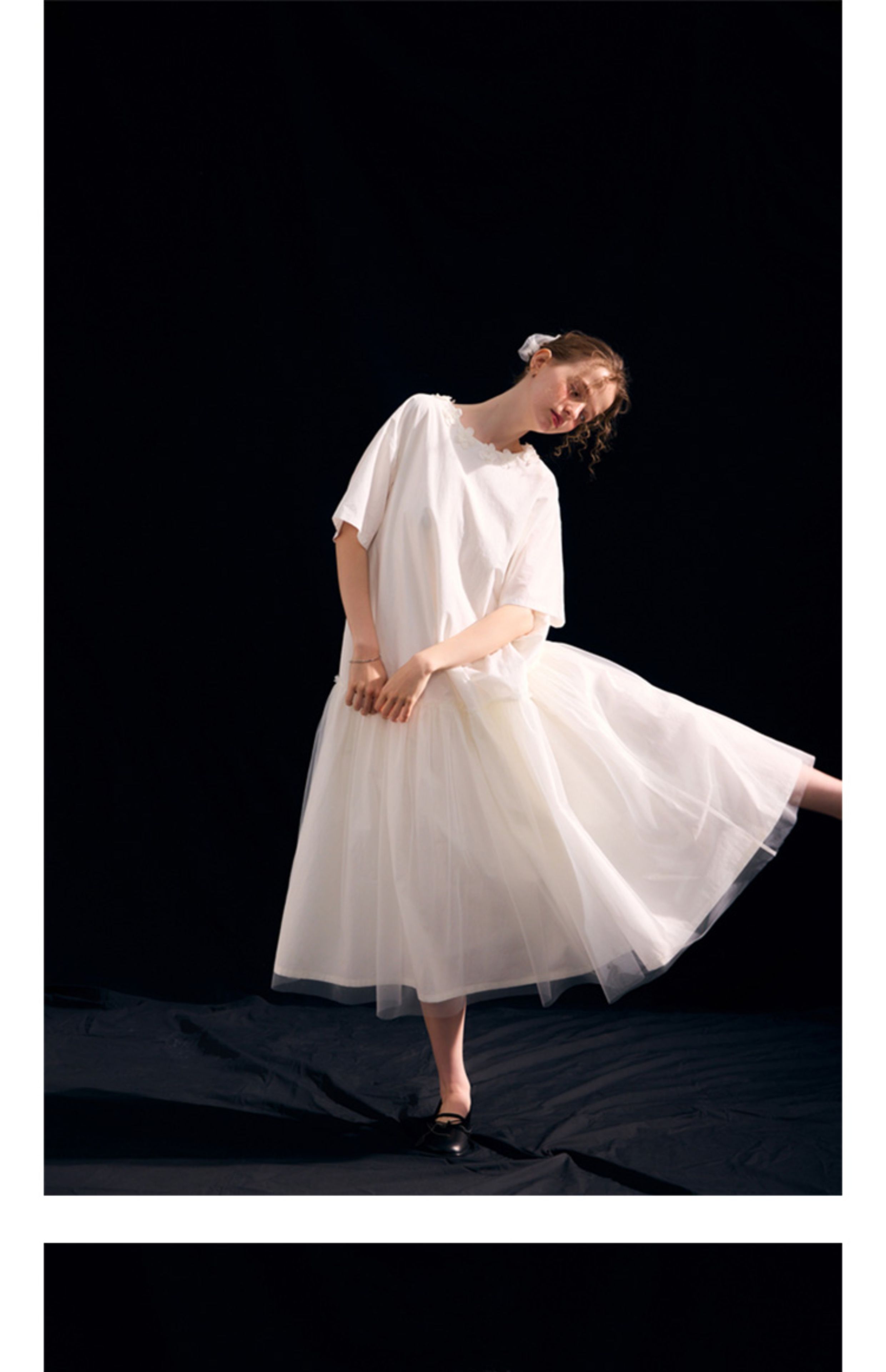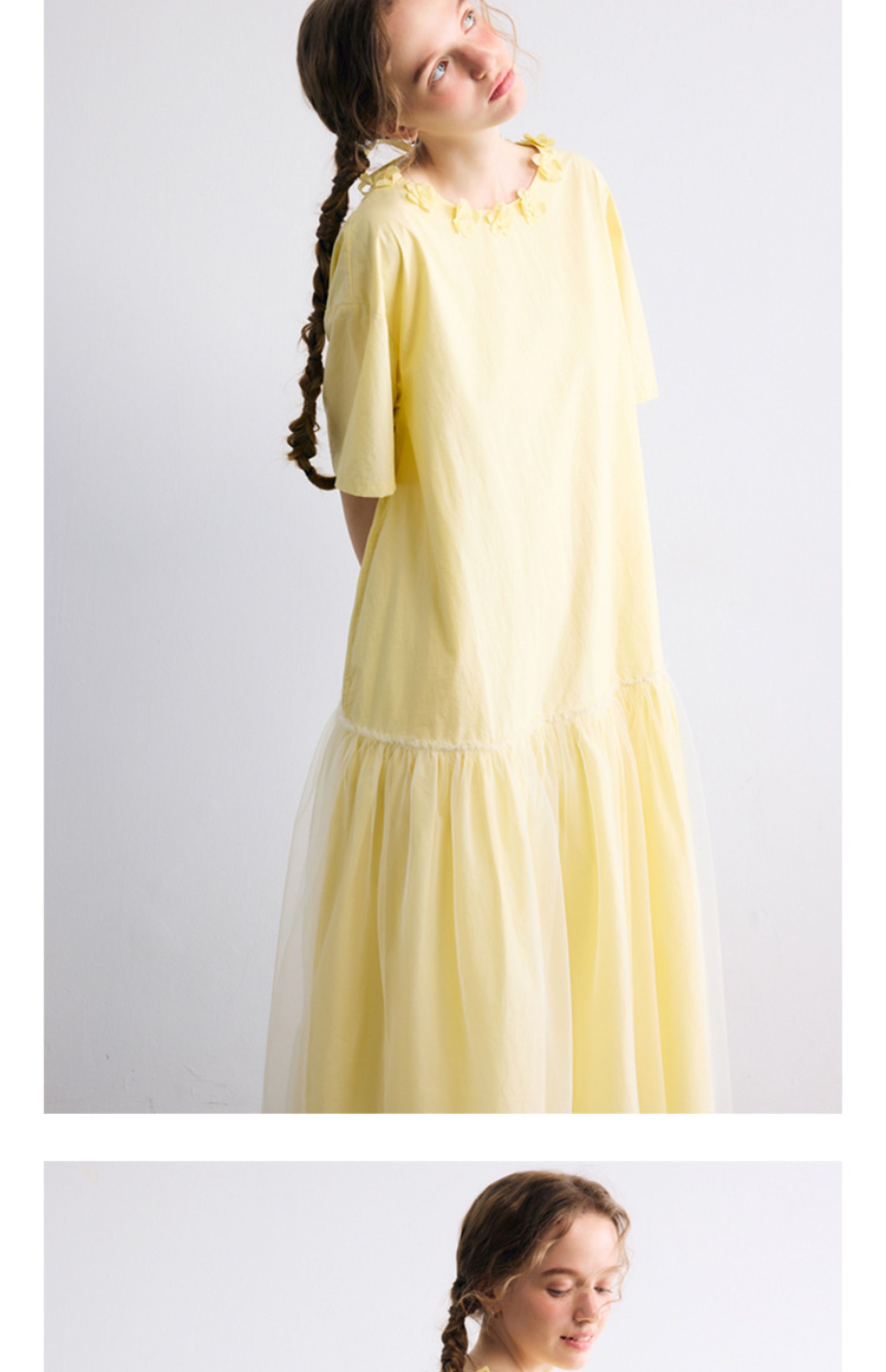 PIGGIE PIGGIE 100長絨棉曬布手工貼花拼接網紗連衣裙 PQ0105