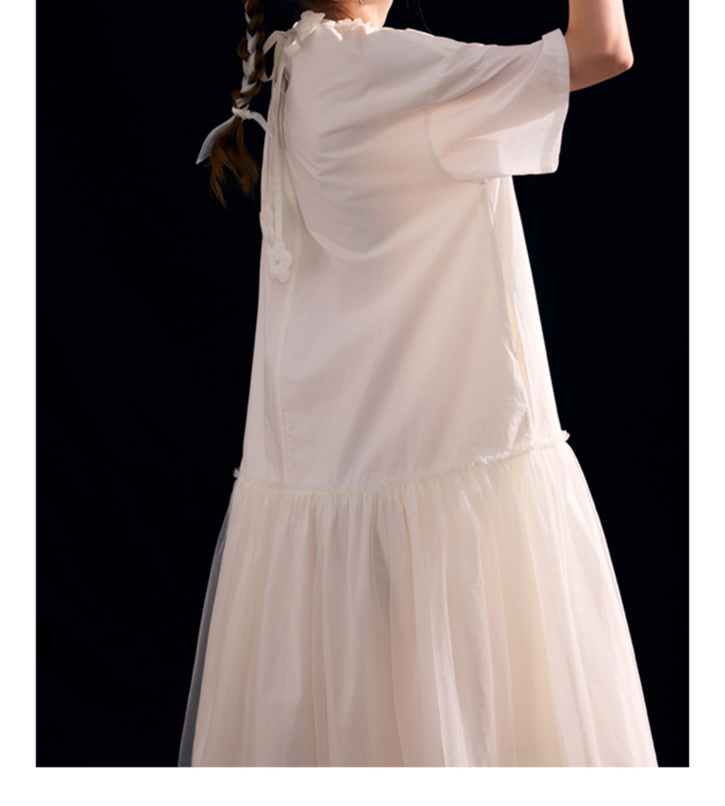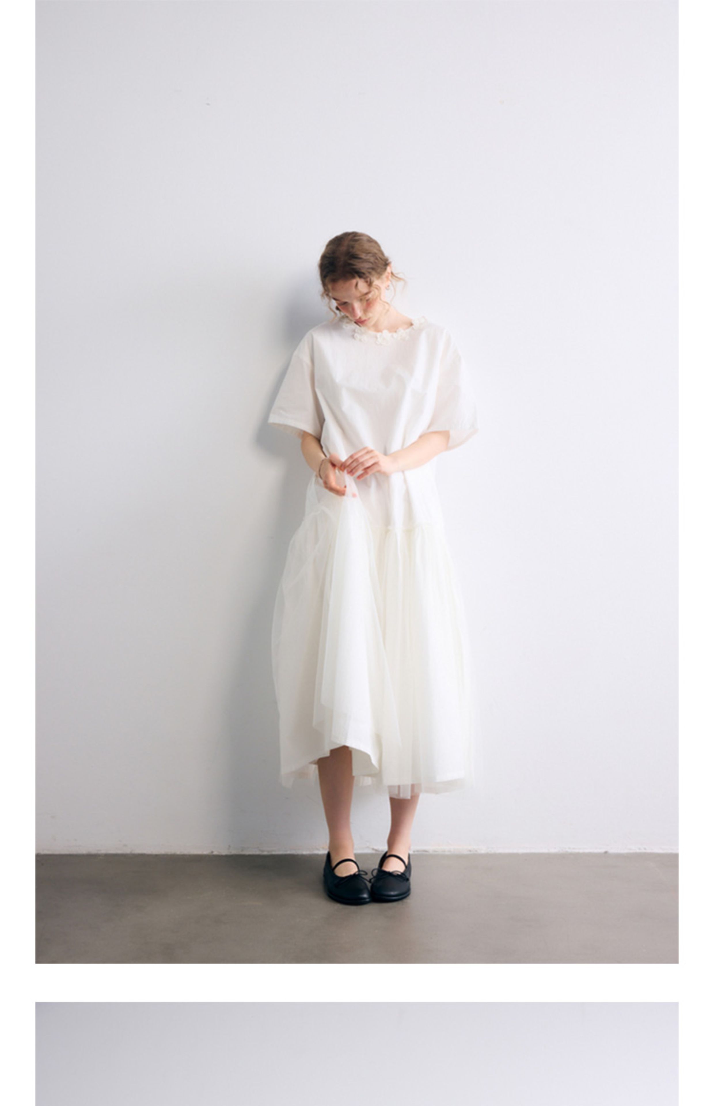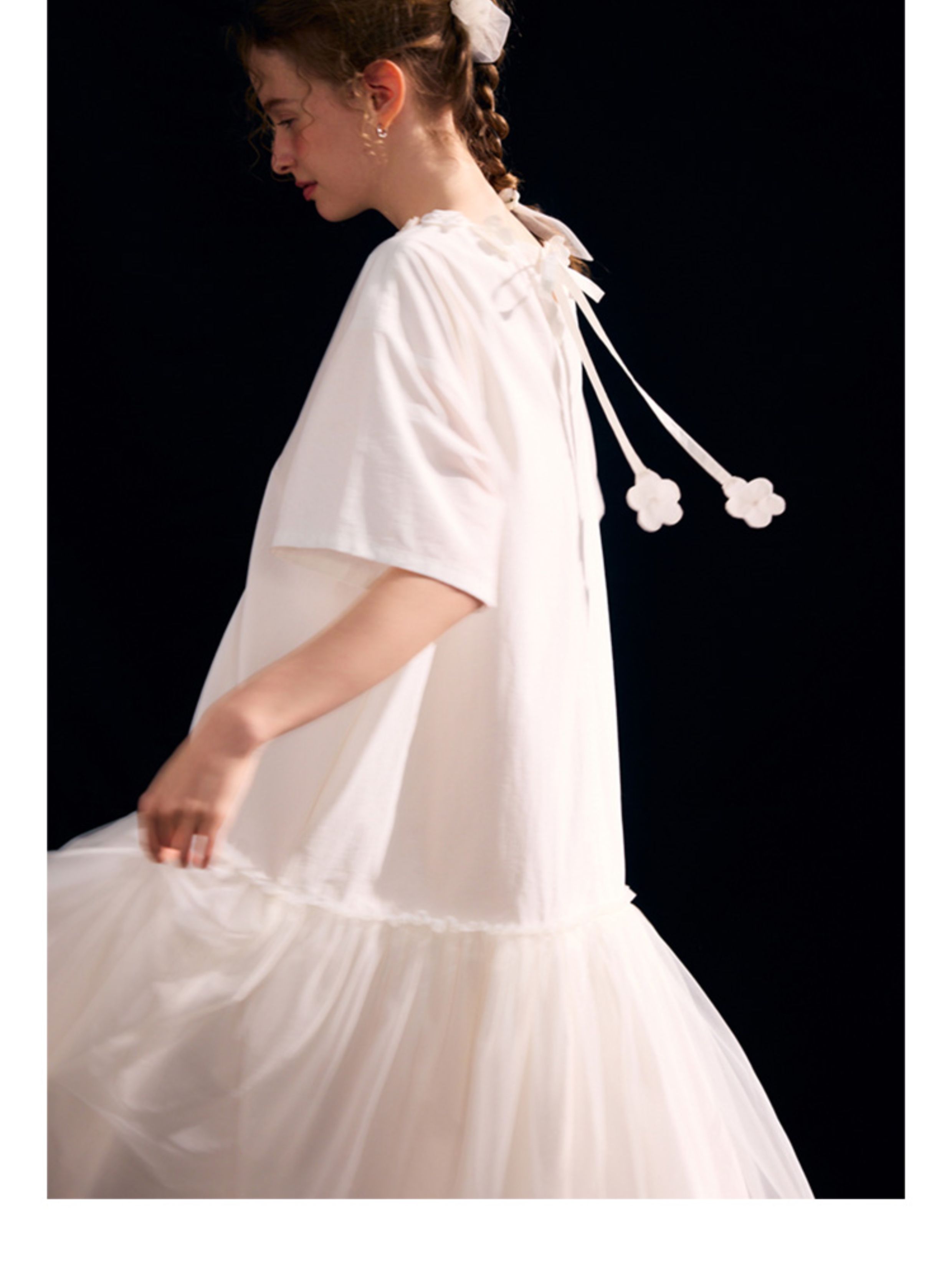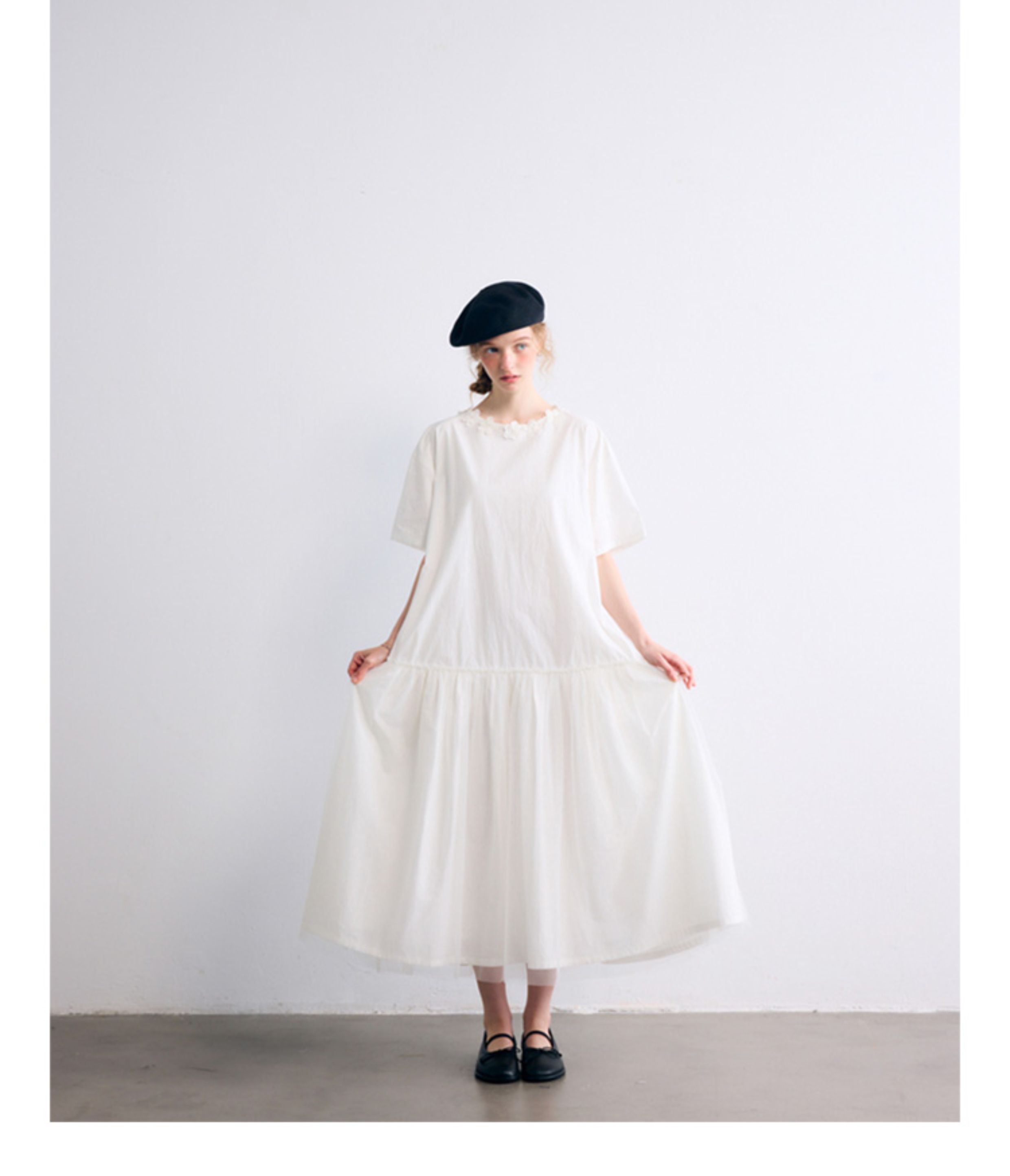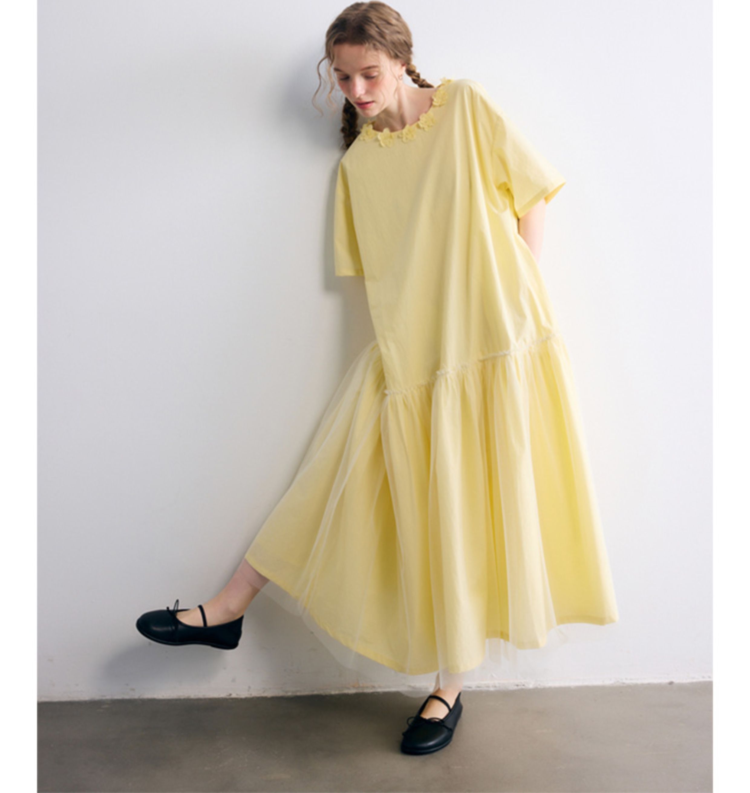 PIGGIE PIGGIE 100長絨棉曬布手工貼花拼接網紗連衣裙 PQ0105