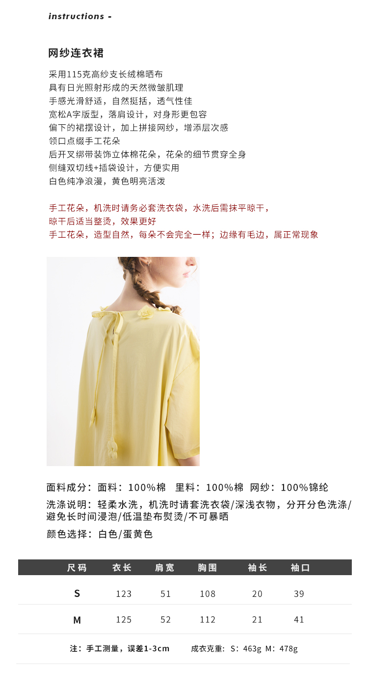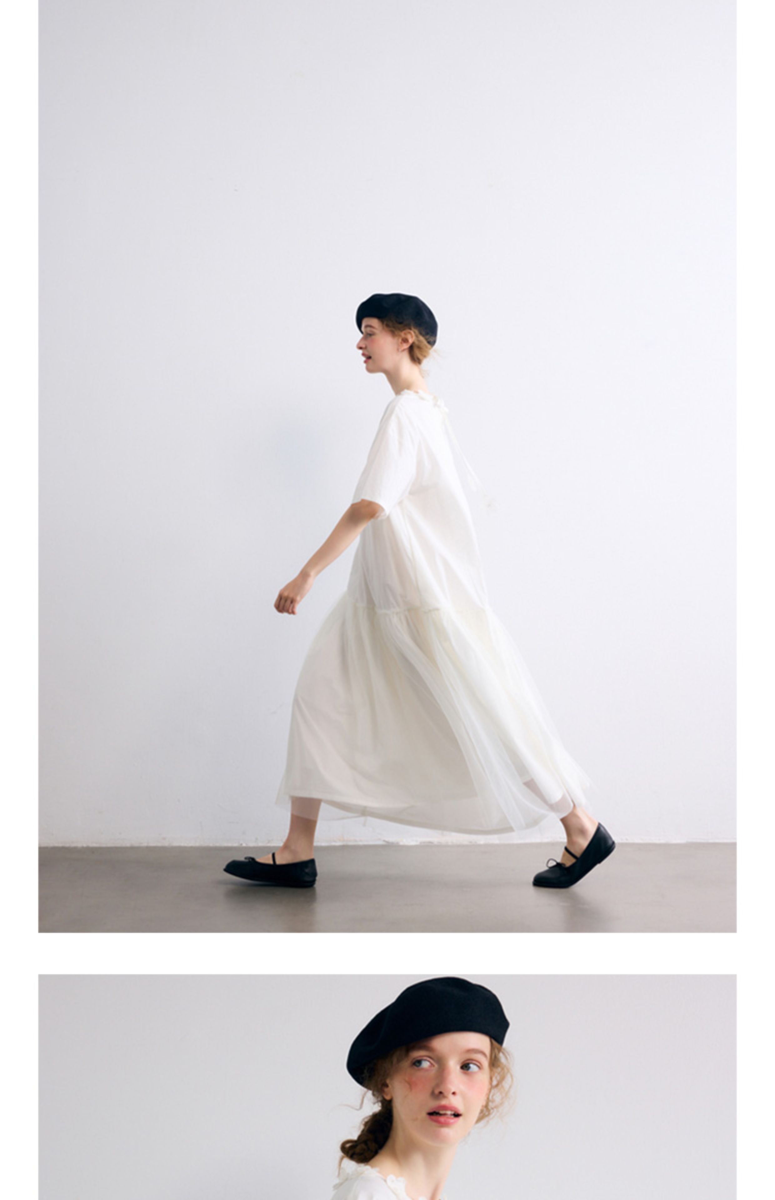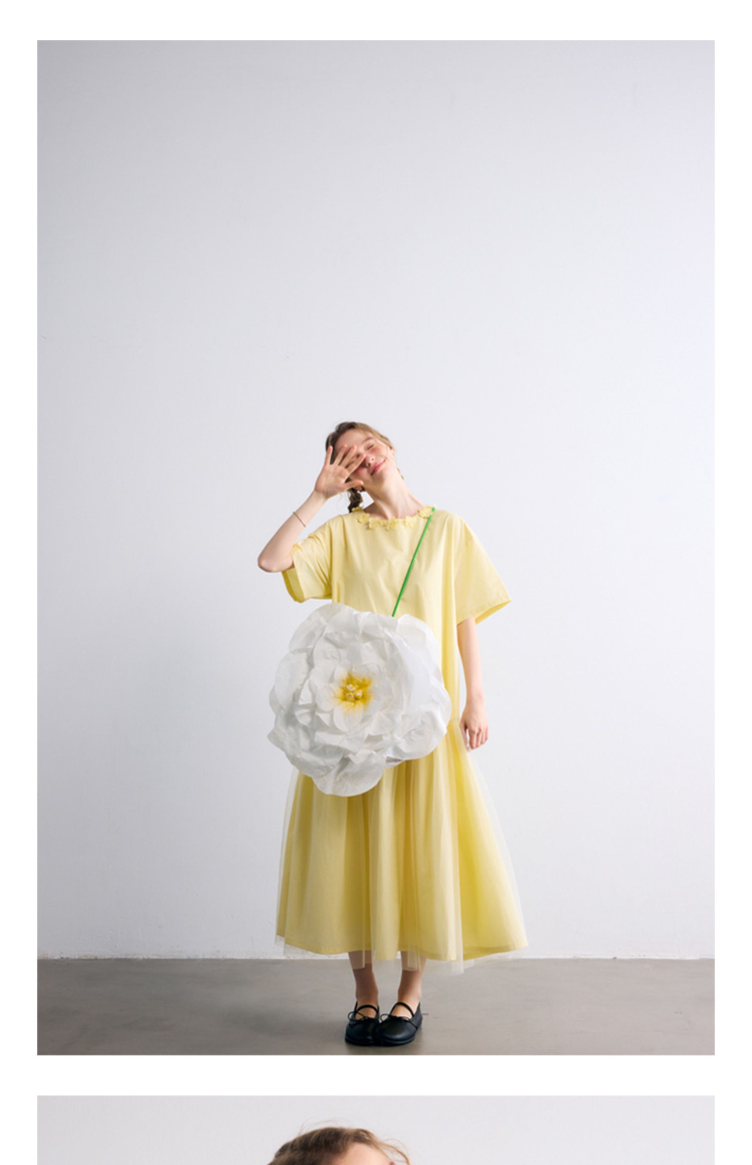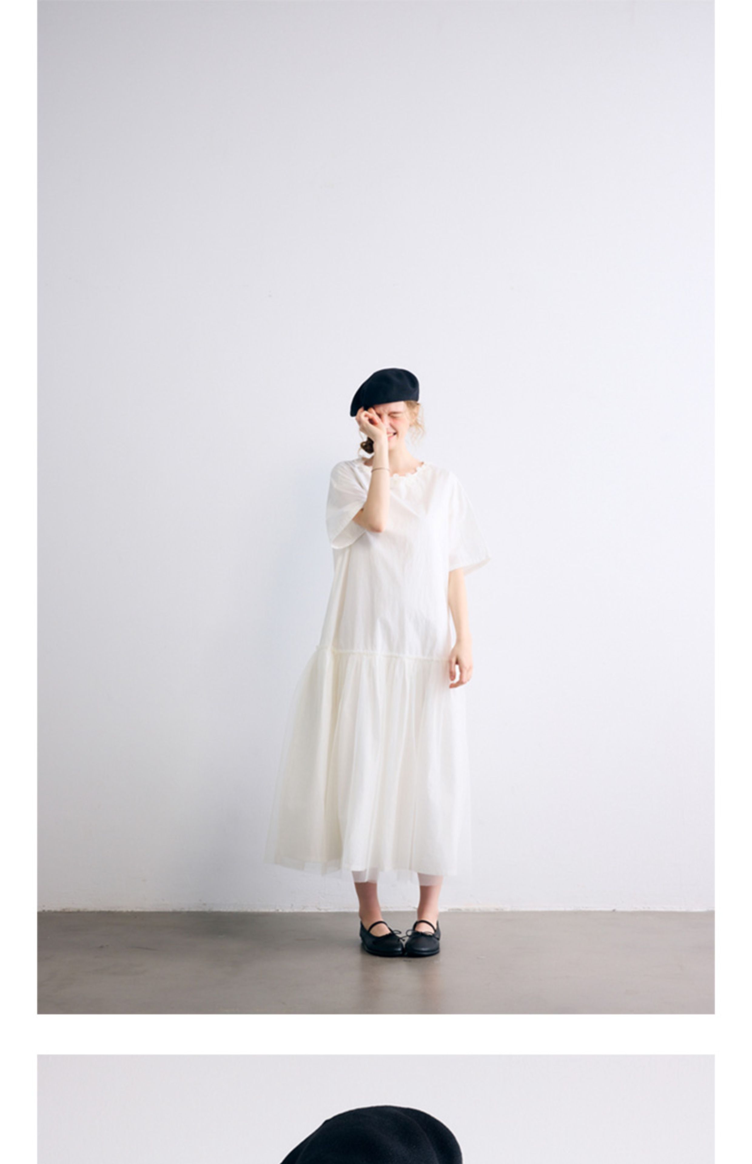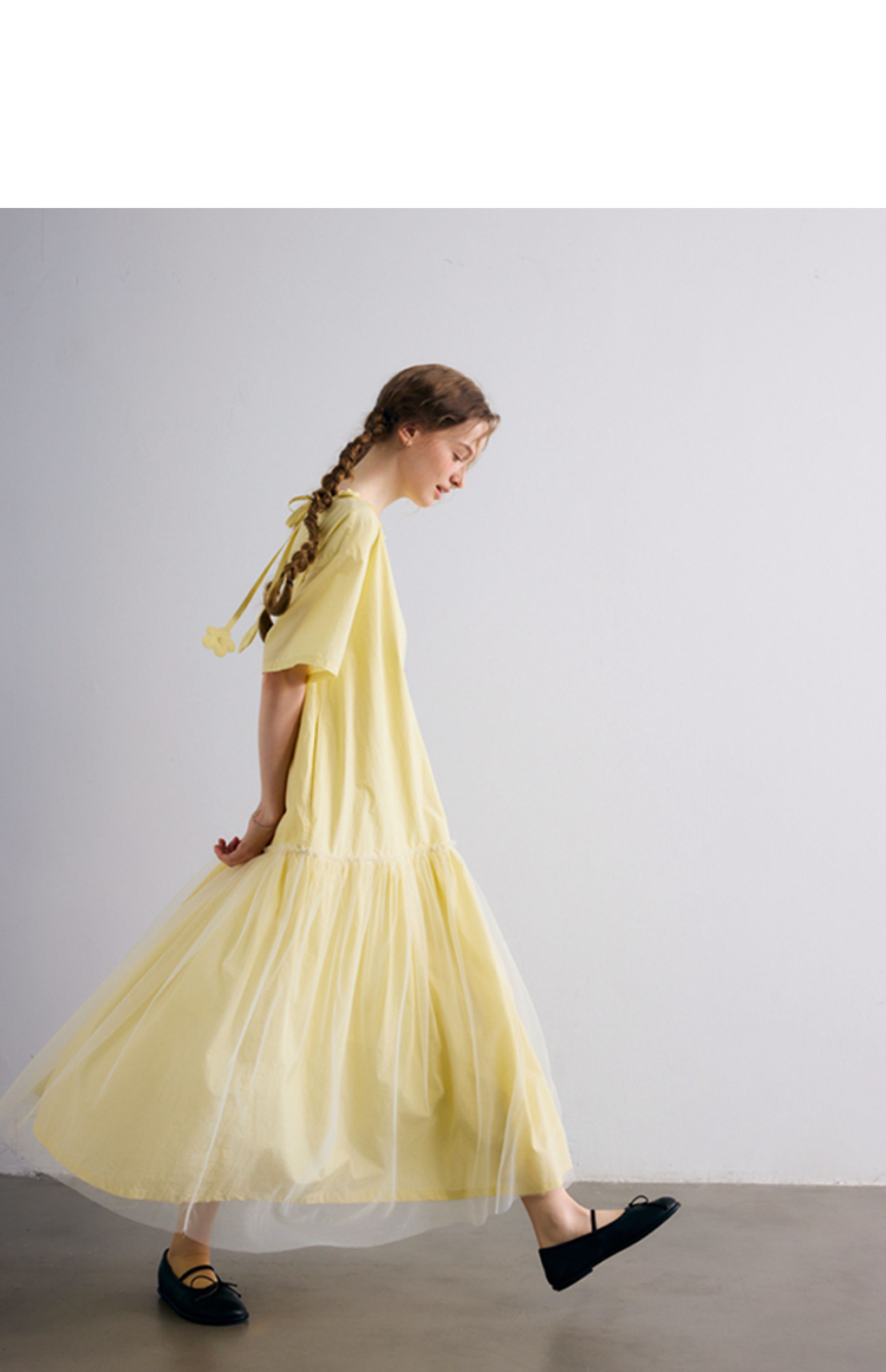 PIGGIE PIGGIE 100長絨棉曬布手工貼花拼接網紗連衣裙 PQ0105