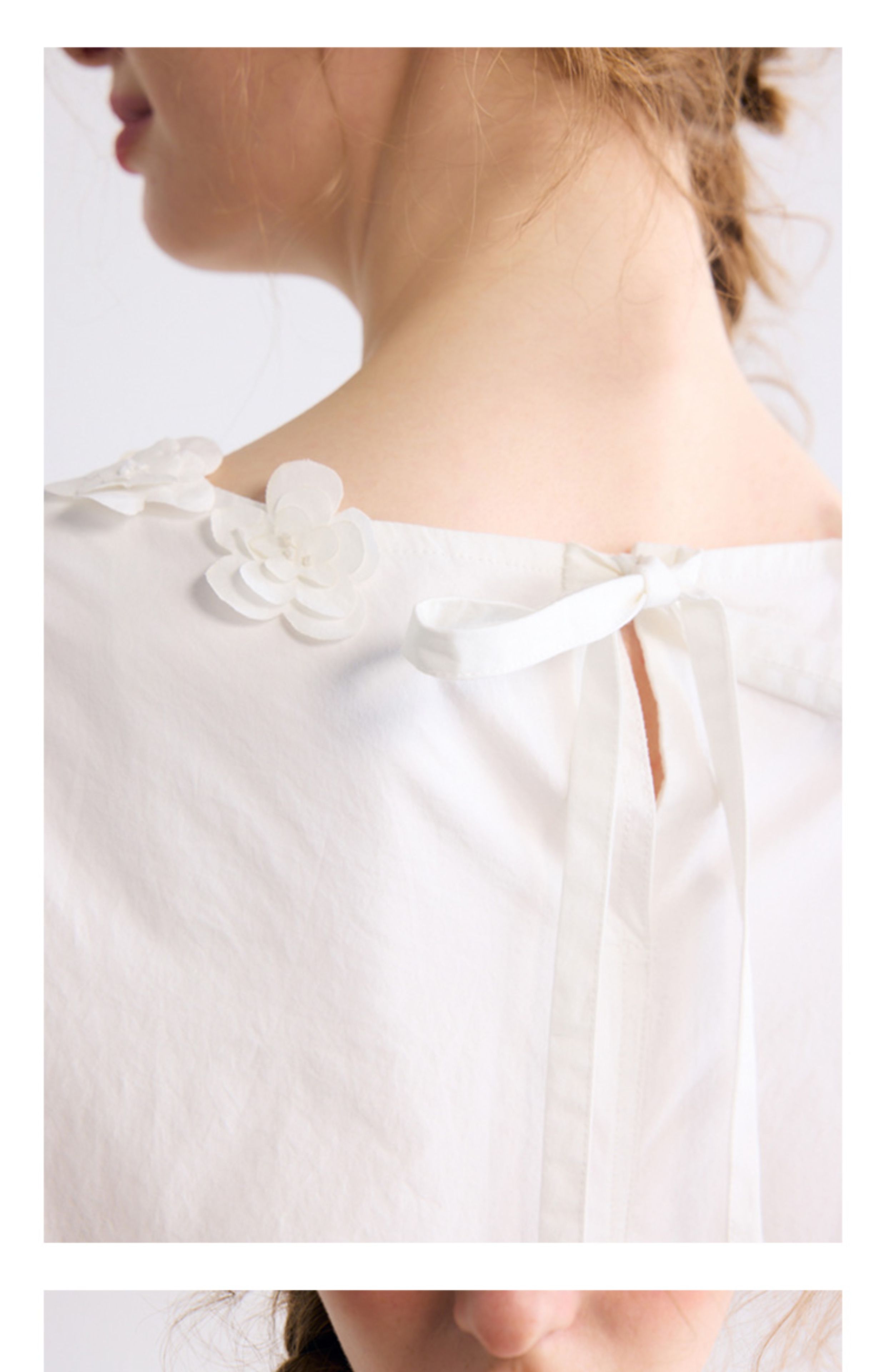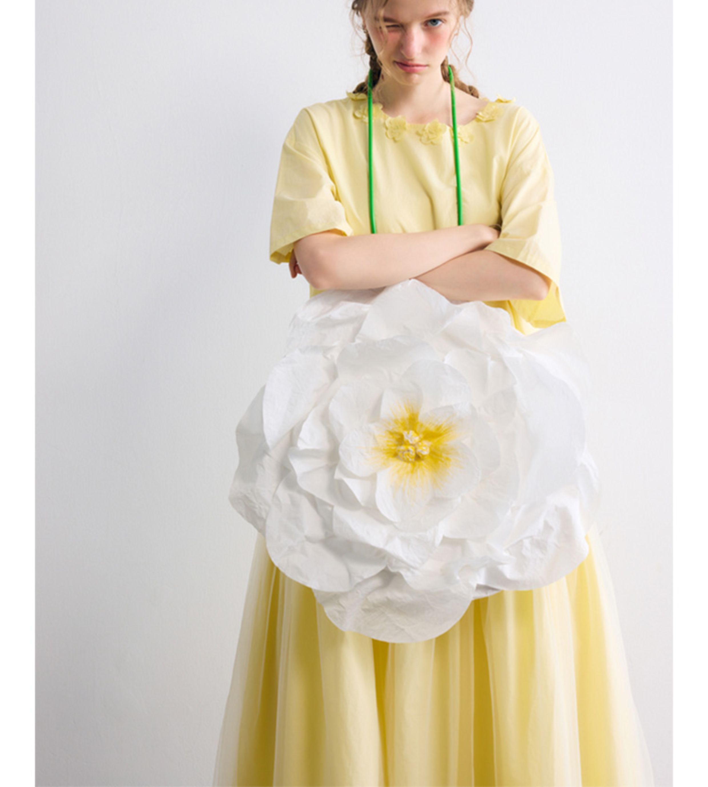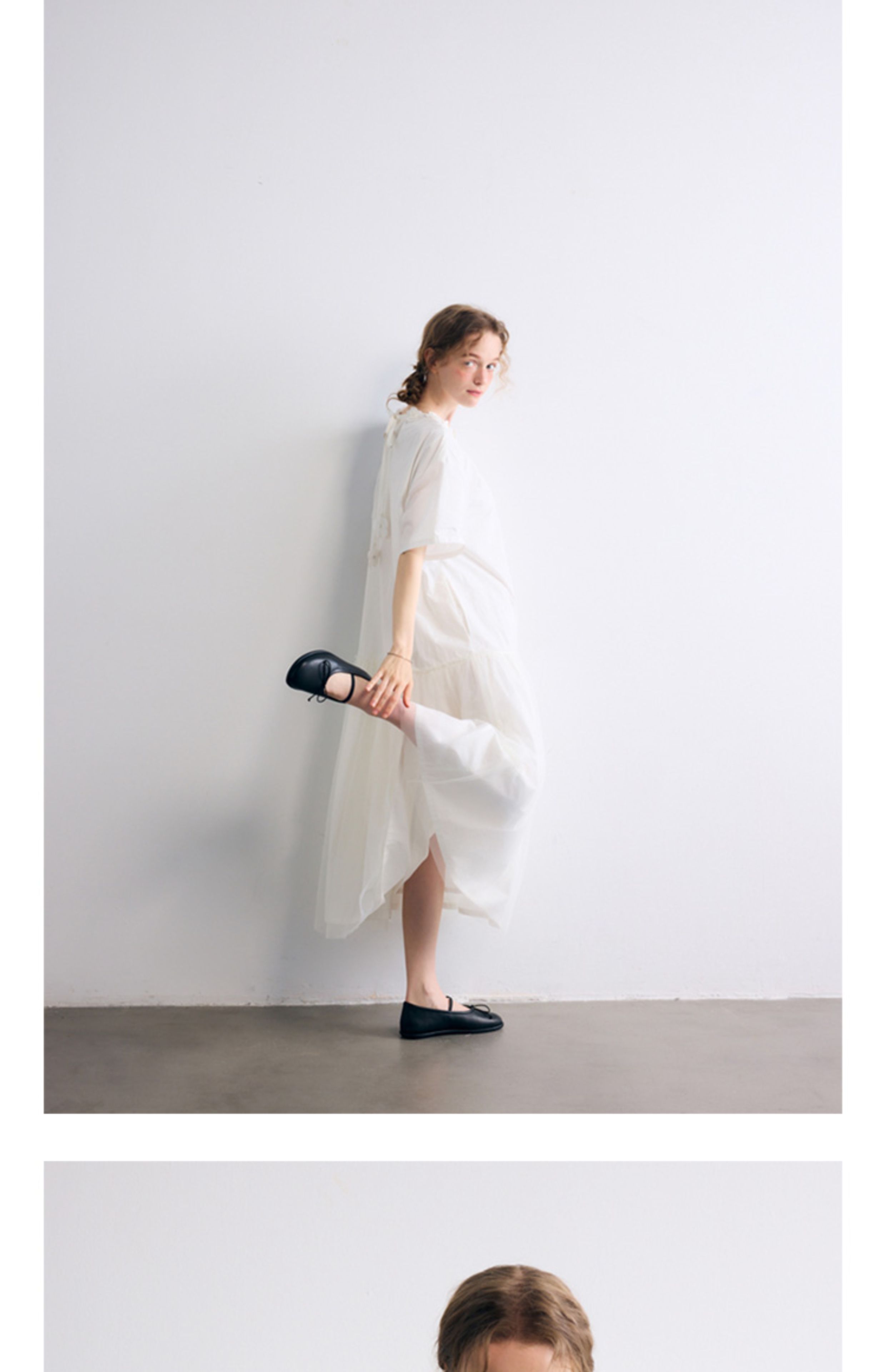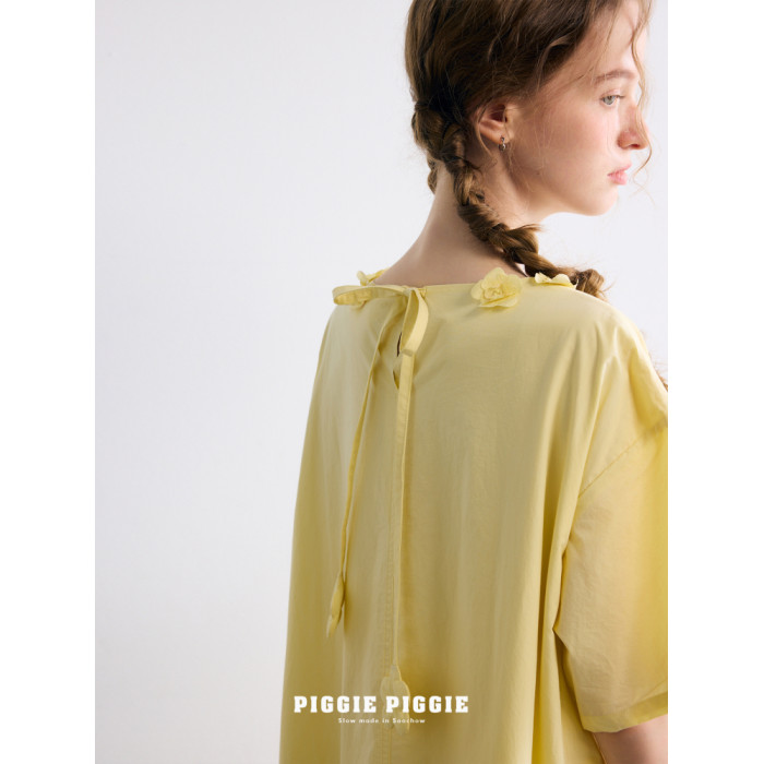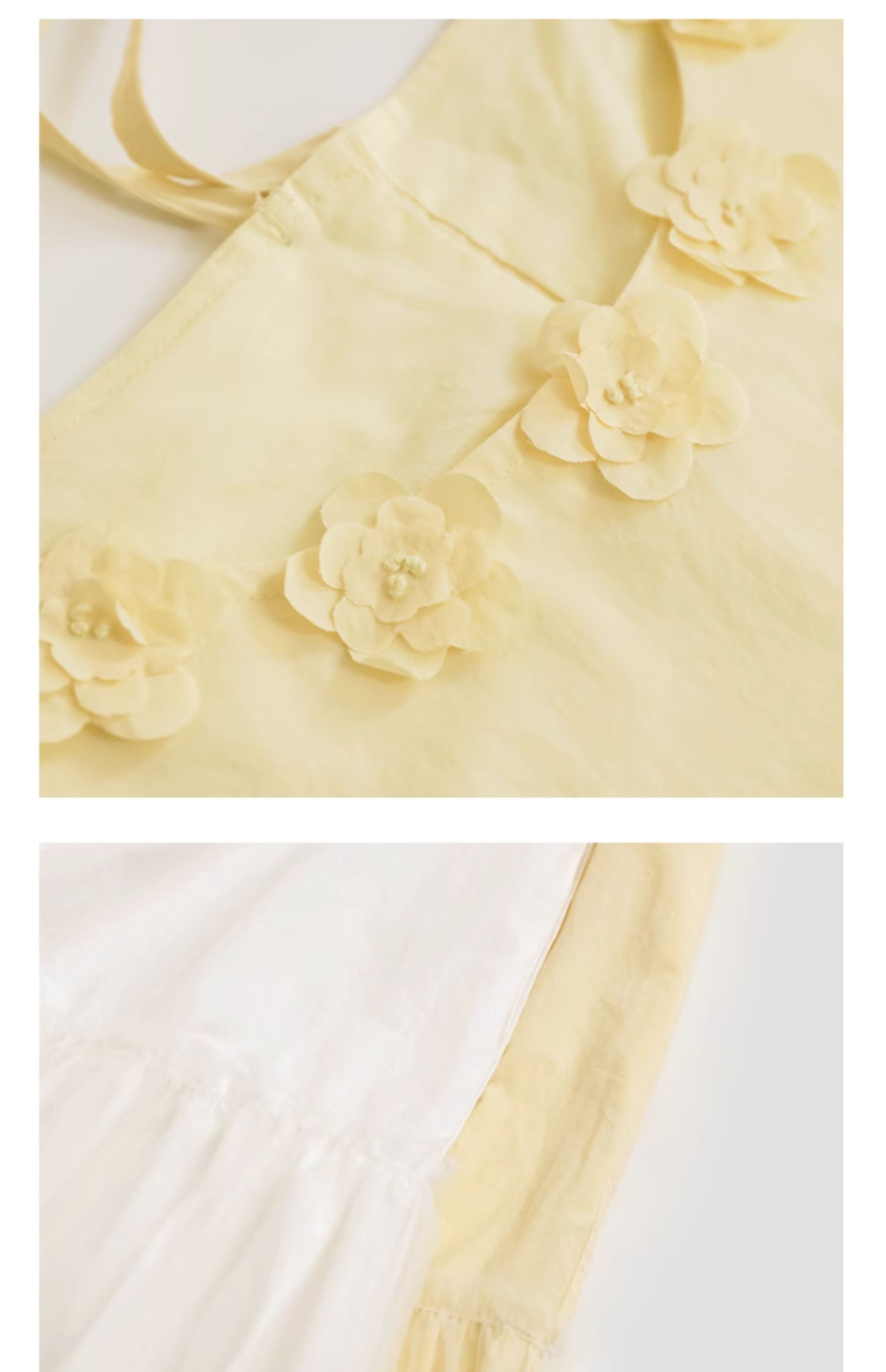 PIGGIE PIGGIE 100長絨棉曬布手工貼花拼接網紗連衣裙 PQ0105