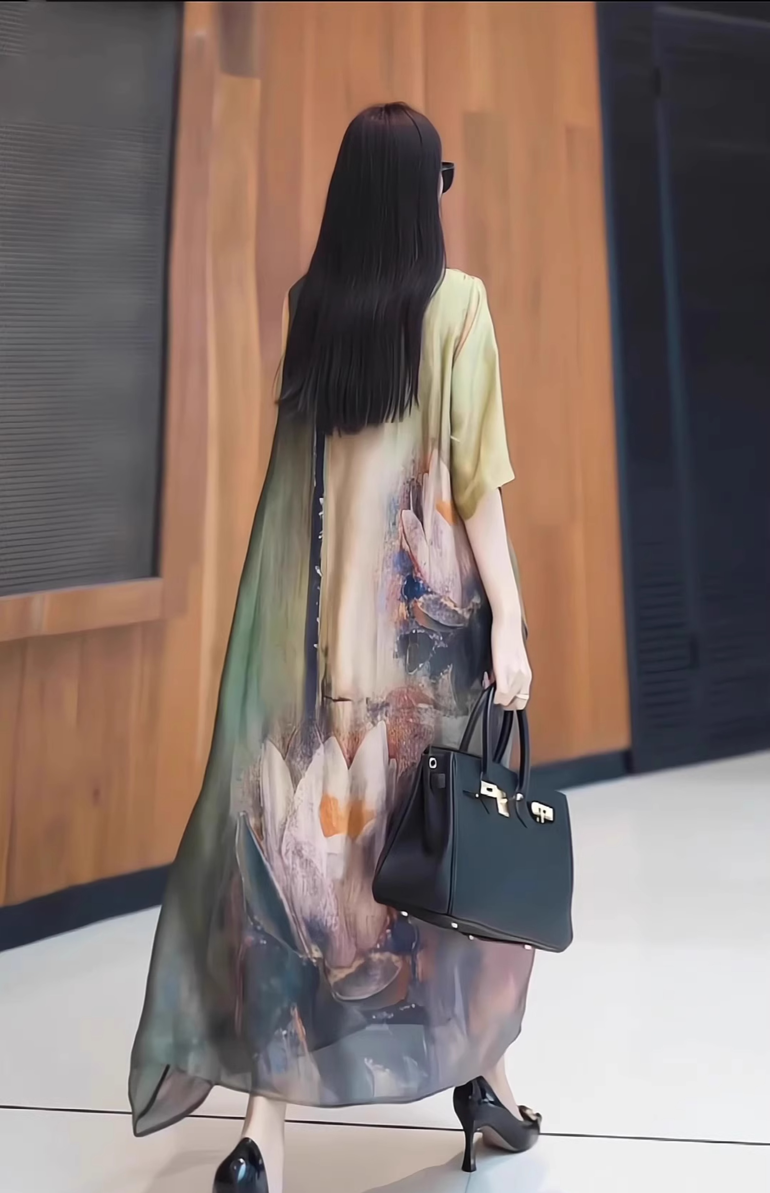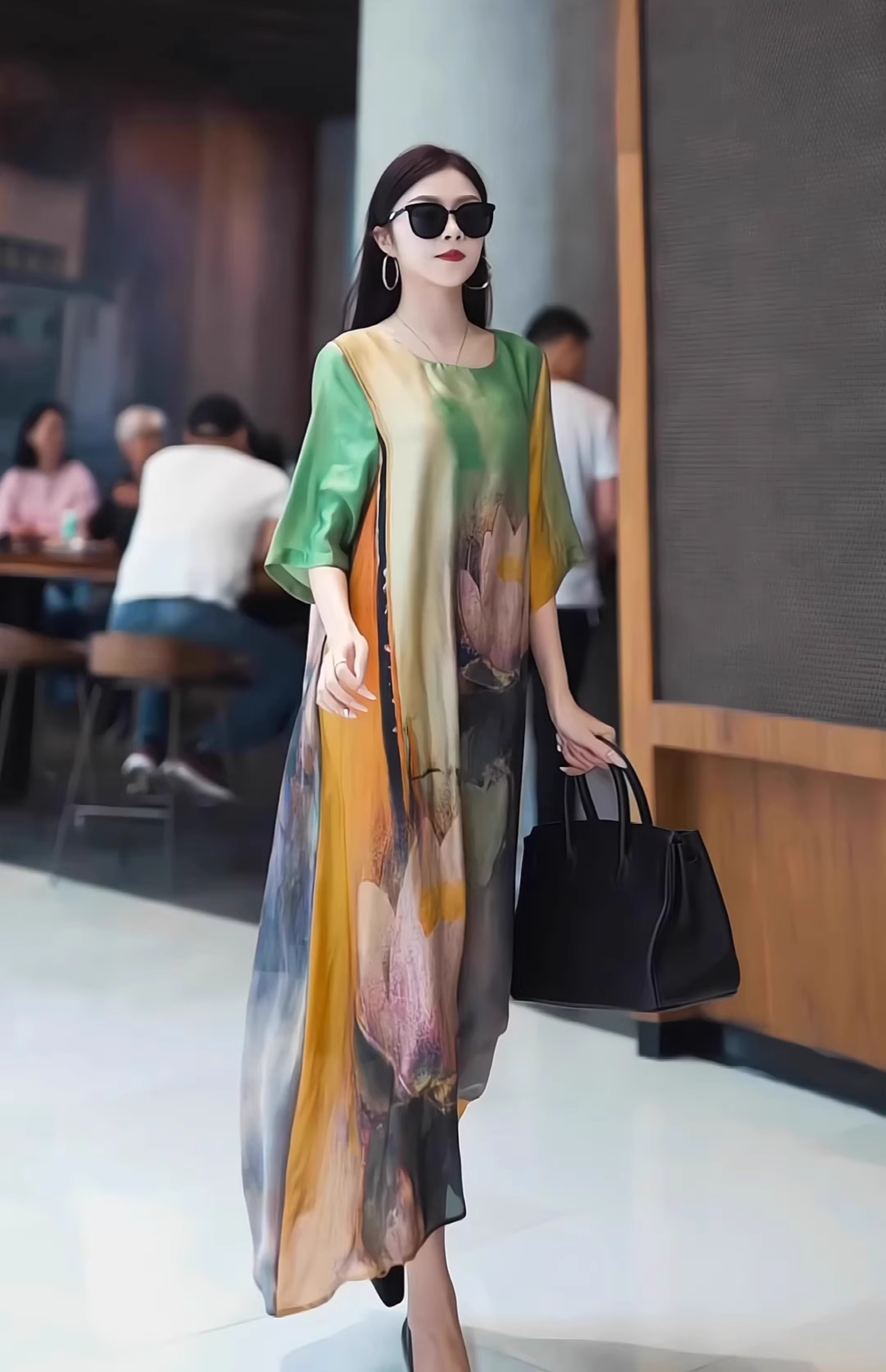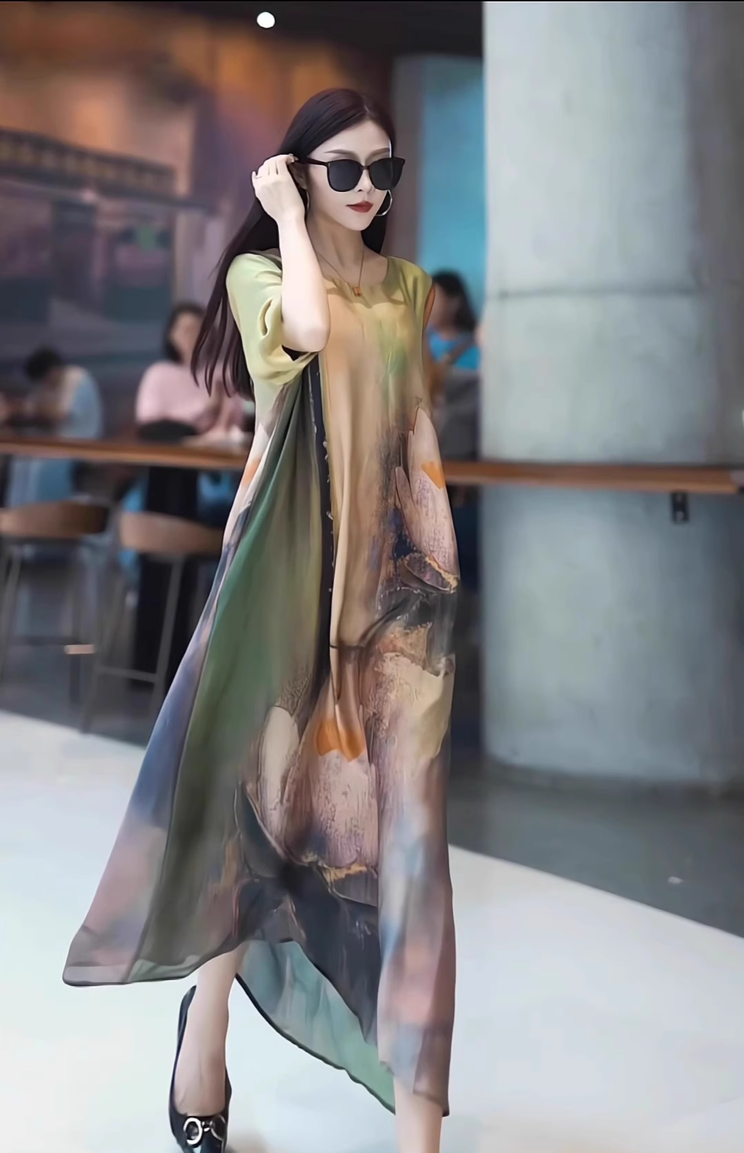 大牌復古真絲印花連衣裙女2025年夏季新款高級感寬松顯瘦氣質長裙