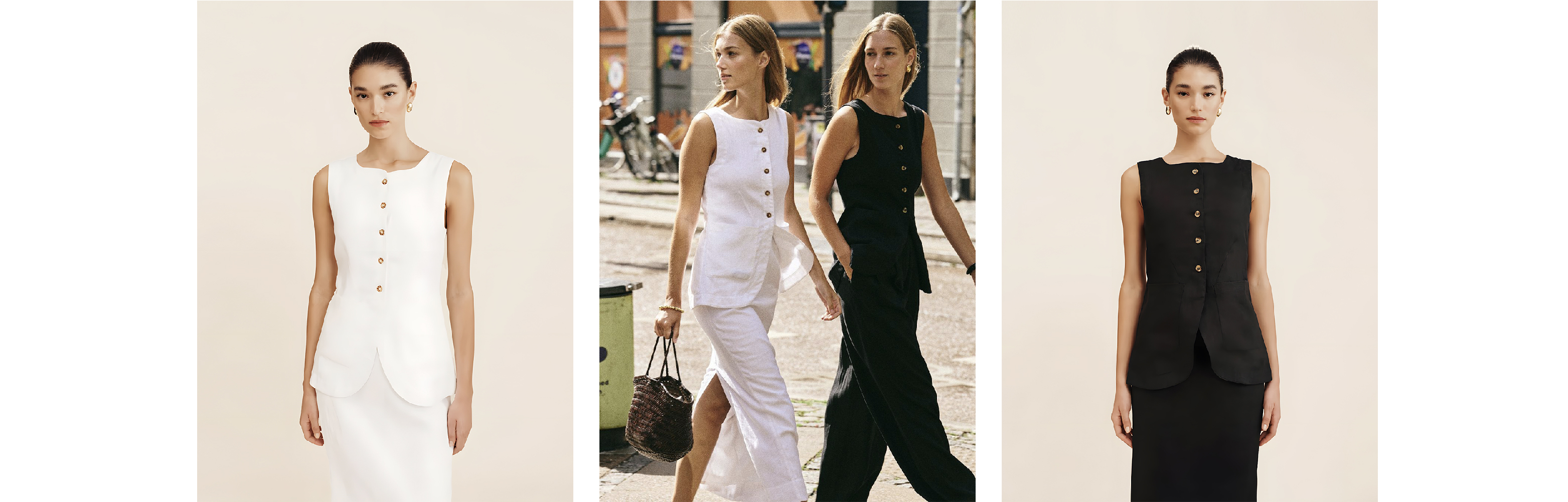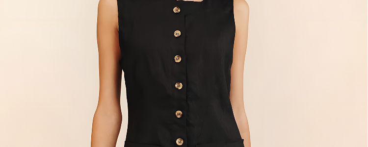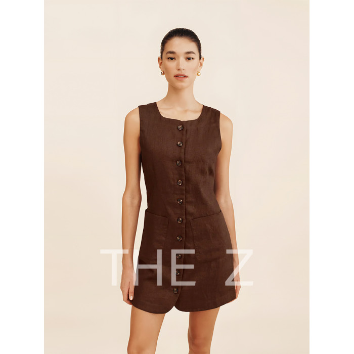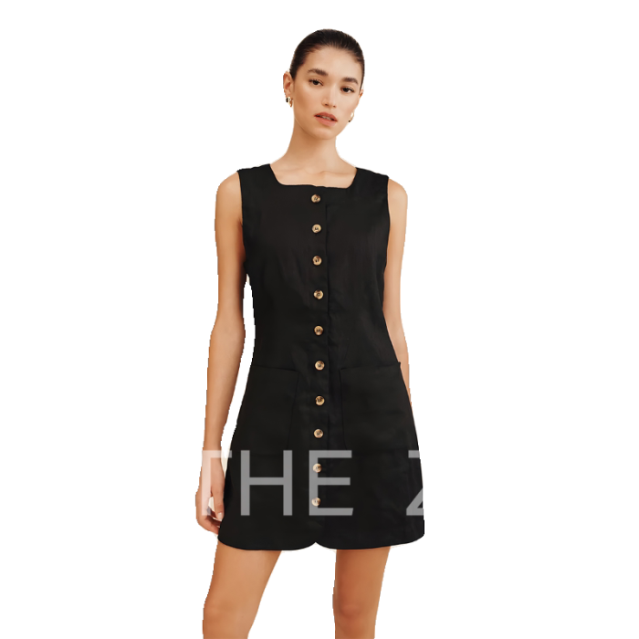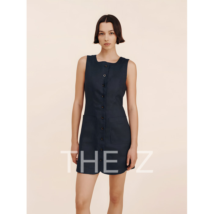 POSSE同款|100%亞麻無袖法式文藝風松弛感黑色白色連衣裙女款夏季