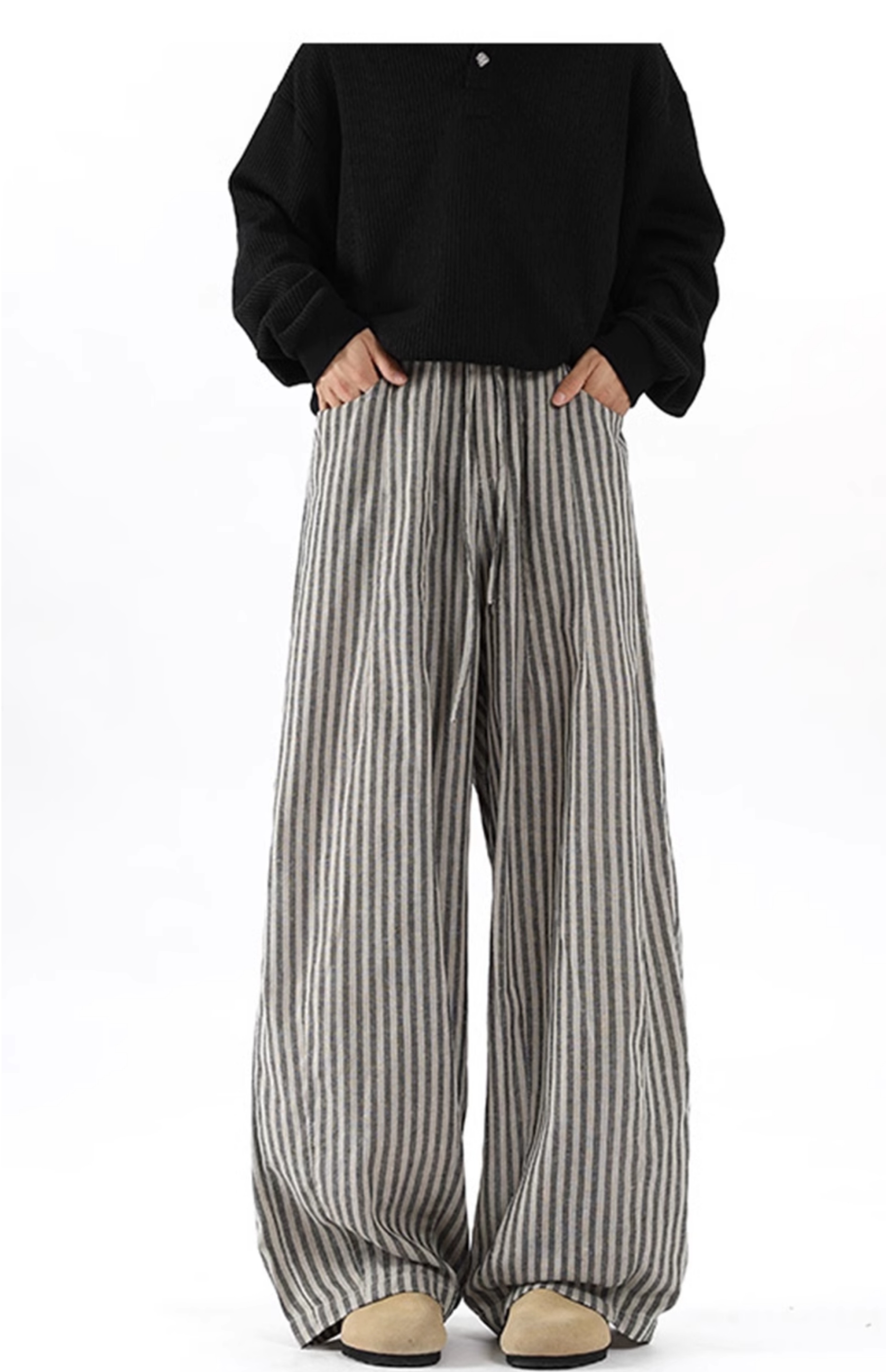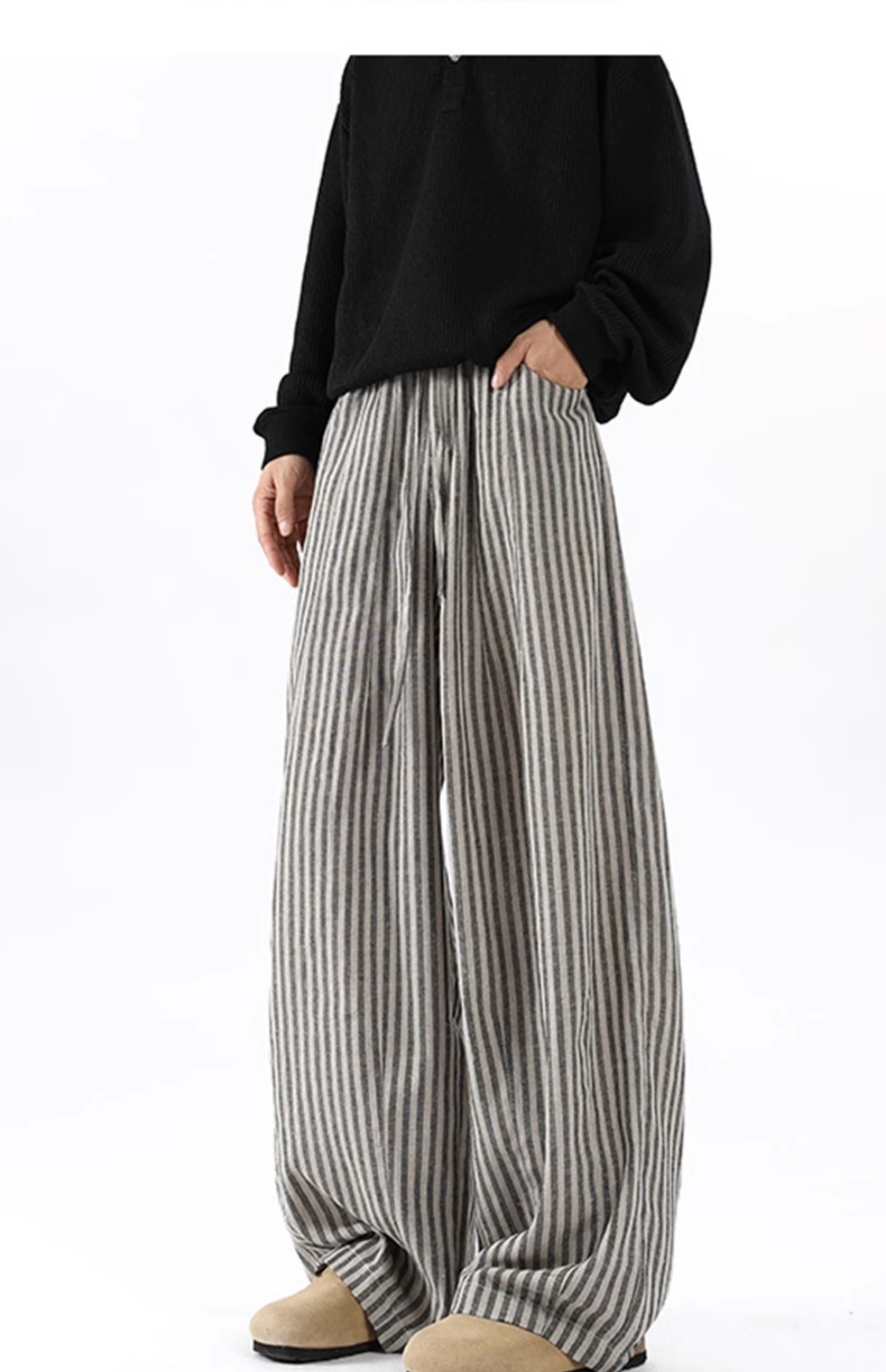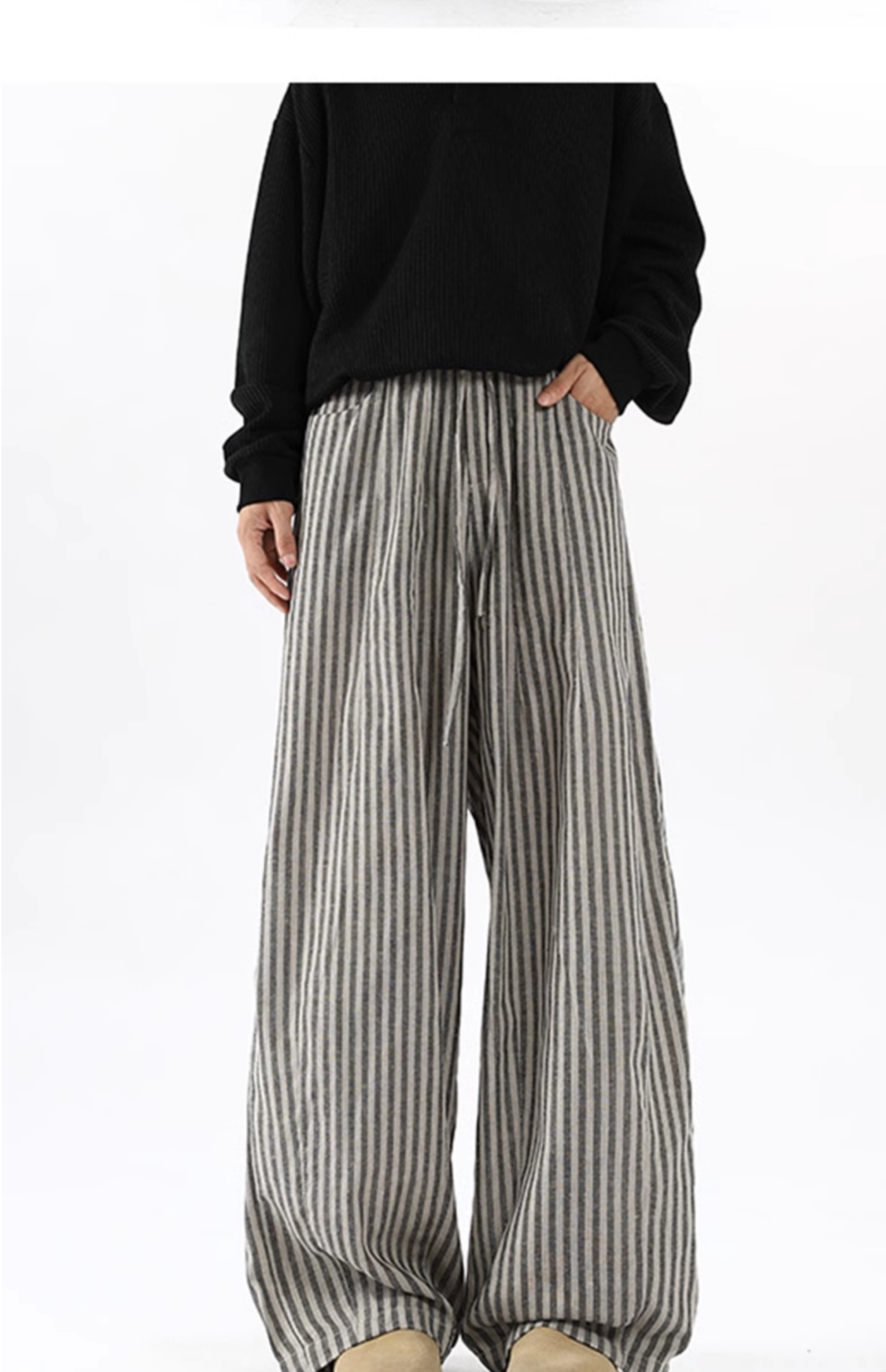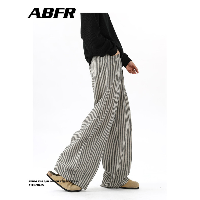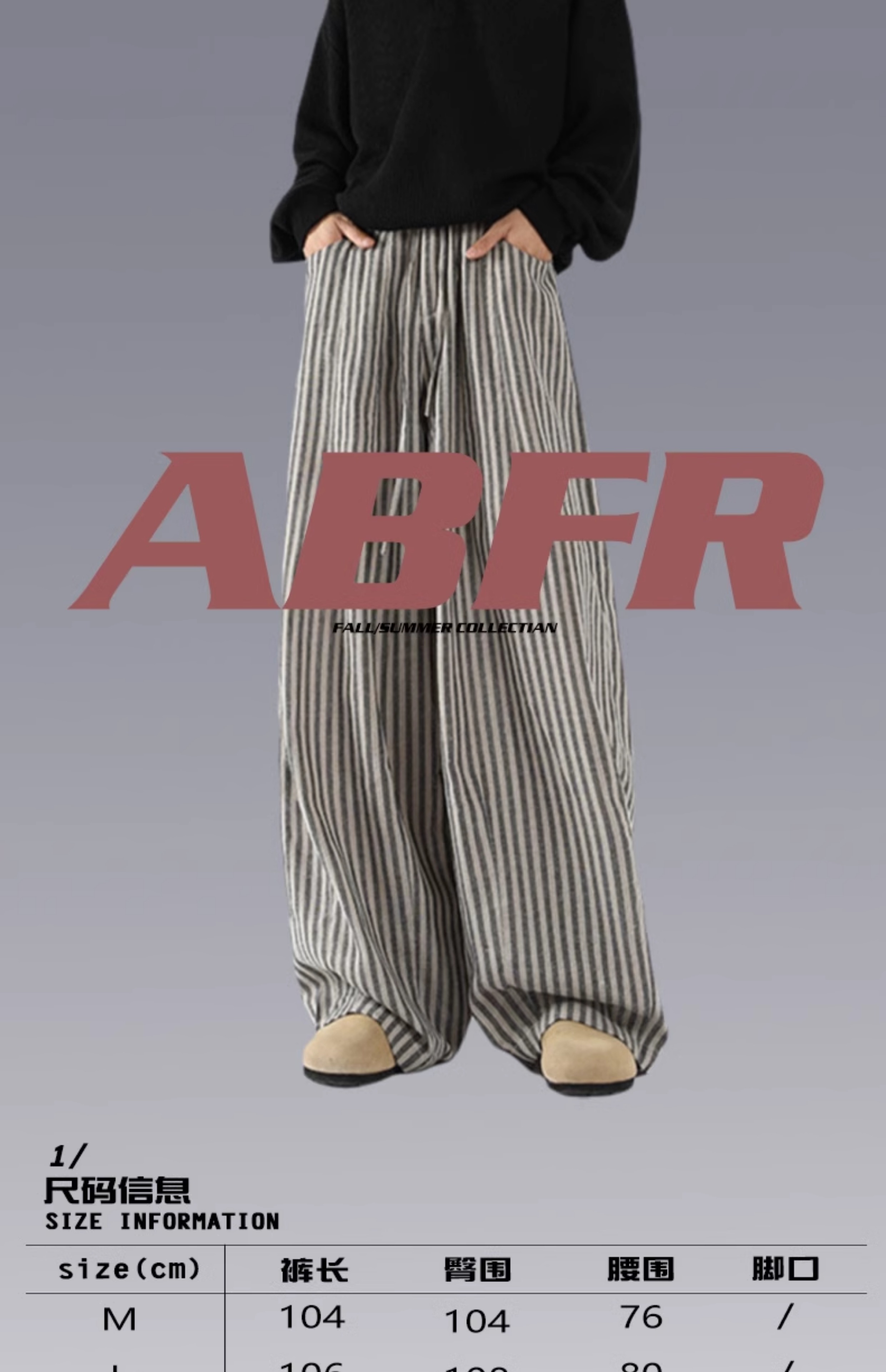 ABFR松弛感寬松竪條紋休閒褲男秋季美式休閒濶腿褲直筒拖地長褲子