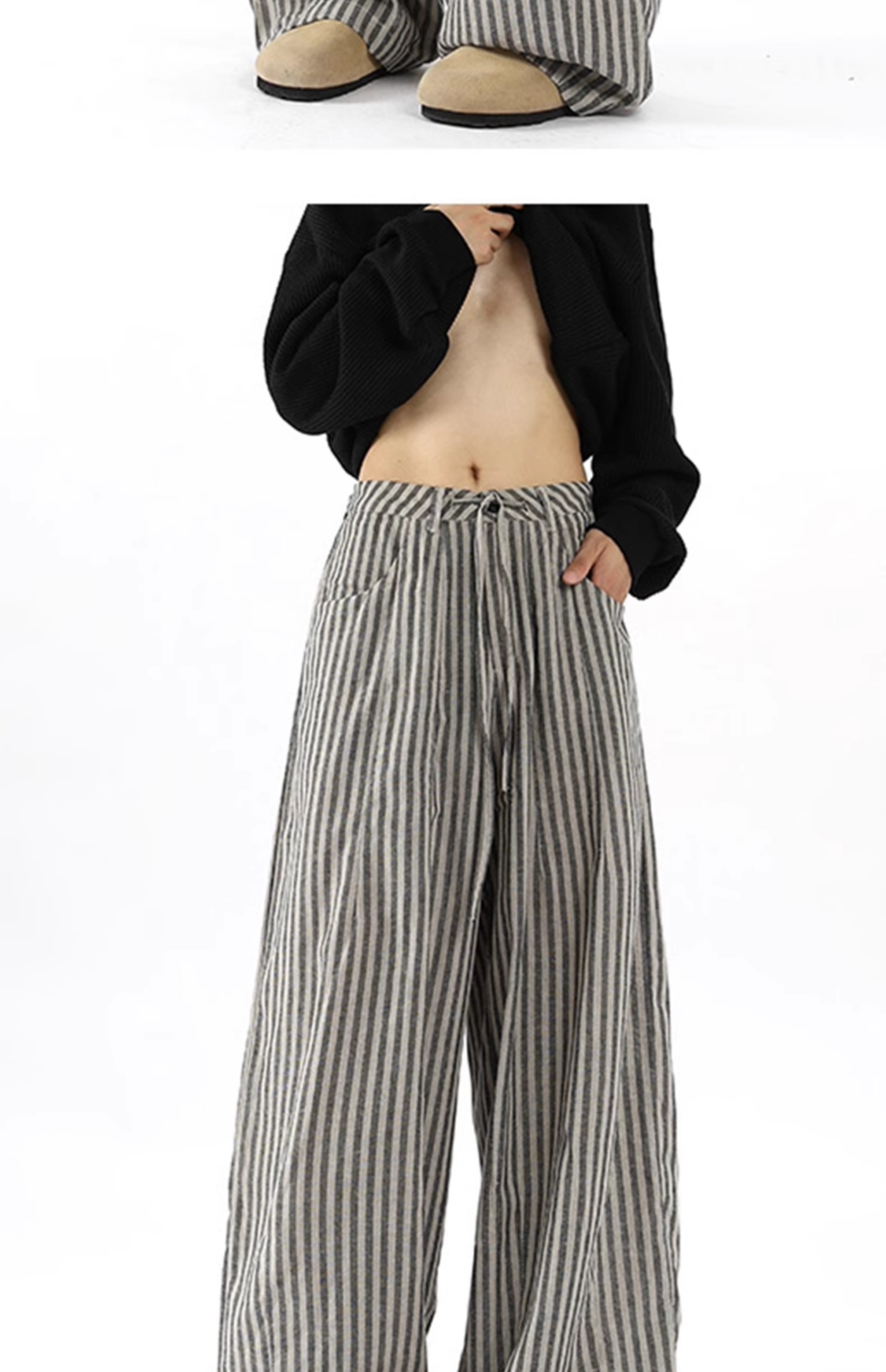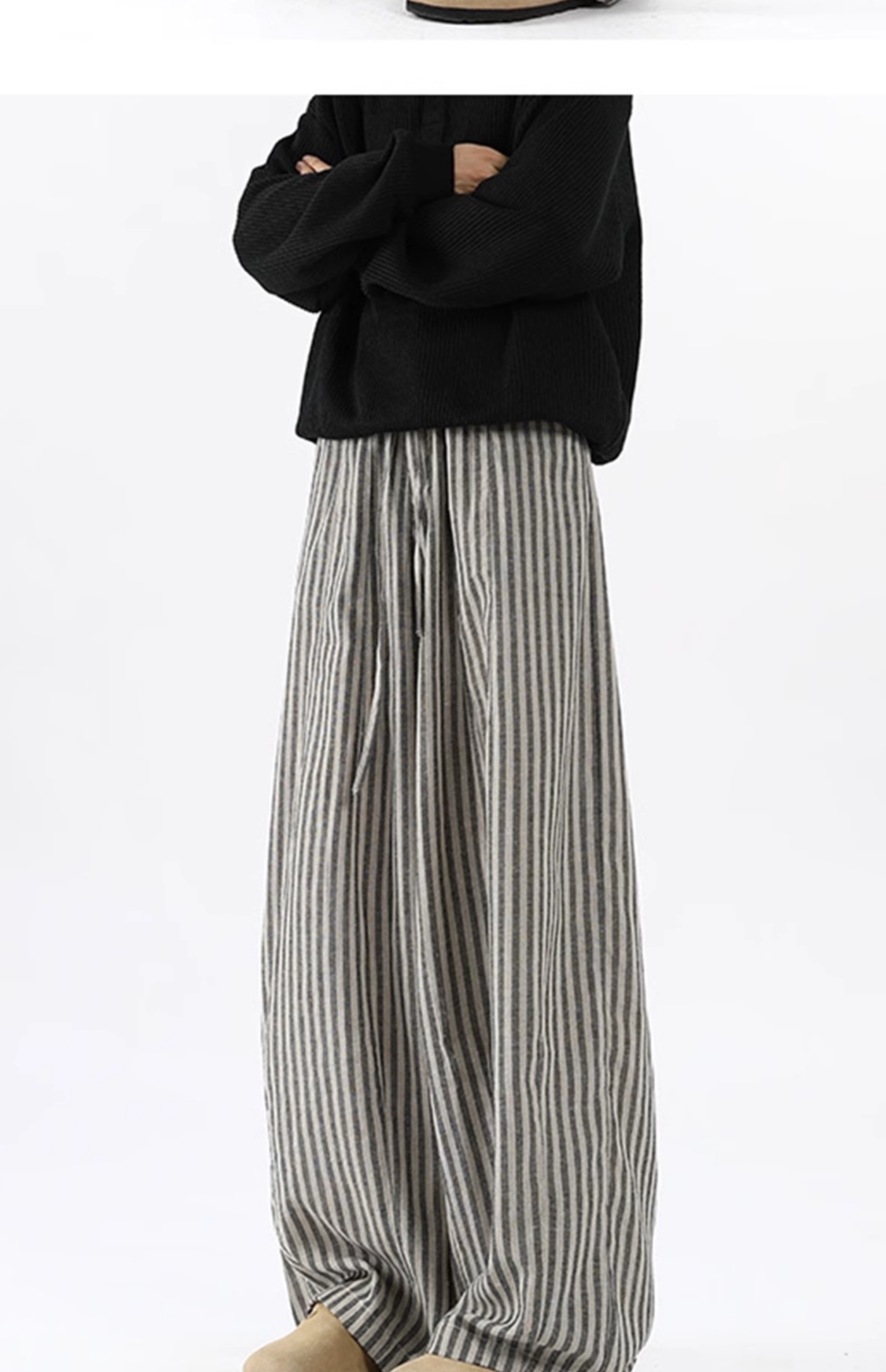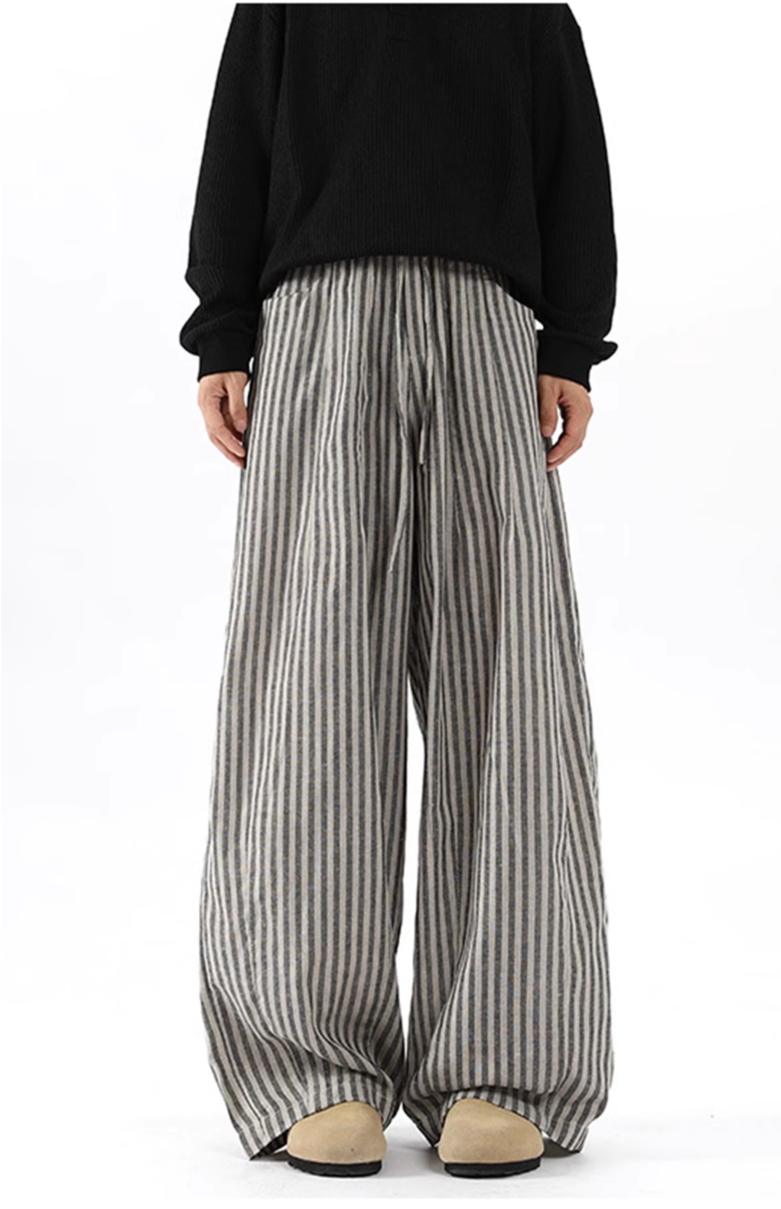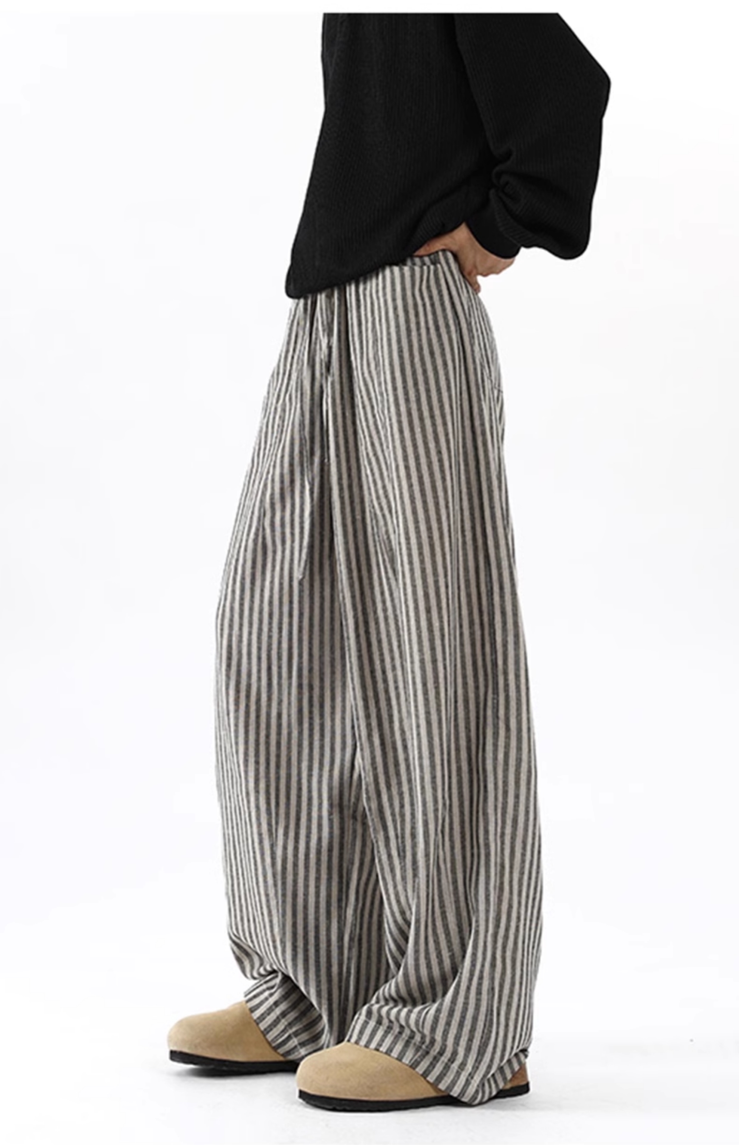 ABFR松弛感寬松竪條紋休閒褲男秋季美式休閒濶腿褲直筒拖地長褲子