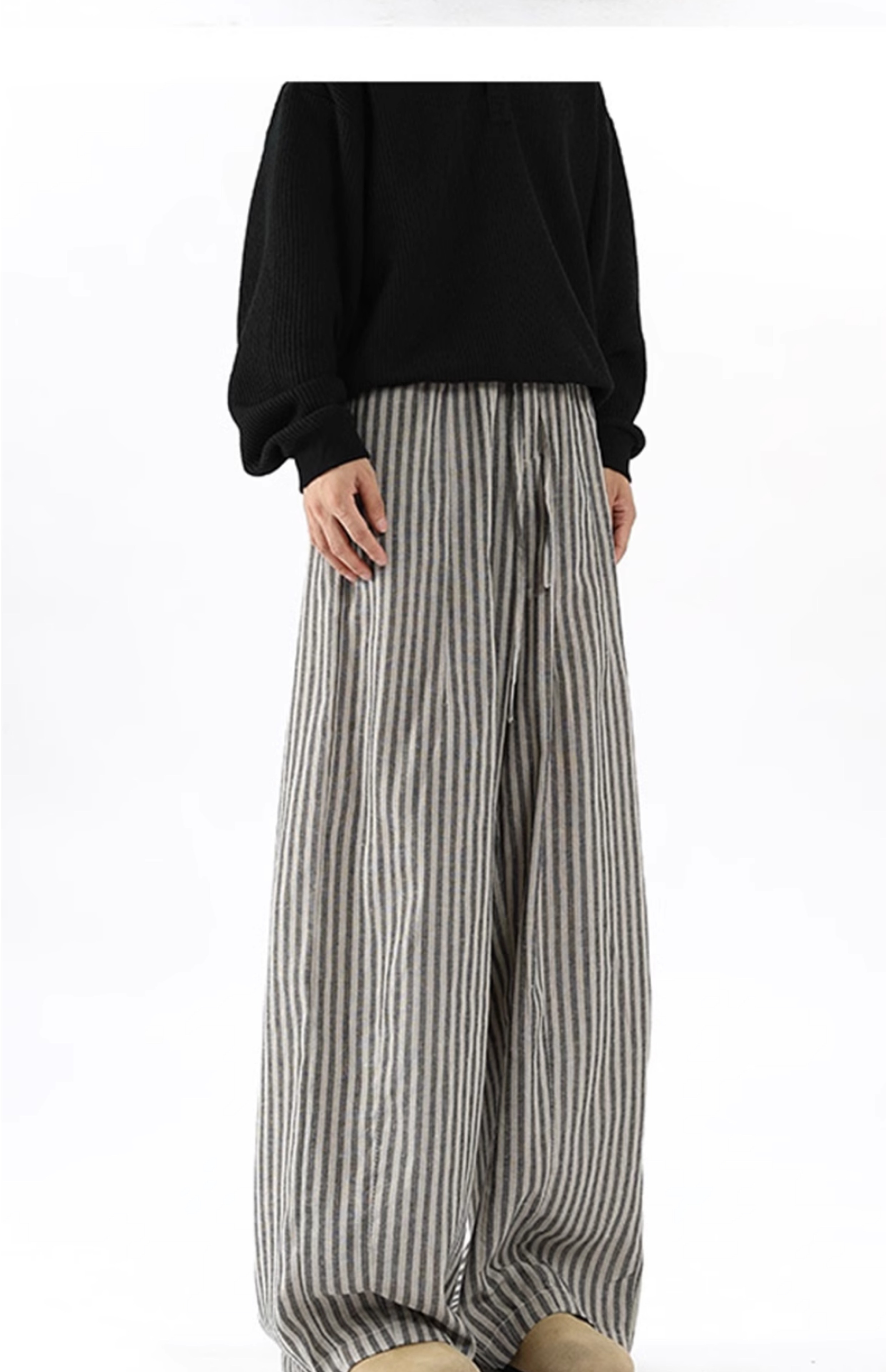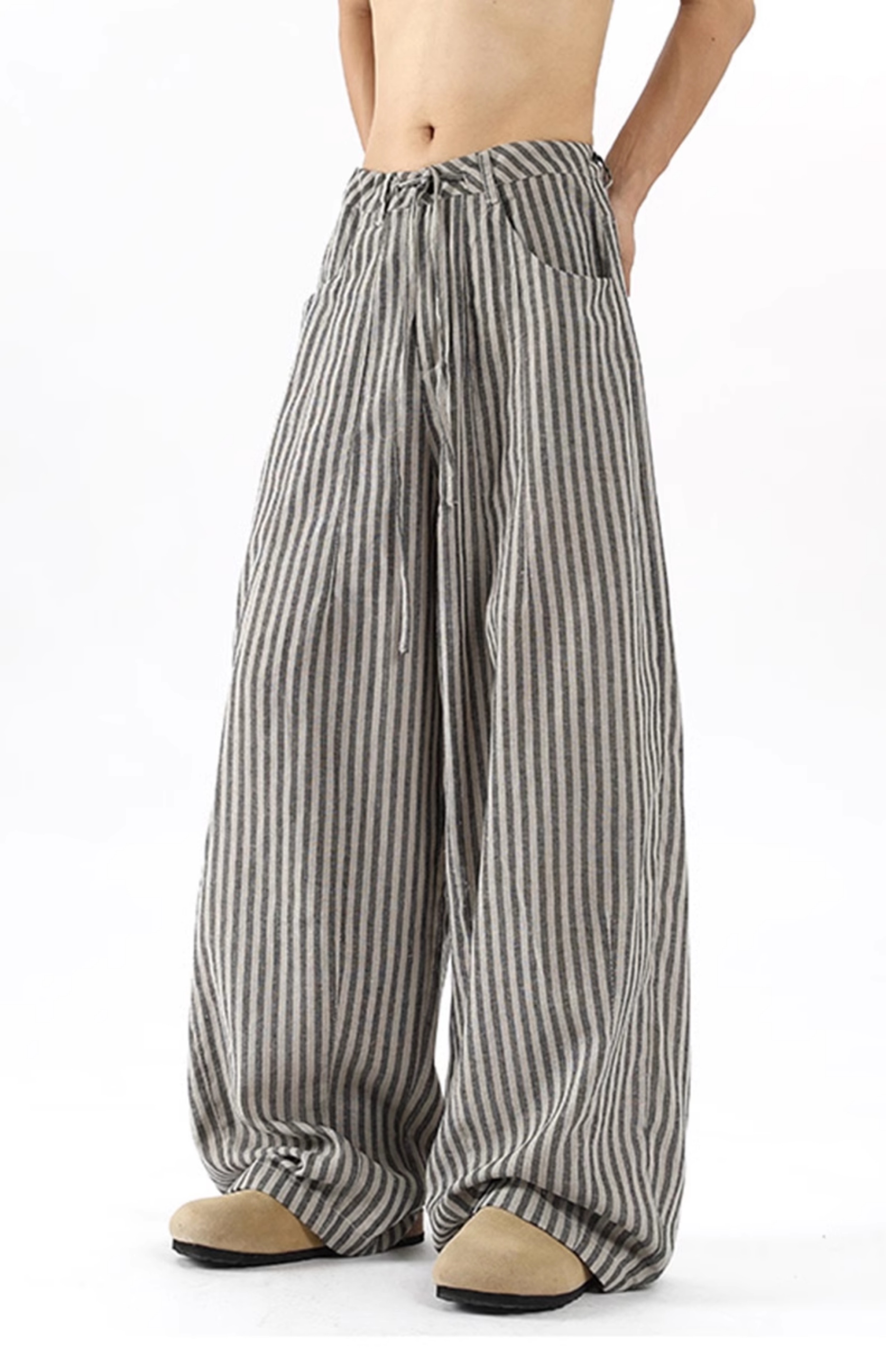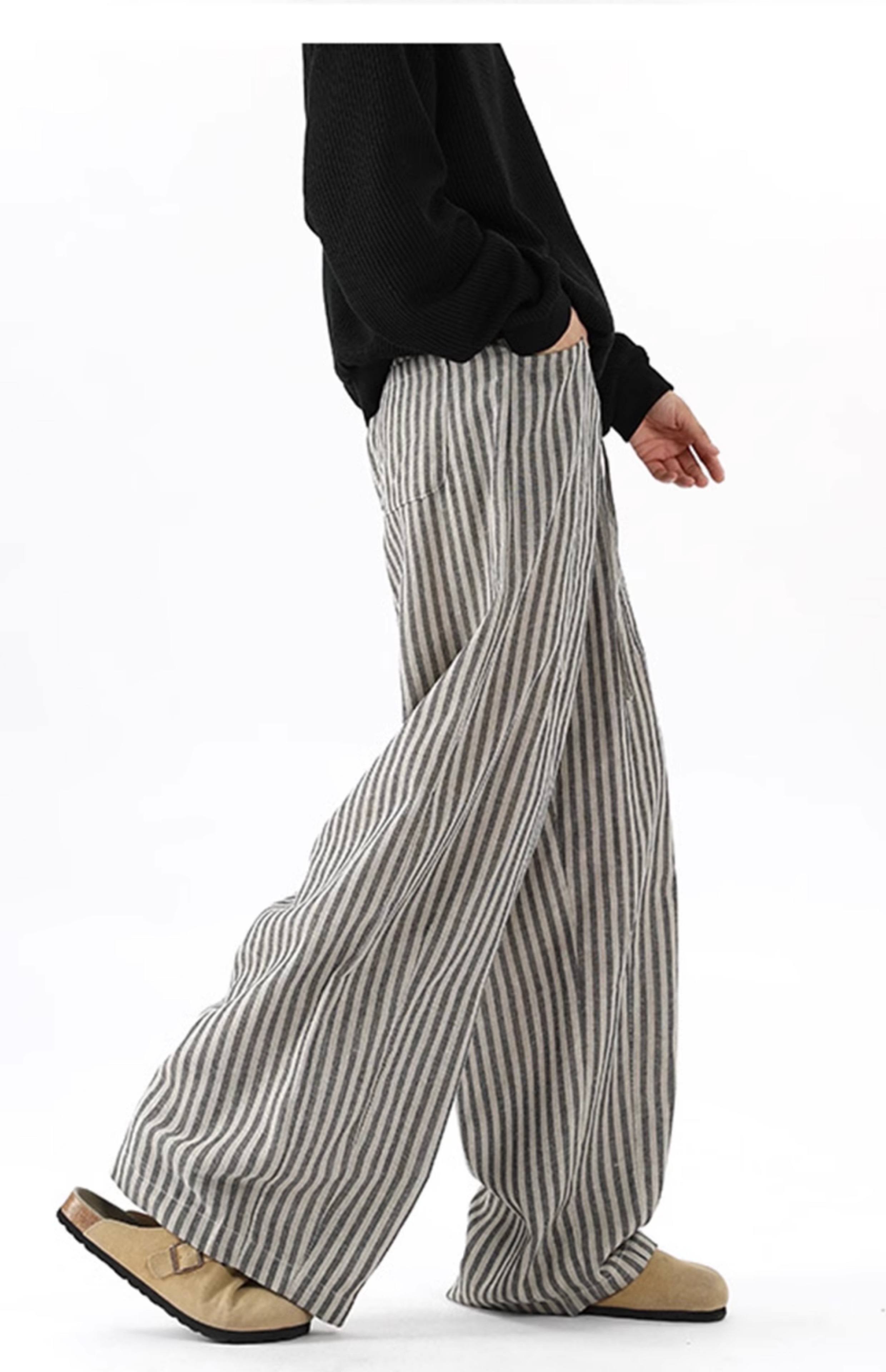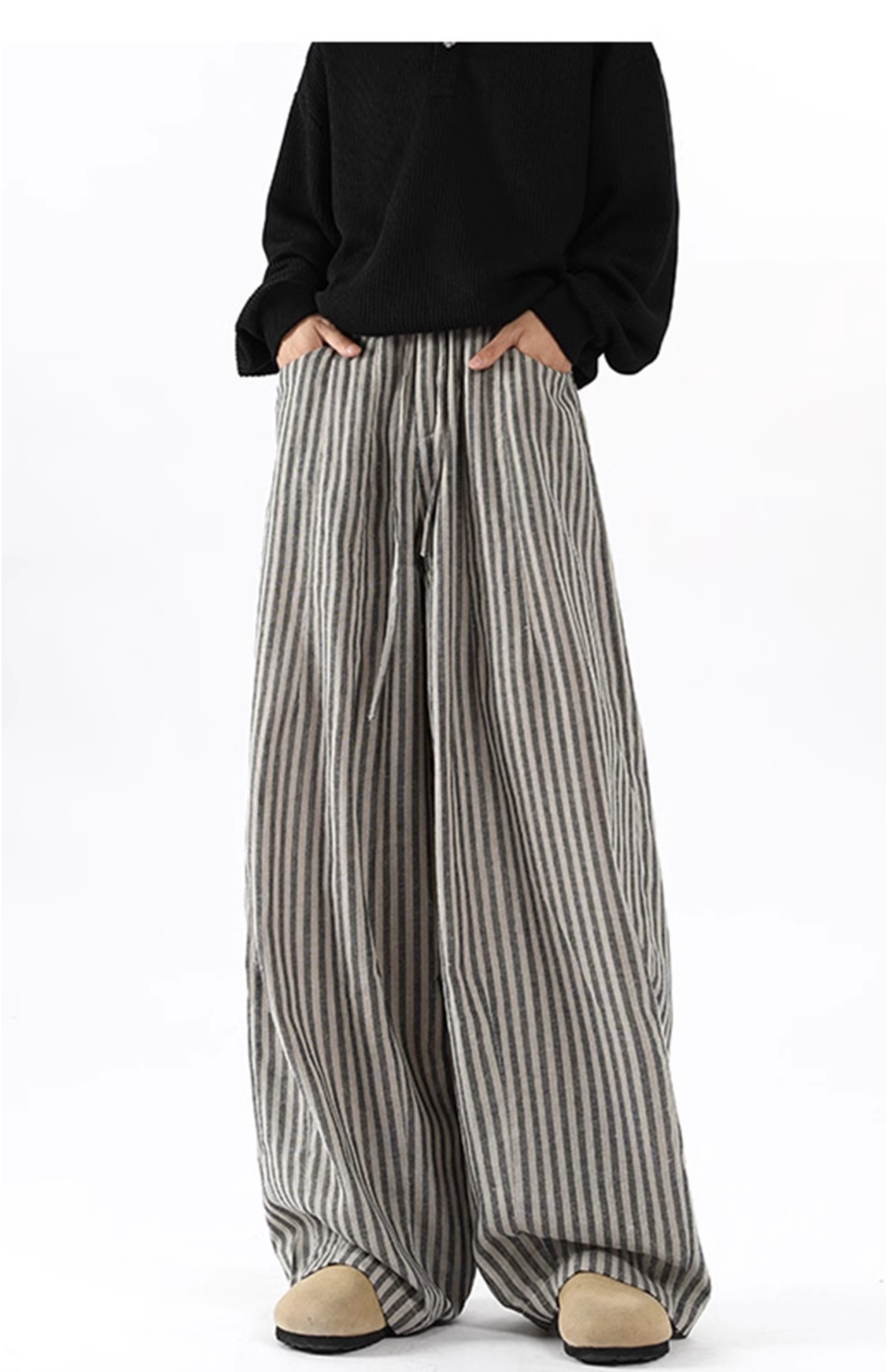 ABFR松弛感寬松竪條紋休閒褲男秋季美式休閒濶腿褲直筒拖地長褲子