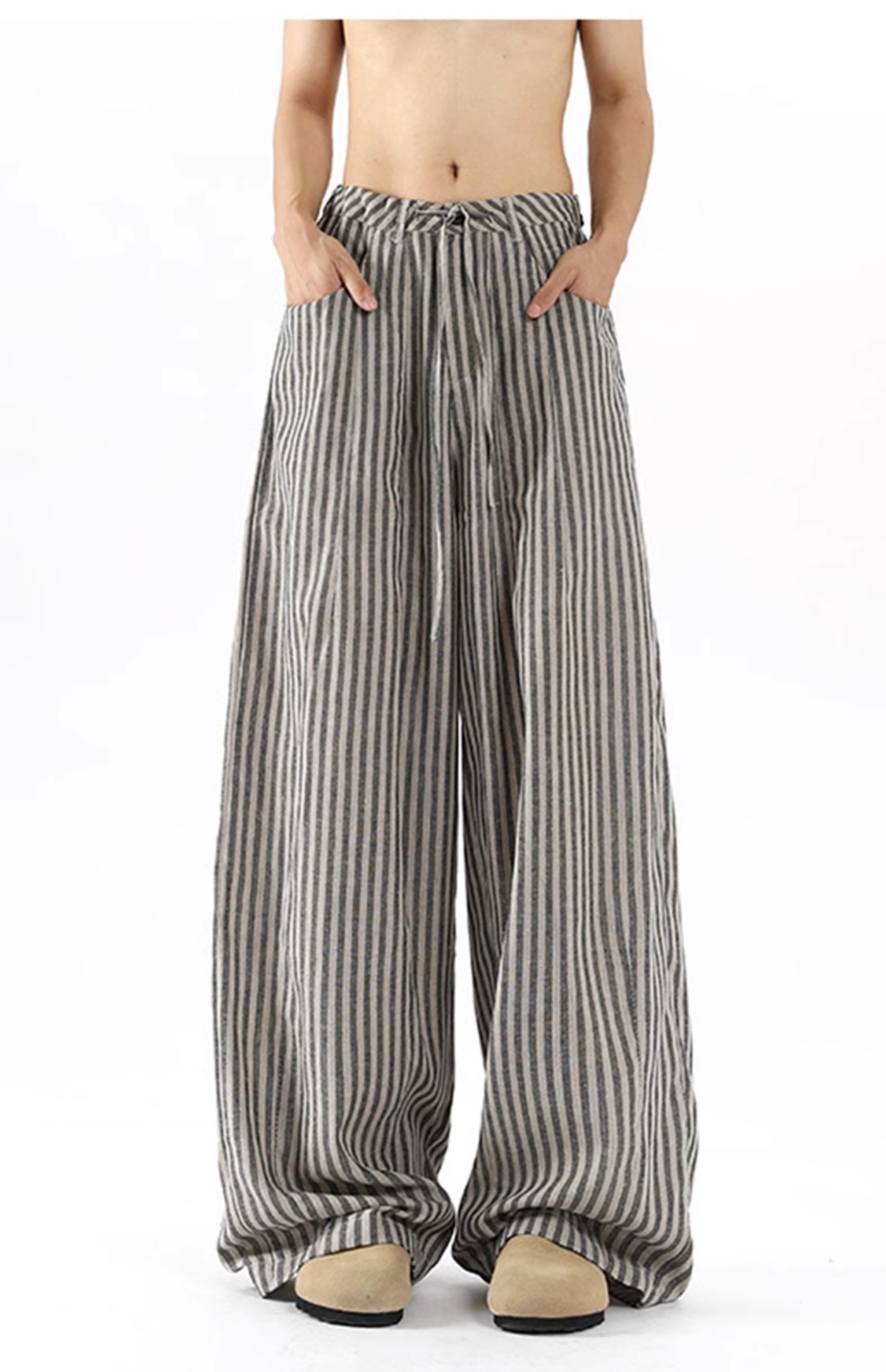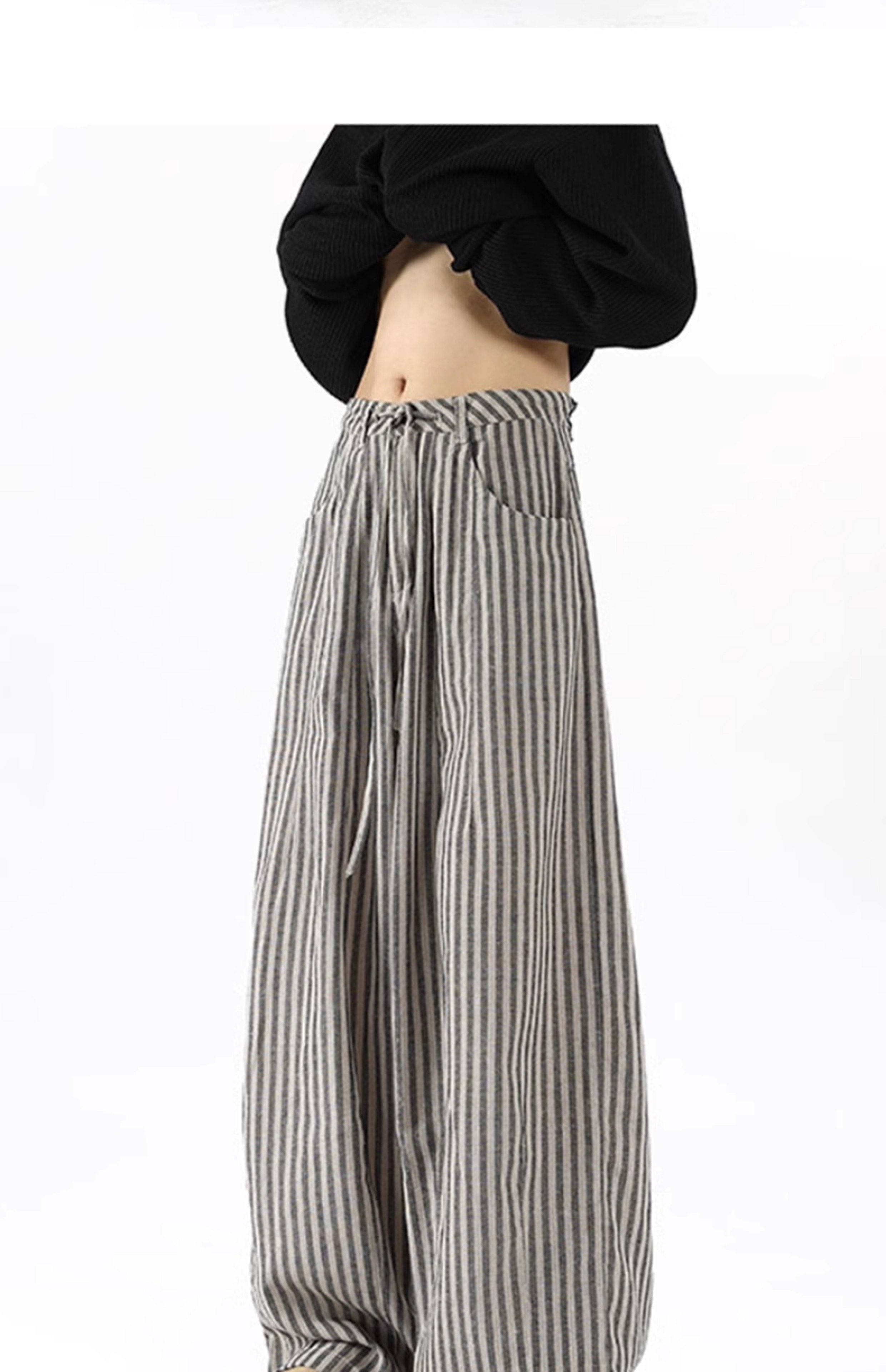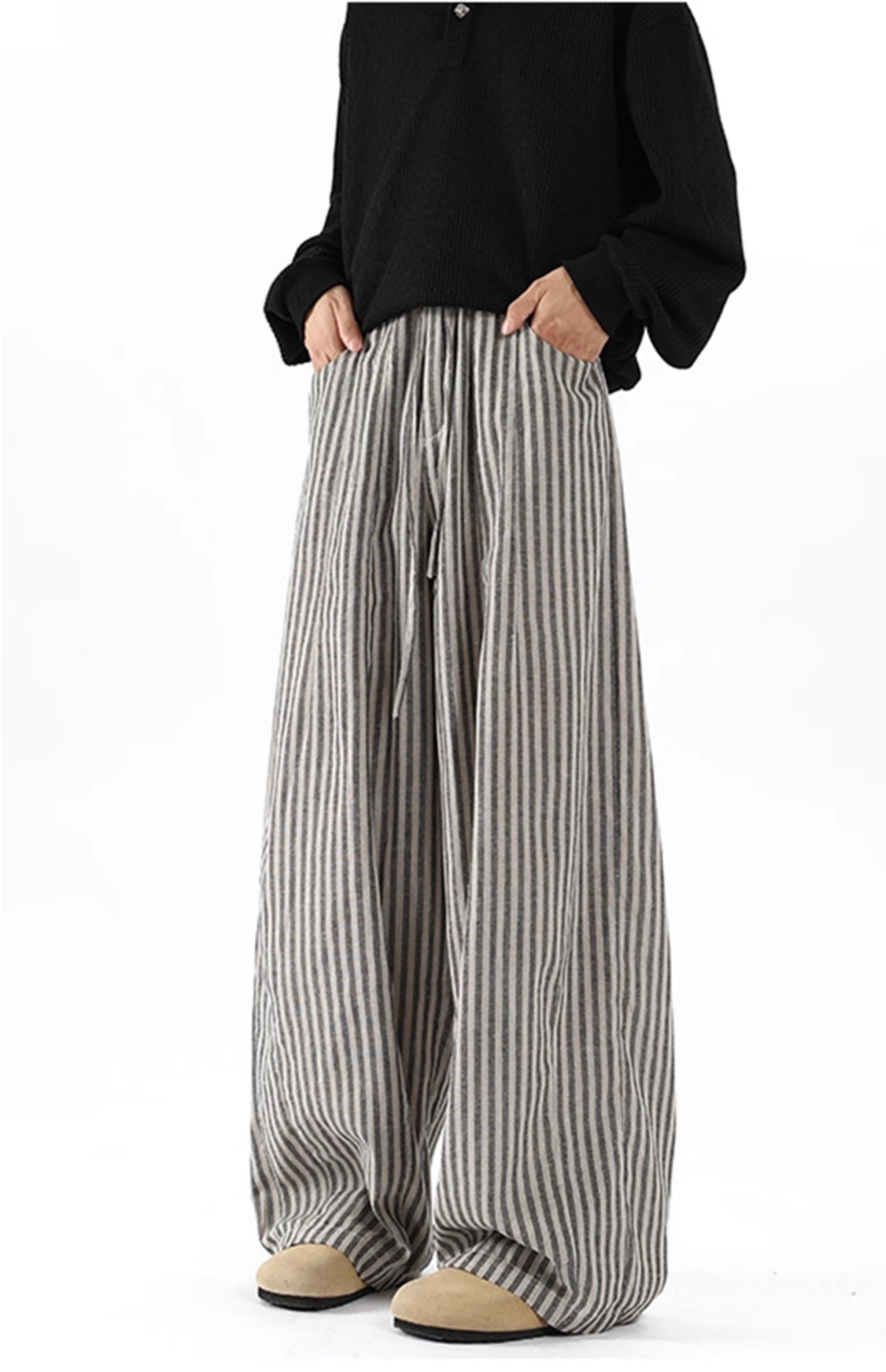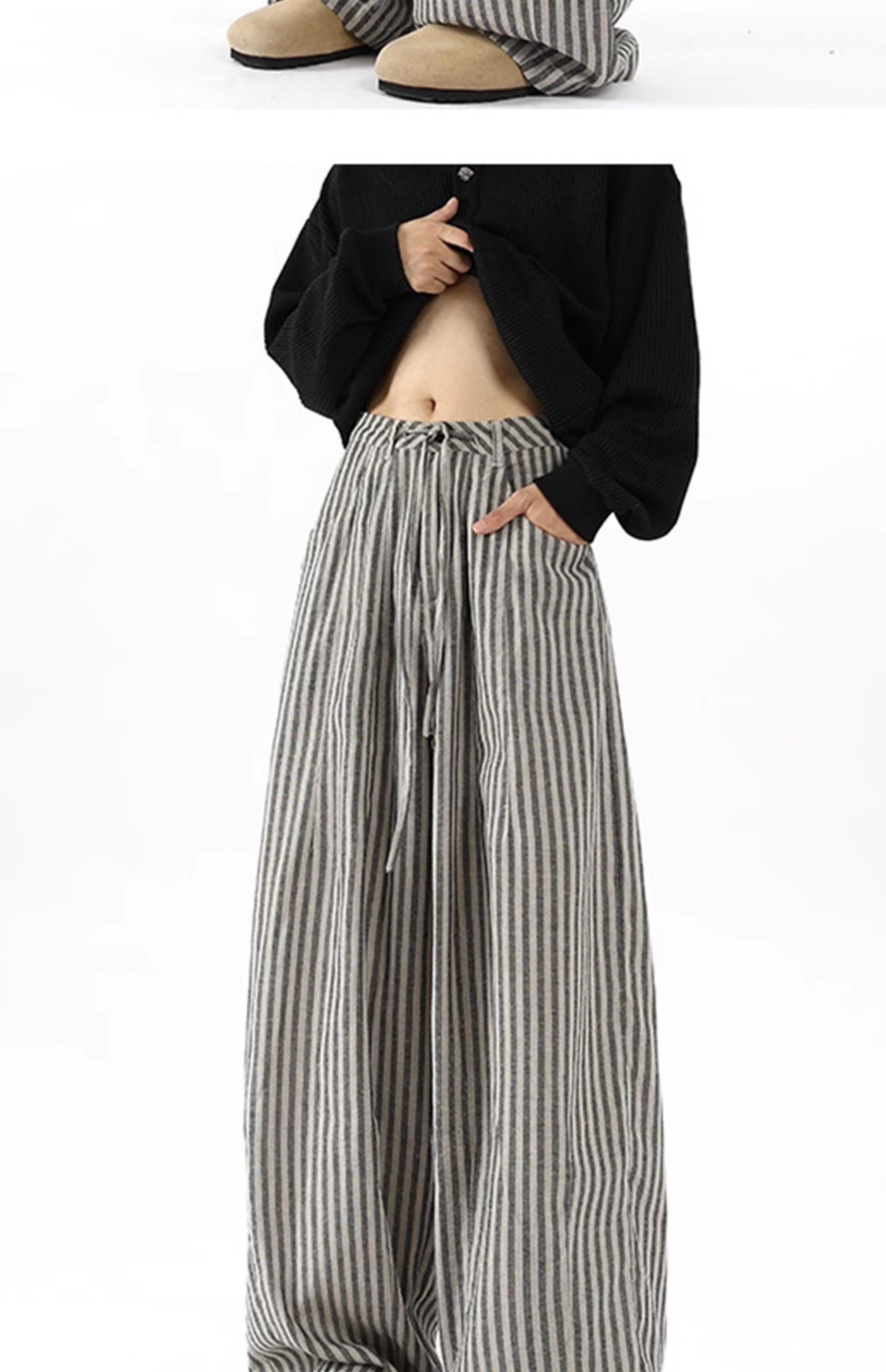 ABFR松弛感寬松竪條紋休閒褲男秋季美式休閒濶腿褲直筒拖地長褲子