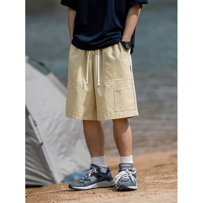 WASSUP HEODS國潮牌夏季短褲男松緊腰綁帶休閒美式高街寬松濶腿褲