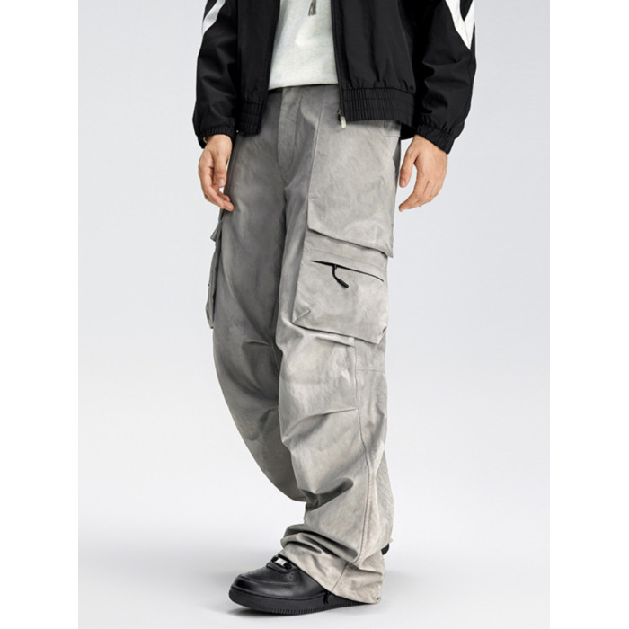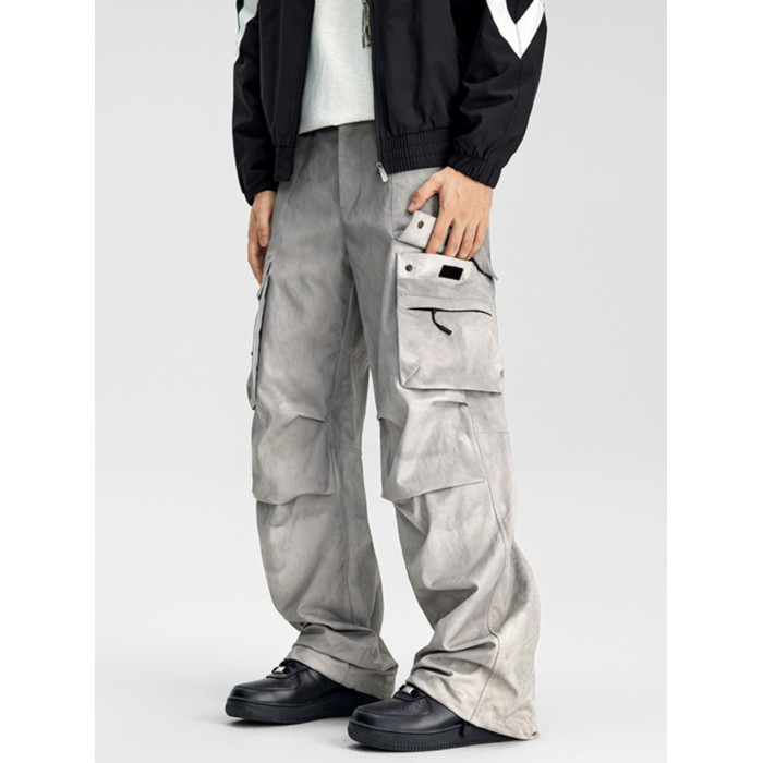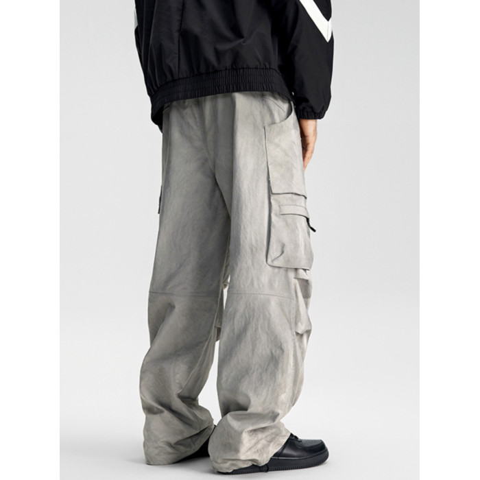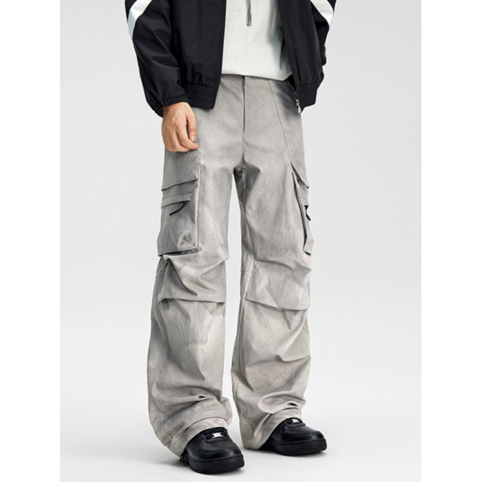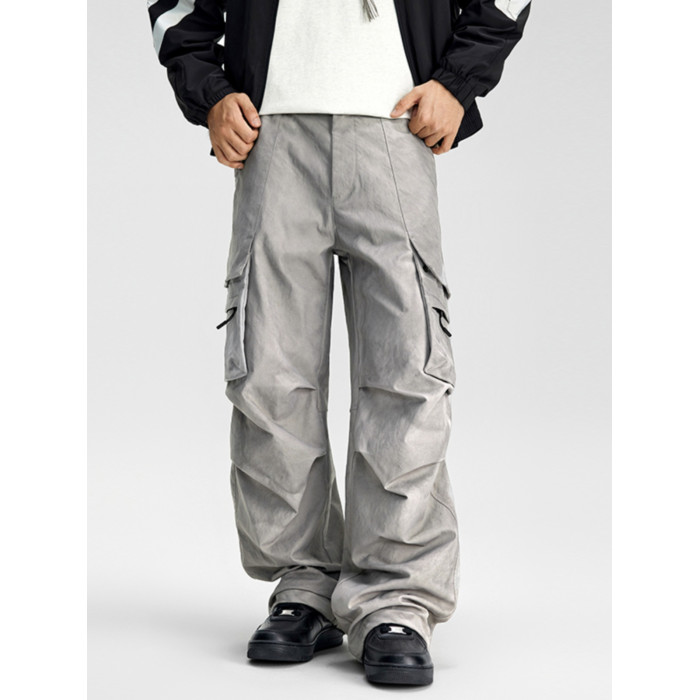 KLCH美式褶皺繖兵工裝褲男潮牌寬松男濶腿褲休閒直筒小衆百搭長褲