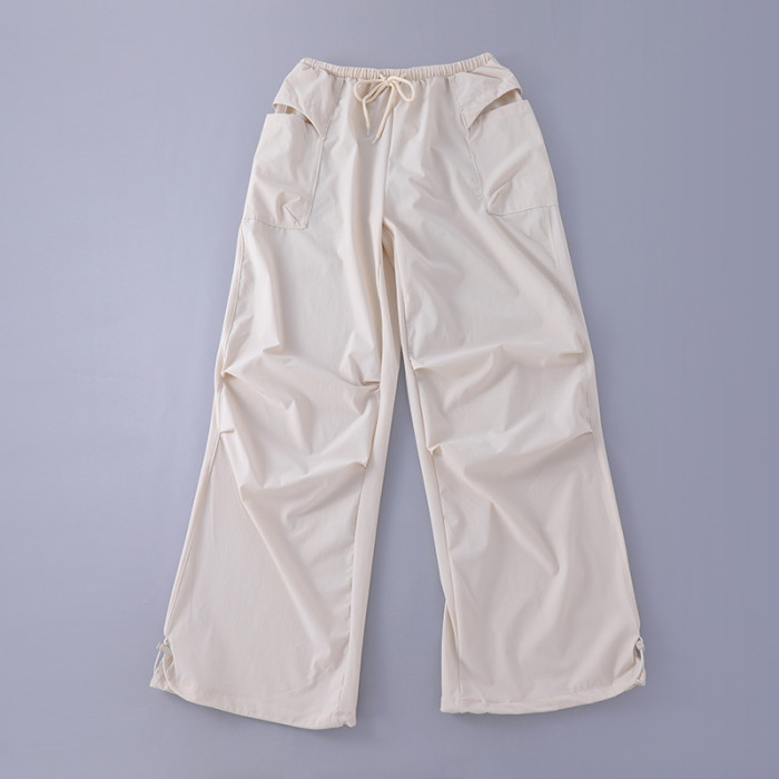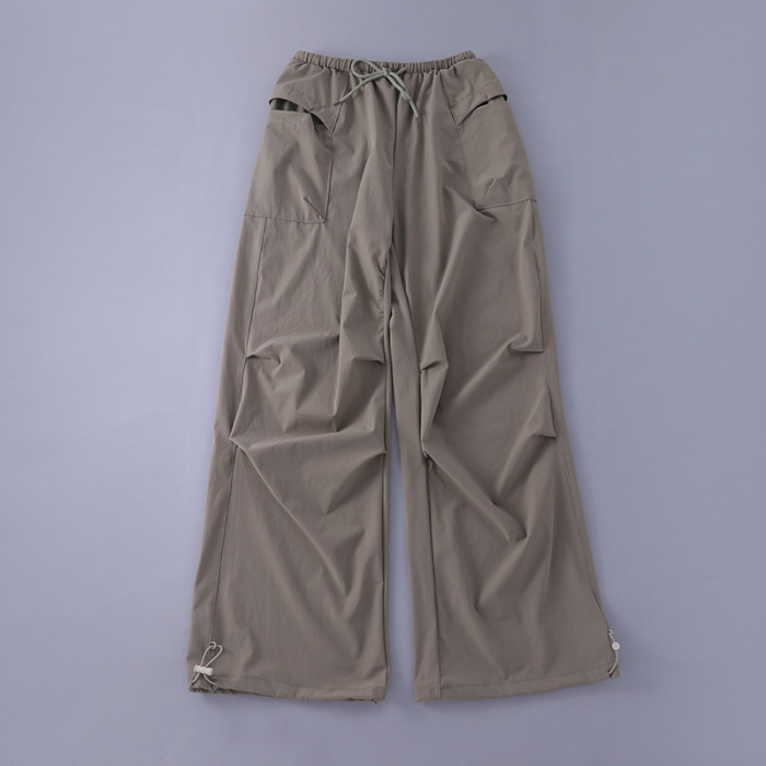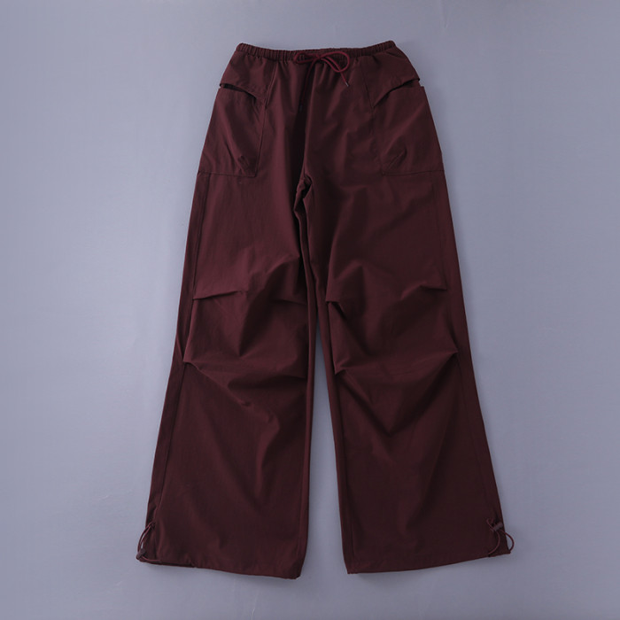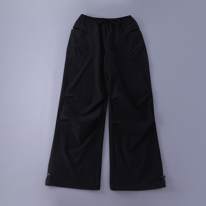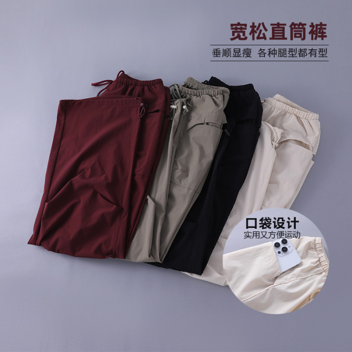 安可拉紅美式直版運動褲高腰工裝濶腿褲健身衣休閒登山長褲秋季女
