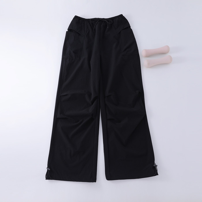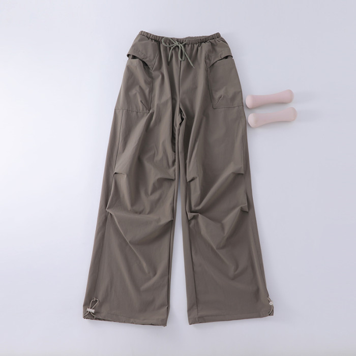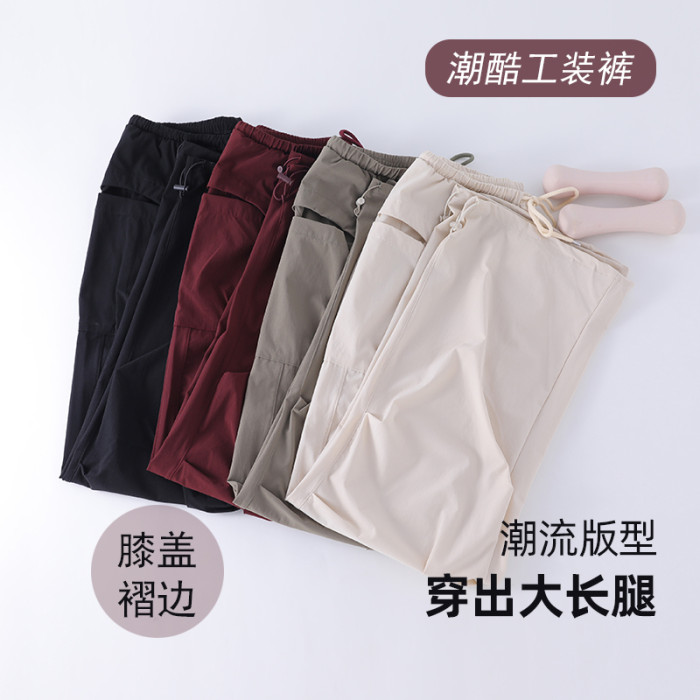 秋季新款工裝褲女戶外登山徒步美式復古濶腿褲速乾寬松休閒運動褲