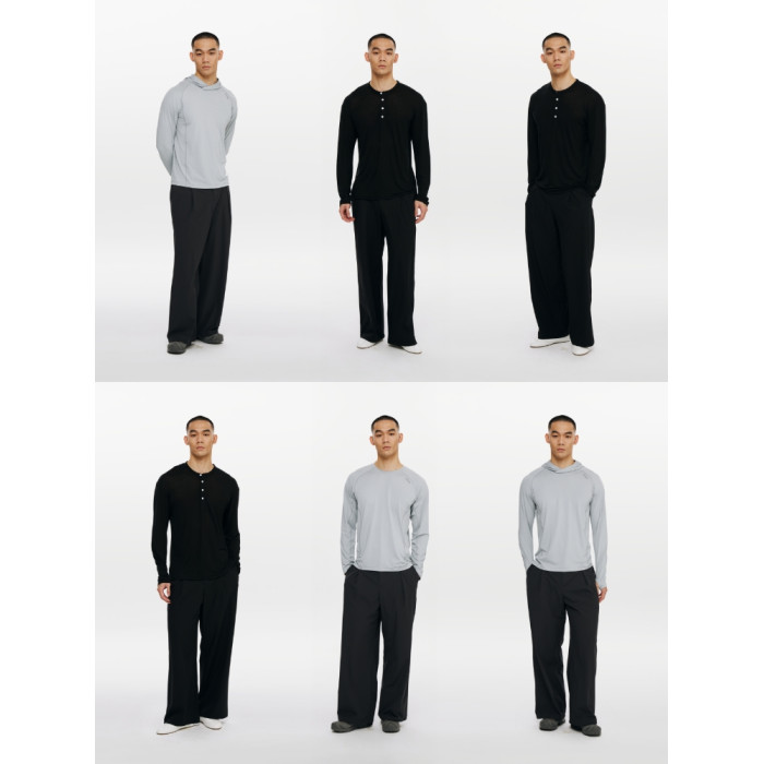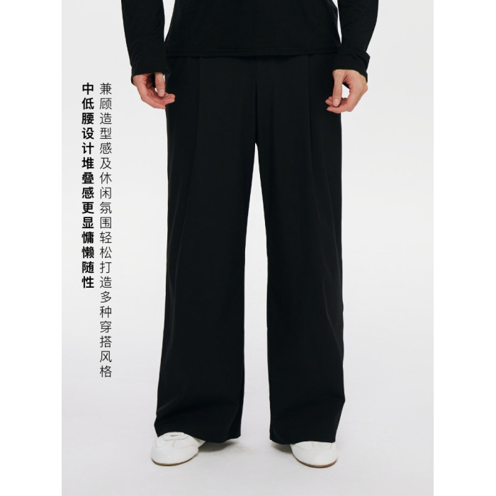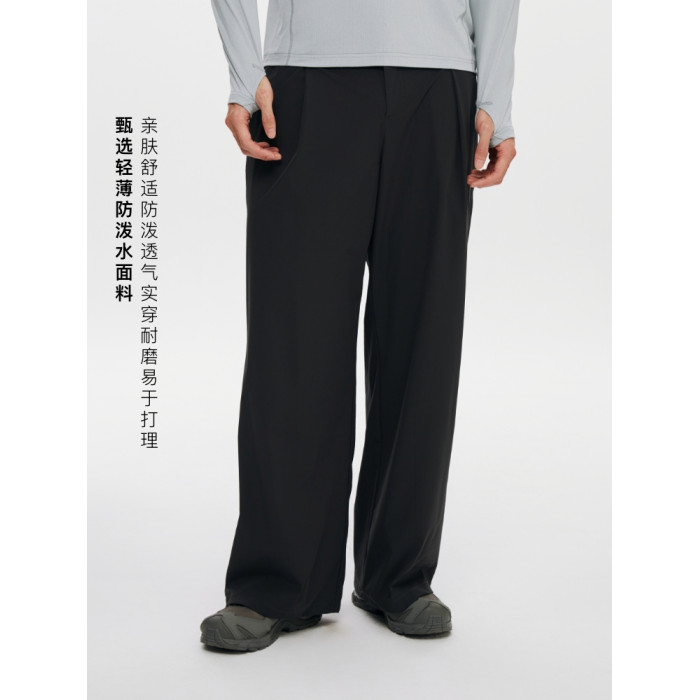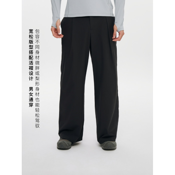 Oneup防水單褶運動長褲戶外休閒寬松垂感黑色濶腿褲子男女士同款