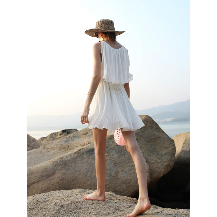 夏日絕美海島出遊小裙子高級感雪紡小個子三亞海邊度假沙灘連衣裙