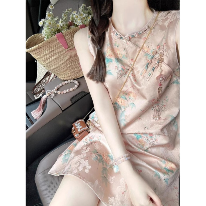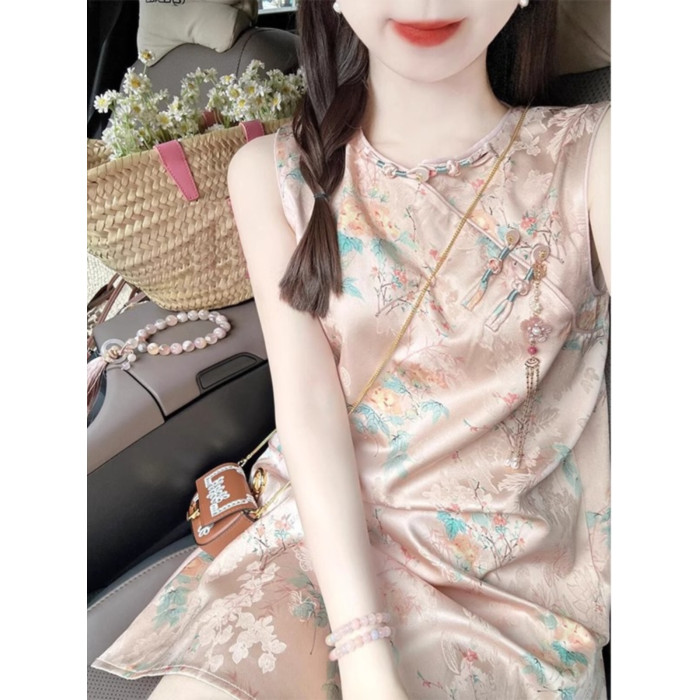 歐洲站新中式女裝2025夏季新款法式高級感氣質小個子碎花連衣裙子