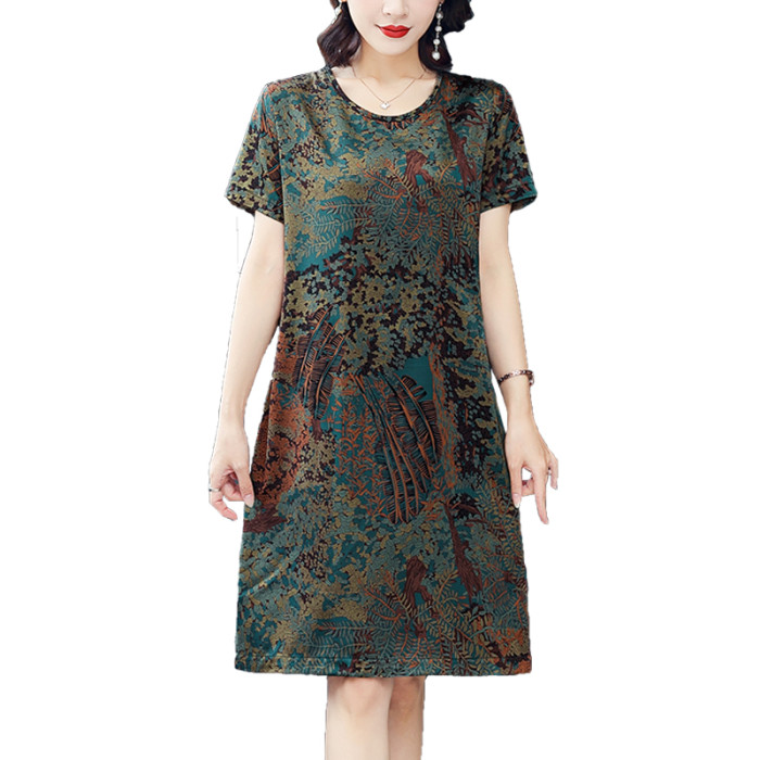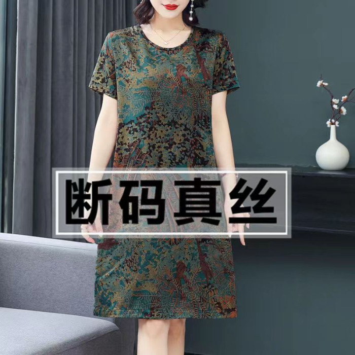 杭州重磅真絲連衣裙桑蠶絲中年媽媽裝大碼減齡夏裝過膝長款連衣裙