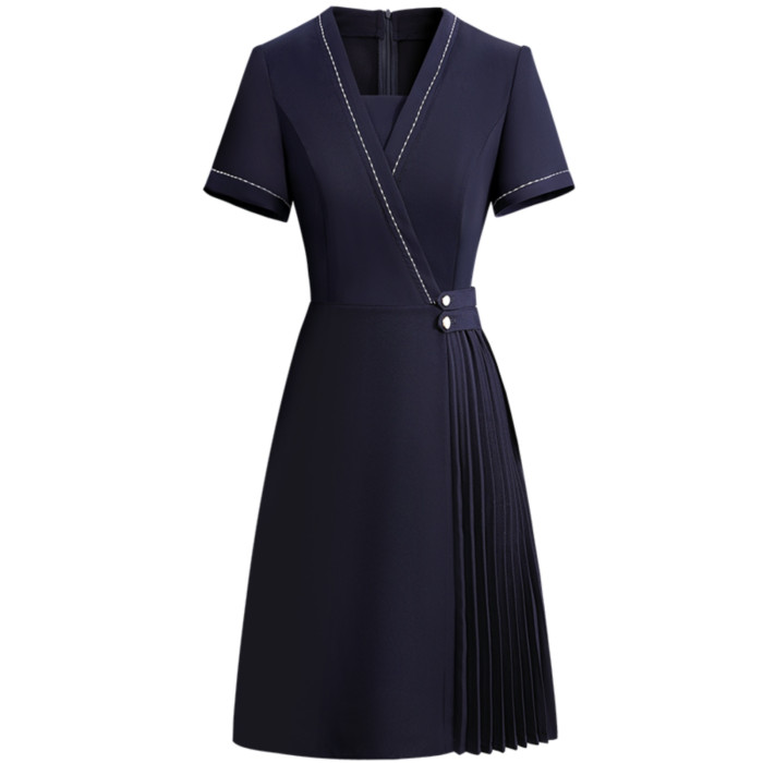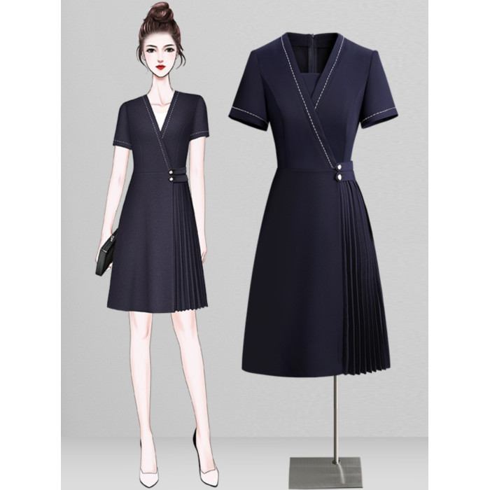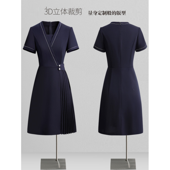 職業連衣裙女夏時尚洋氣收腰a字裙銷售導購工裝幼兒園老師工作服