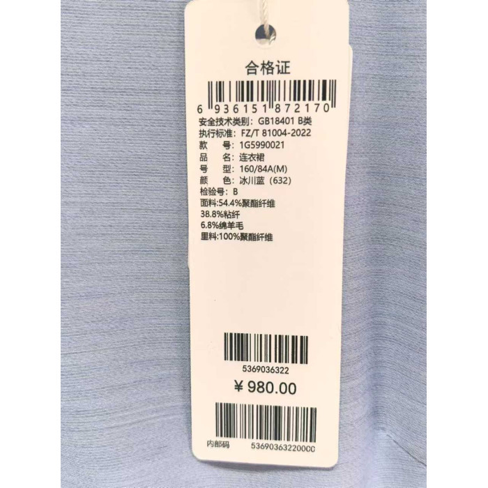材質成分 | 聚酯纖維54.4% 粘膠纖維(粘纖)38.8% 綿羊毛6.8% |