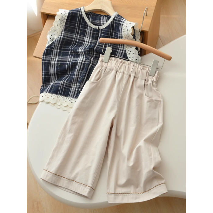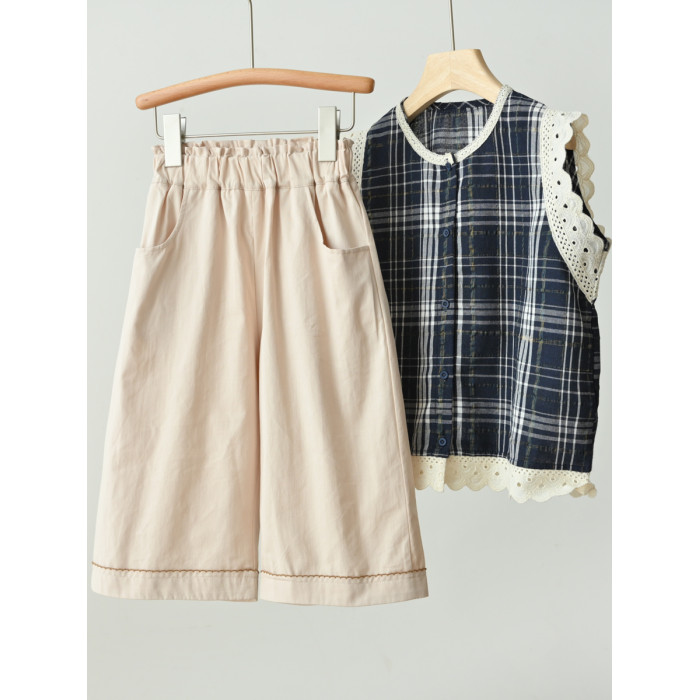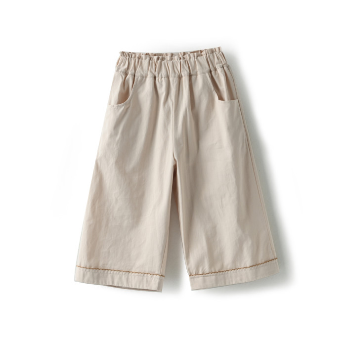 輕薄款 兒童純棉挽邊七分褲 女童濶腿直筒褲 春夏款 中大童 童裝