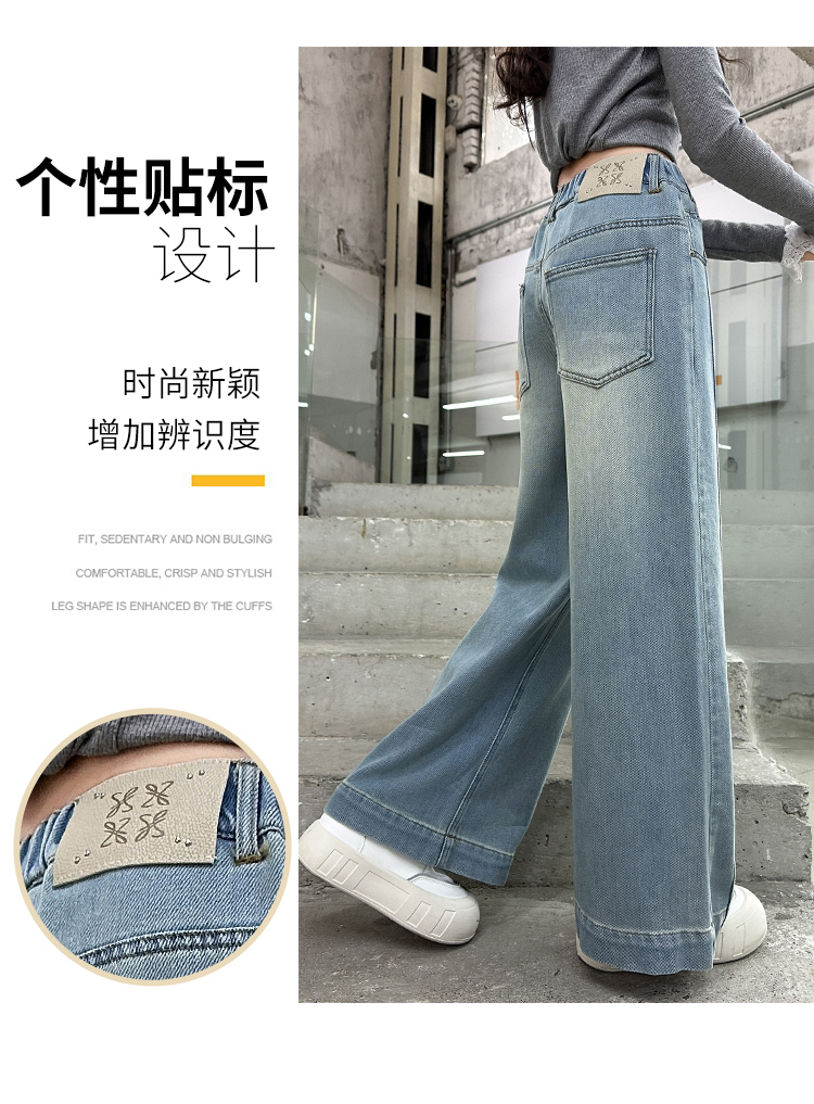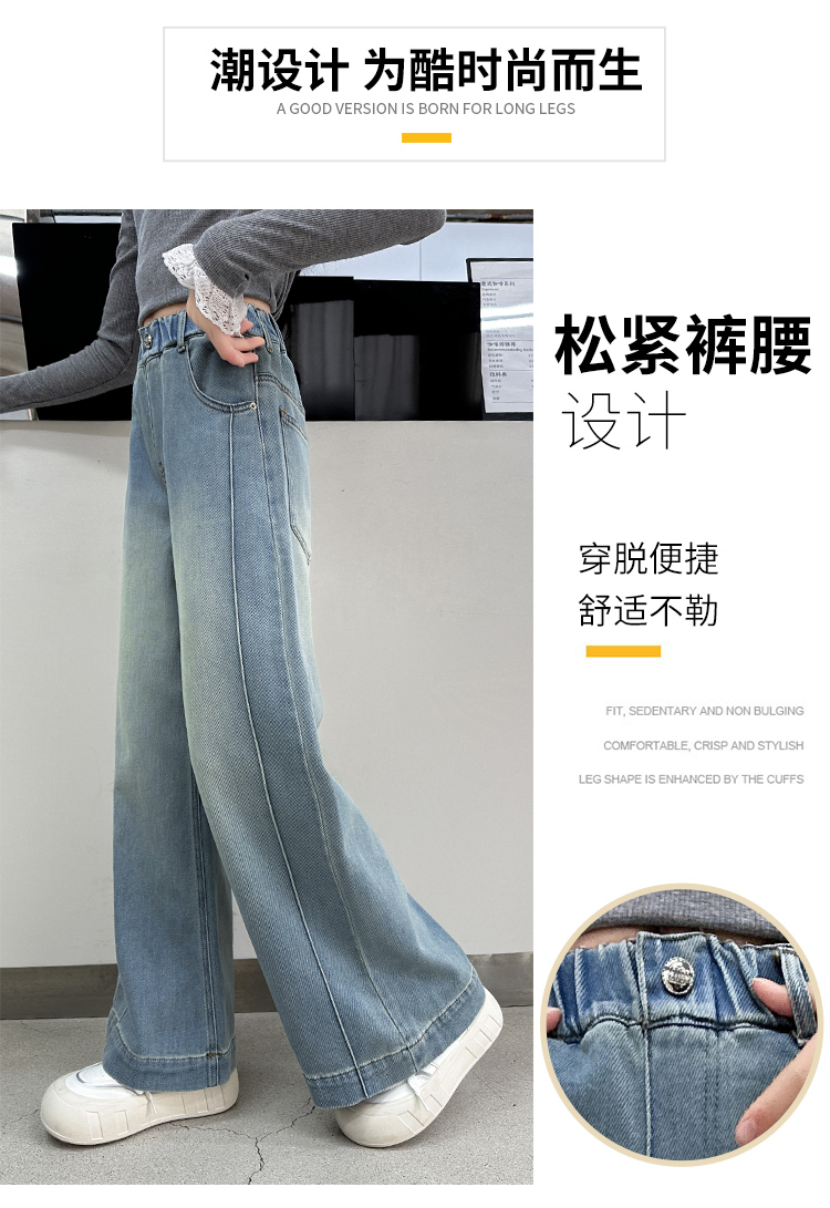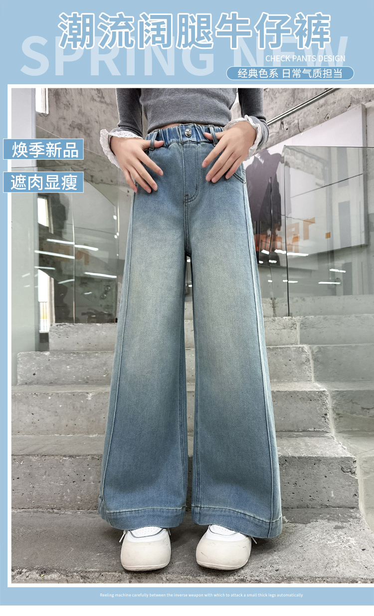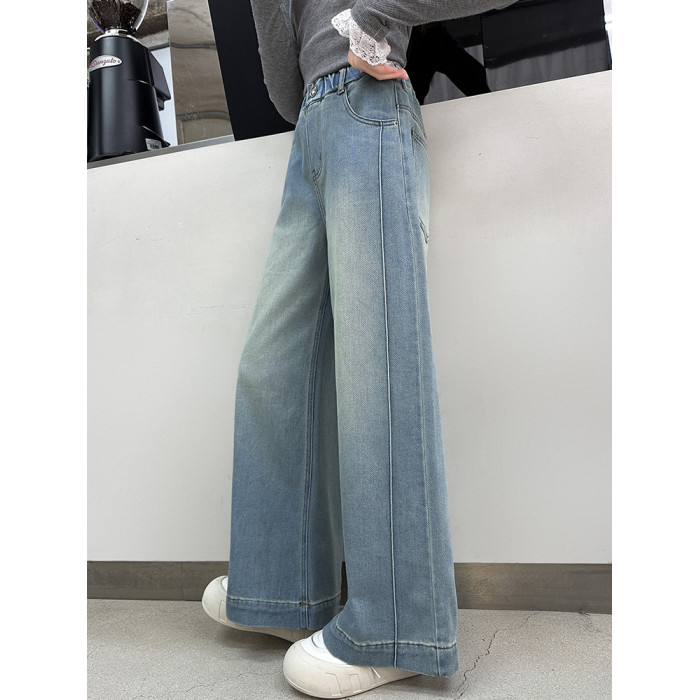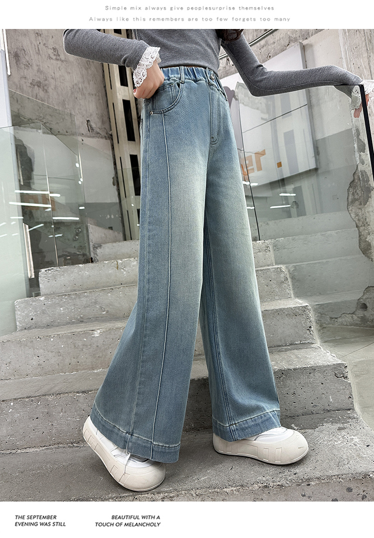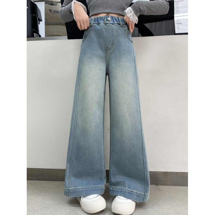 女童秋裝褲子2025新款洋氣中大兒童牛仔褲春秋中腰直筒寬松濶腿褲