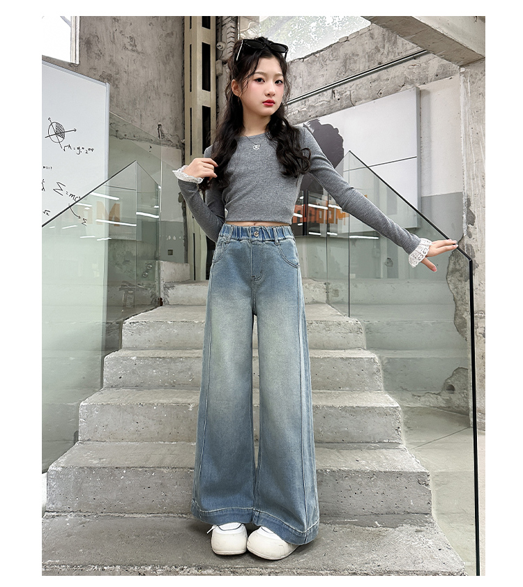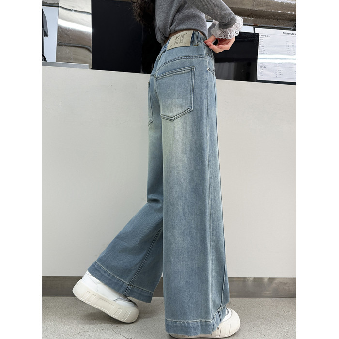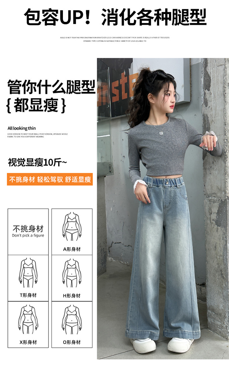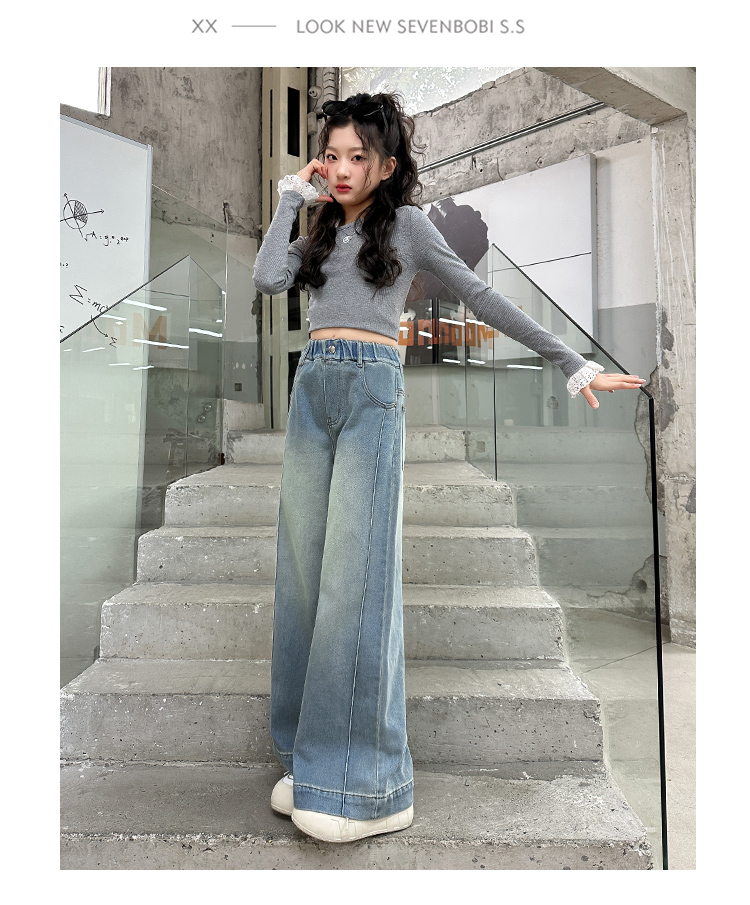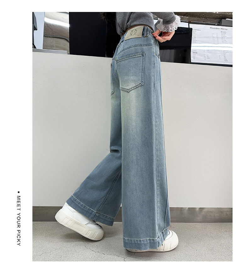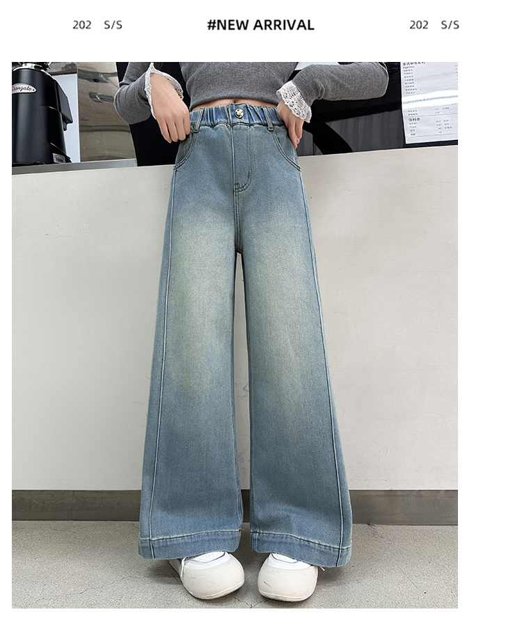 女童秋裝褲子2025新款洋氣中大兒童牛仔褲春秋中腰直筒寬松濶腿褲