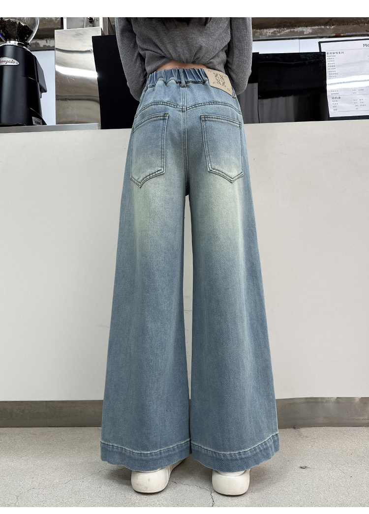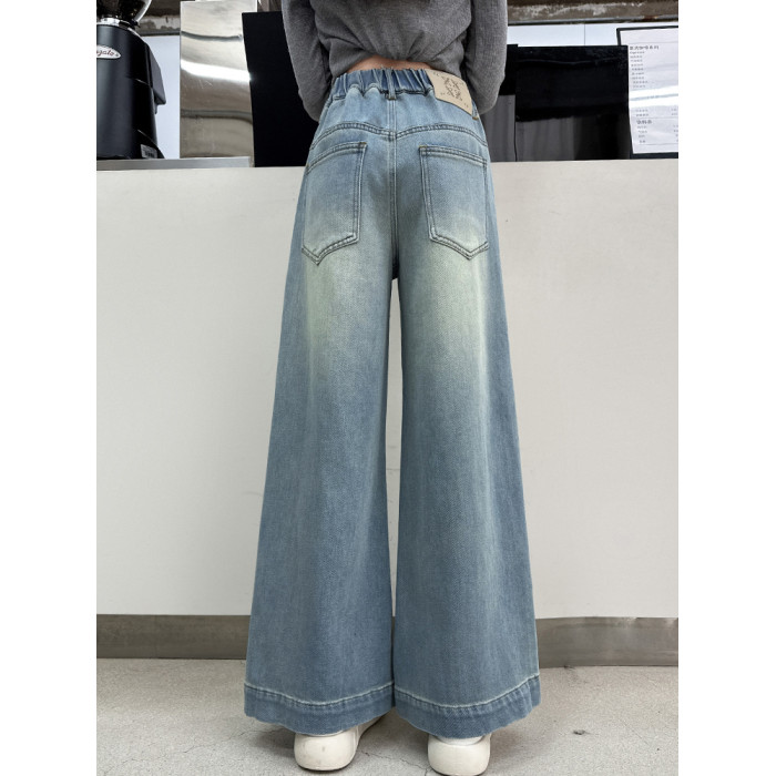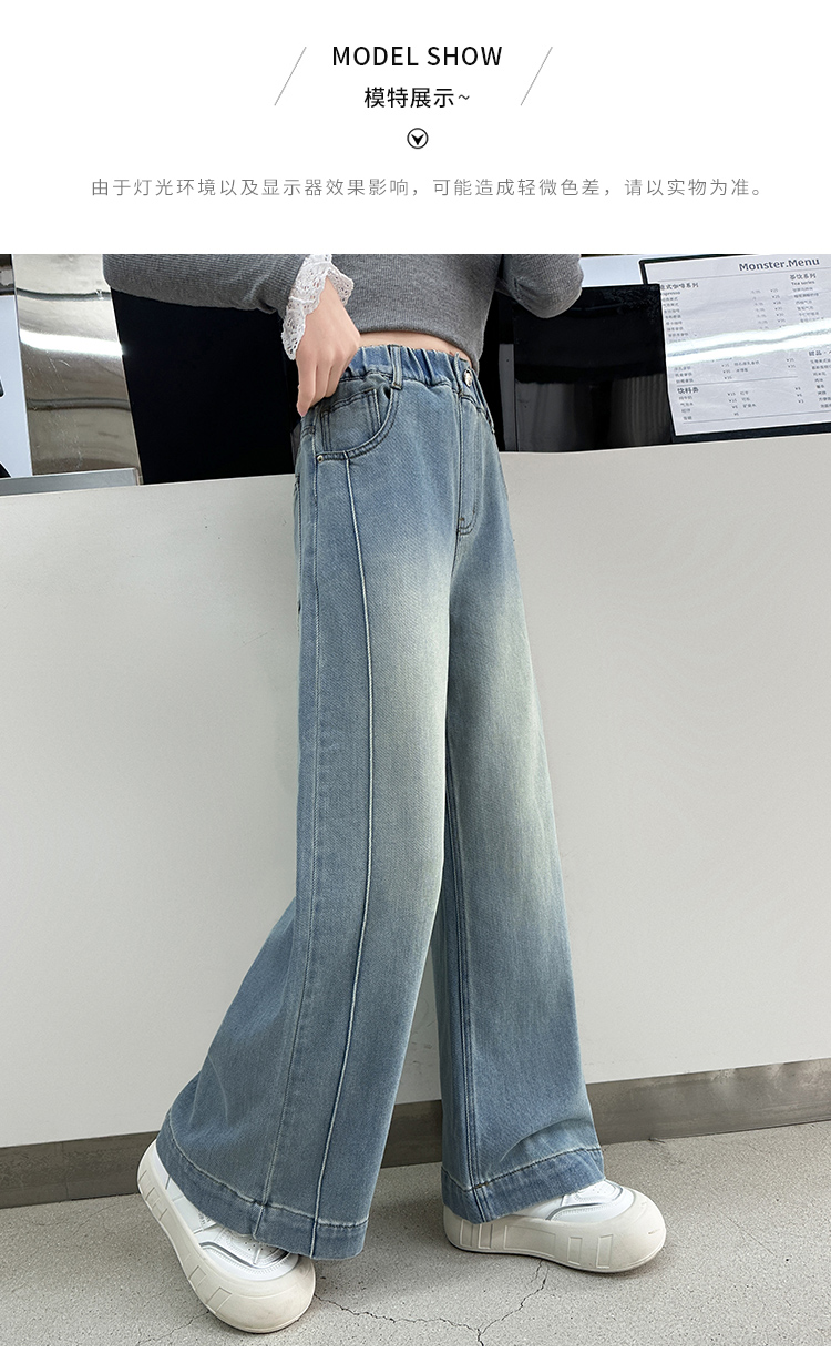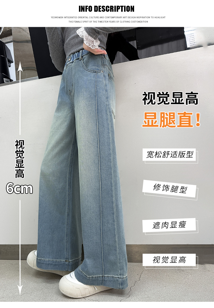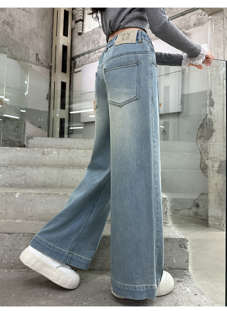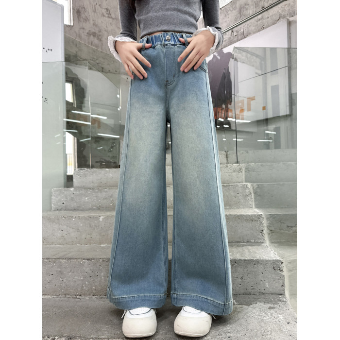 女童秋裝褲子2025新款洋氣中大兒童牛仔褲春秋中腰直筒寬松濶腿褲