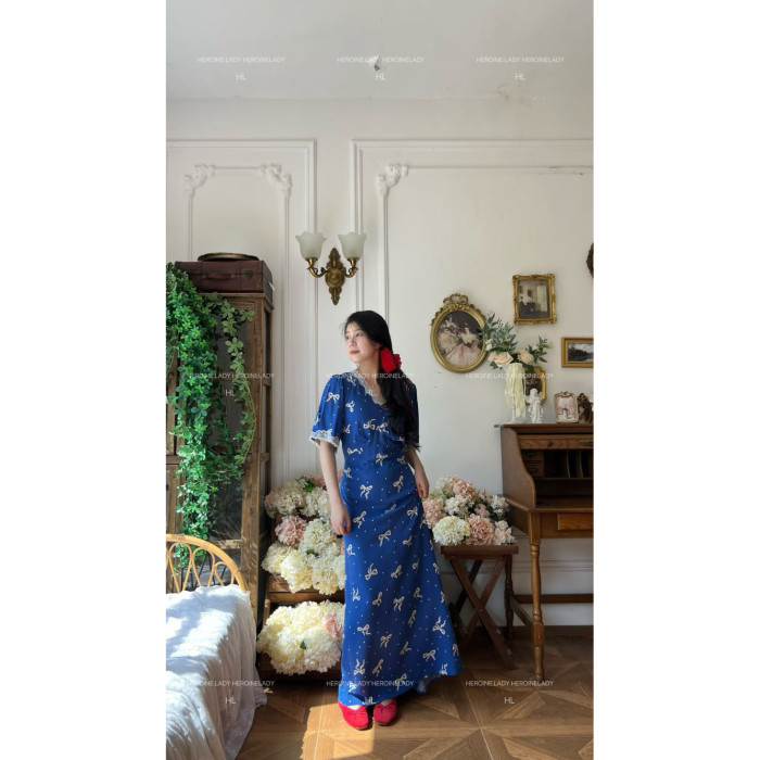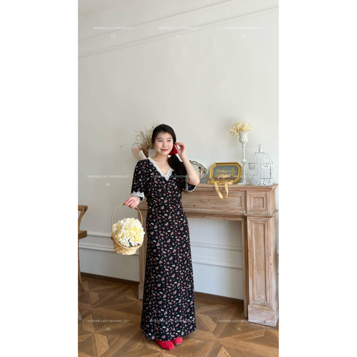 【夏日泰蘭德】HL棉綢夏季韓版氣質蕾絲顯瘦女神短袖長款連衣裙