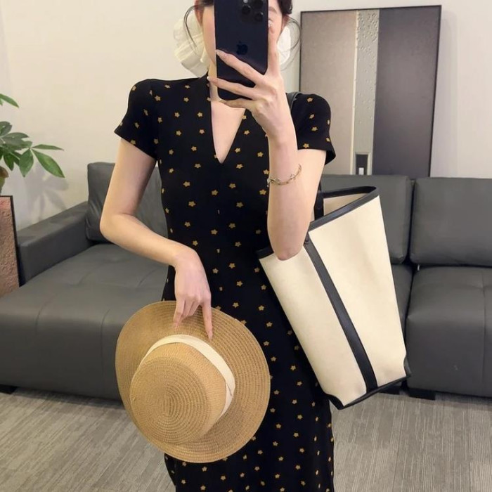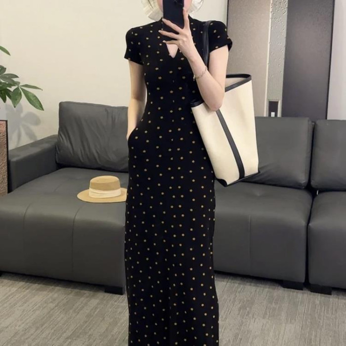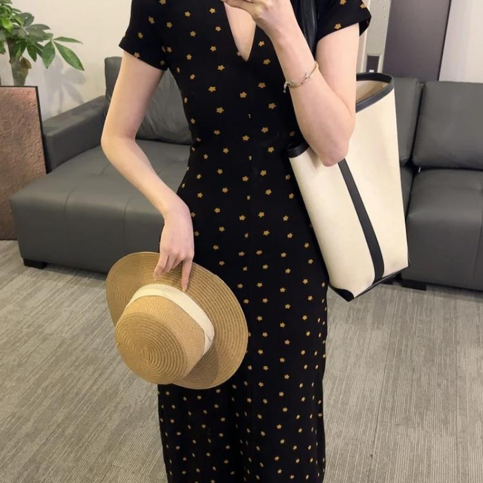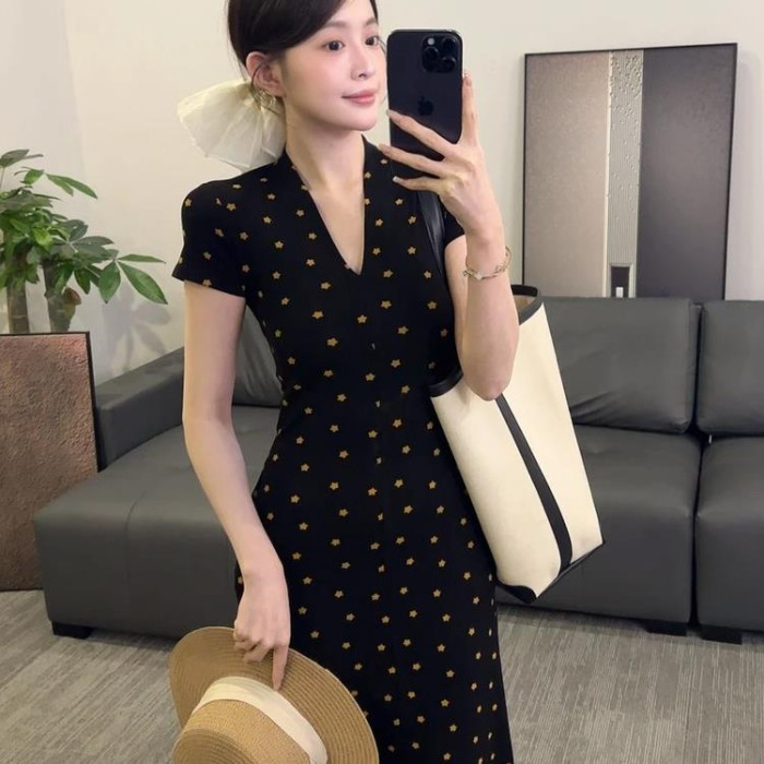 純欲風星星V領連衣裙2025新款修身收腰顯瘦設計感包臀裙時尚長裙