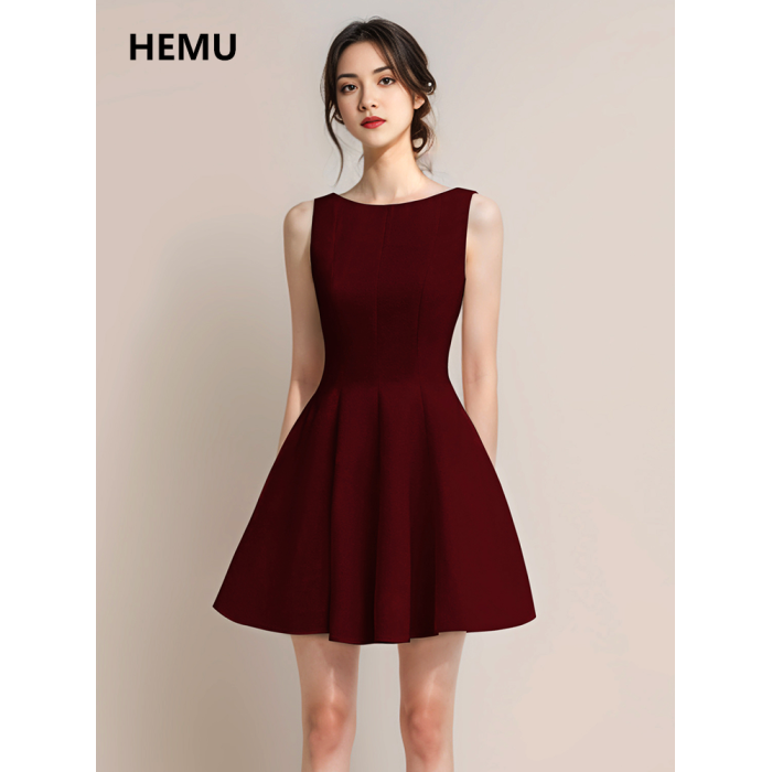 紅色連衣裙女夏法式背心裙小個子訂婚禮服高級感韓系chic別致穿搭