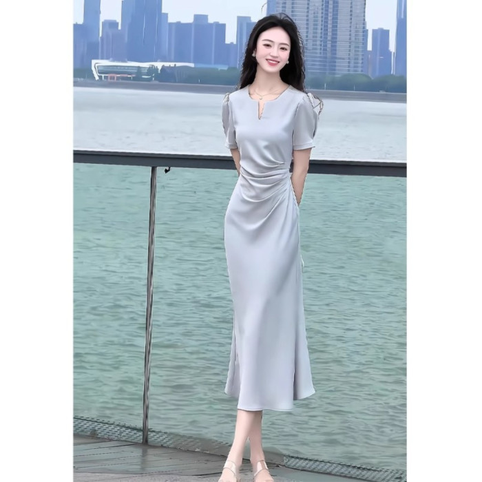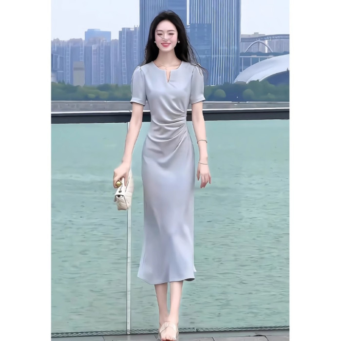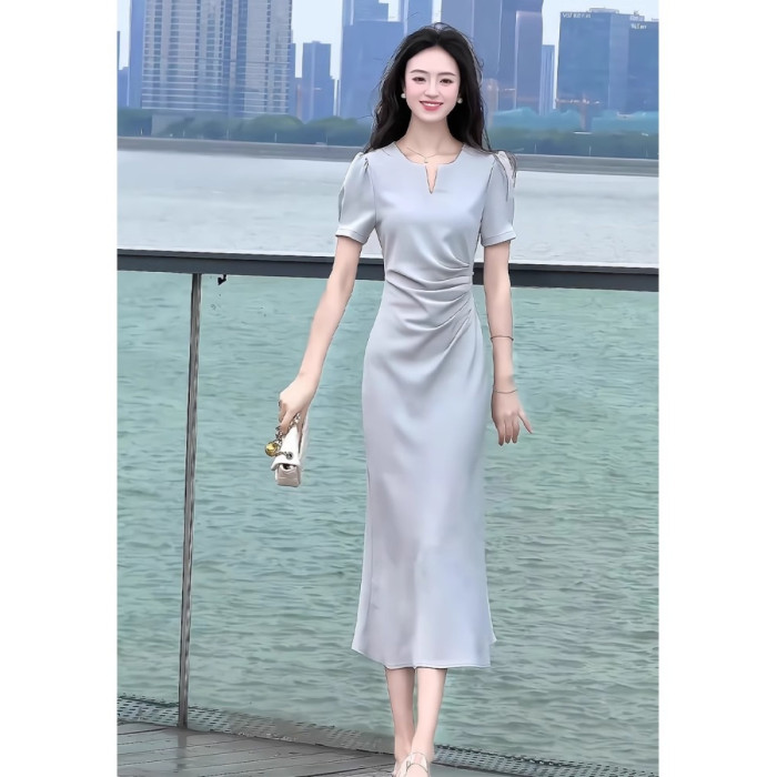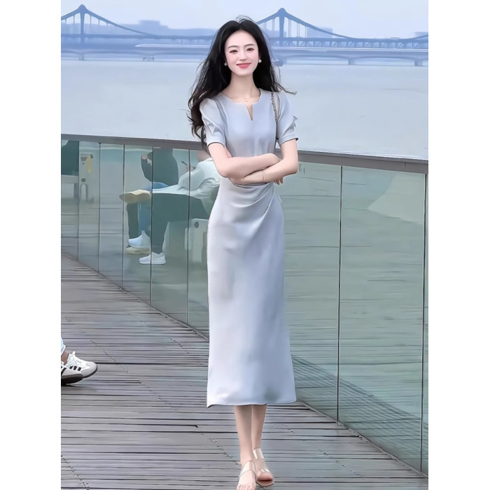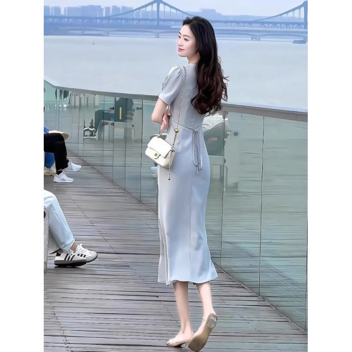歐洲站2025新款法式高級感長裙氣質收腰顯瘦高冷禦姐風連衣裙女夏