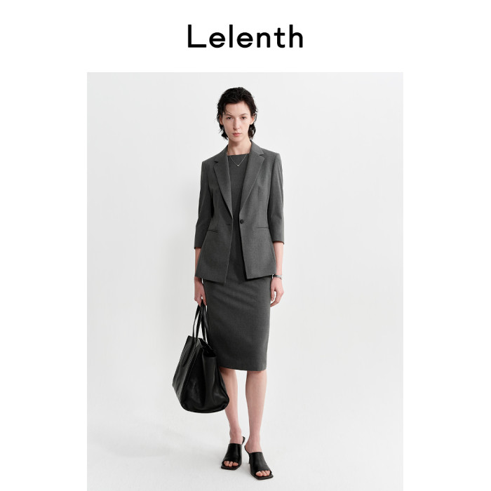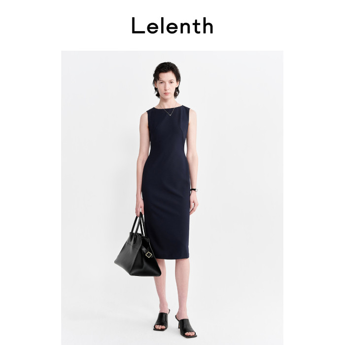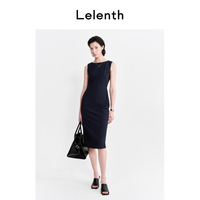 萊倫斯布藏青色修身收腰西裝內搭連衣裙女夏氣質優雅極簡通勤裙子
