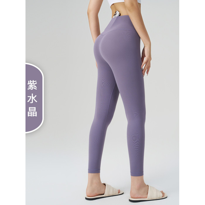 AD1237花色折釦瑜伽褲裸感高腰戶外跑步運動褲緊身無痕健身褲女